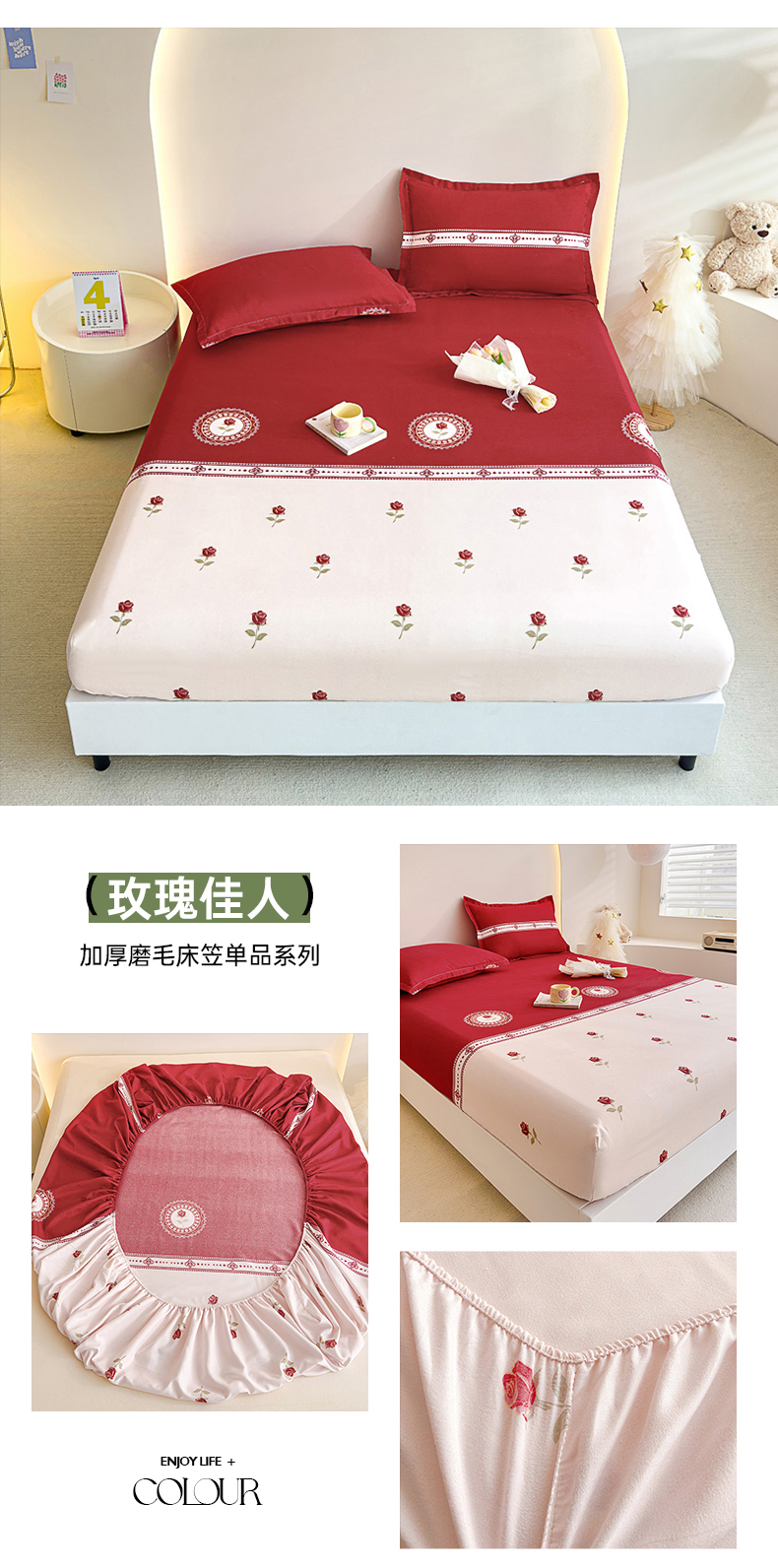 商品名称:靓生活 2024新款加厚磨毛生态棉单品床笠 玫瑰佳人