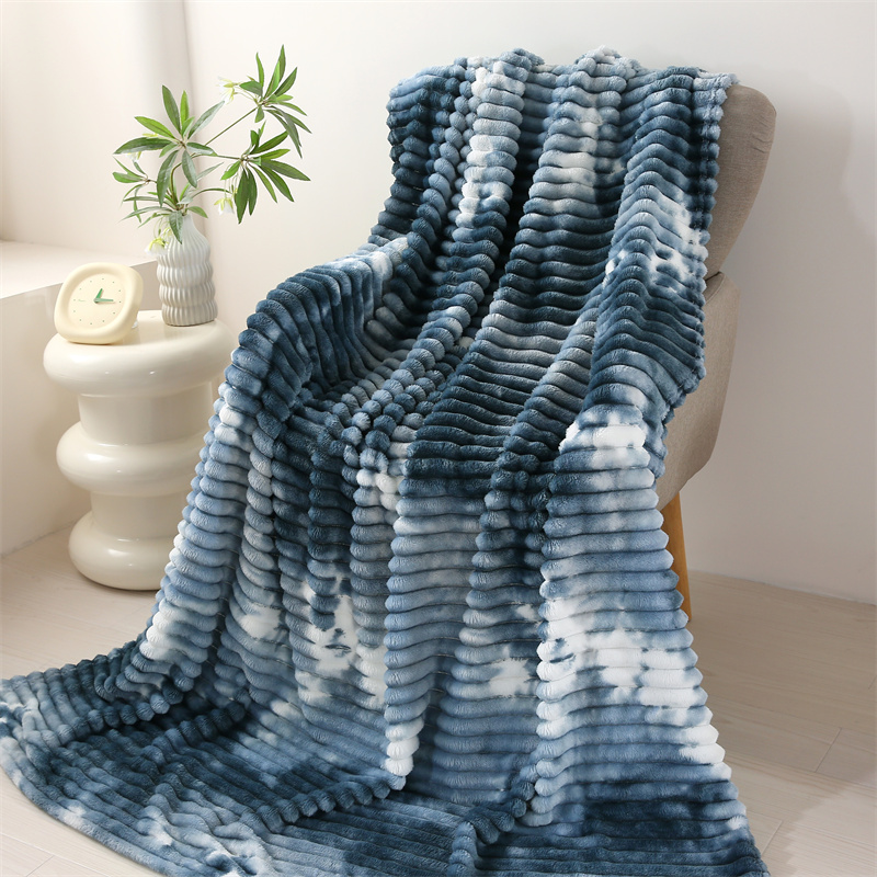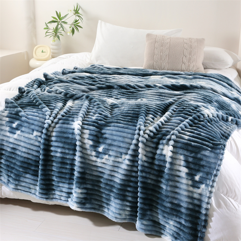 商品名称:巴木赫 2024新款260克扎染印花抽条毛毯毯子 海蓝色