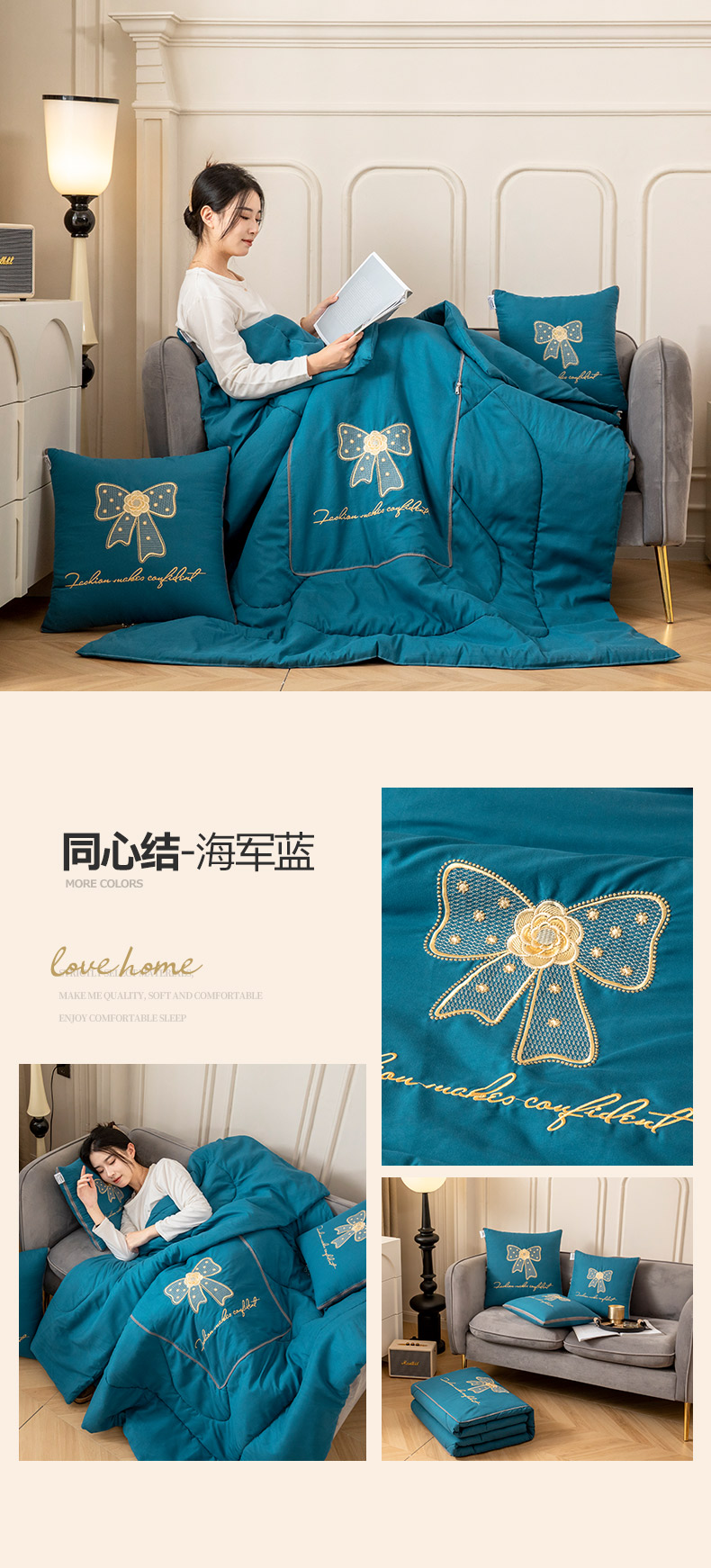 商品名称:雷人家纺 2023新款同心结系列刺绣多功能抱枕被 同心结-海军蓝