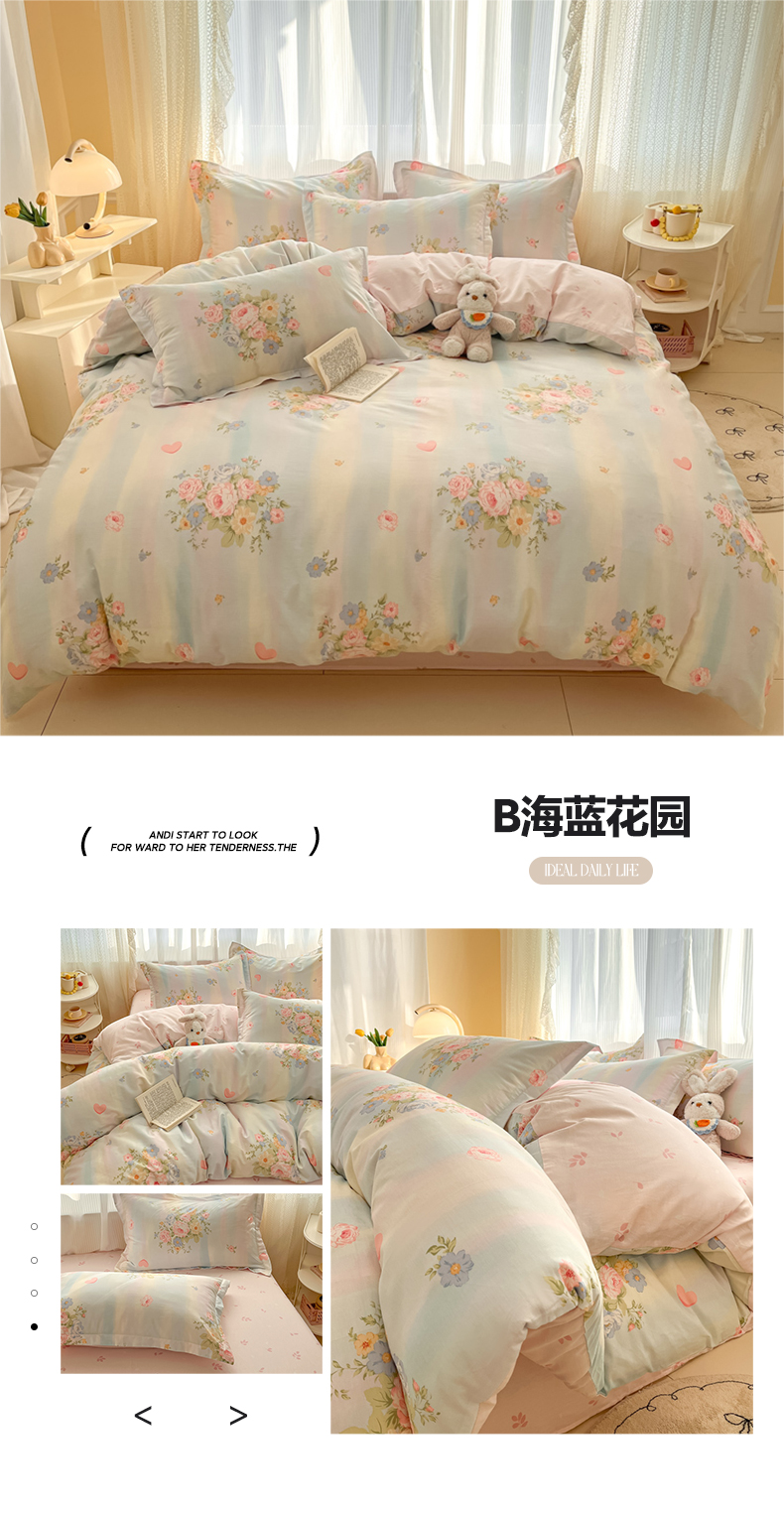 当前位置: 91家纺网 > 商品网购 > 床品套件 > 四件套 > 全棉普通四件套 > 涵宸家纺 2025新款全棉印花四件套 B海蓝花园