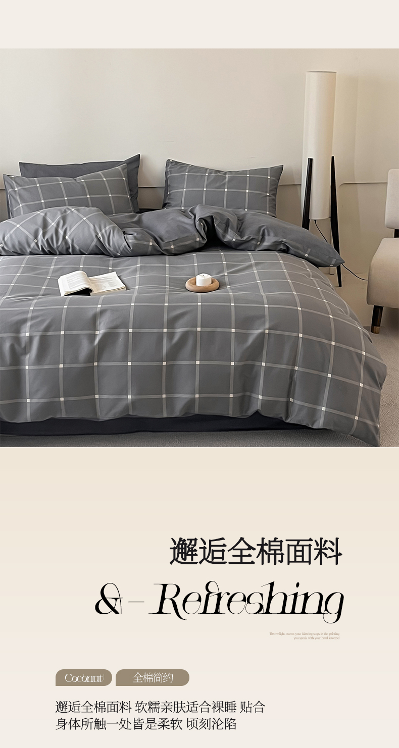 当前位置: 91家纺网 > 商品网购 > 床品套件 > 四件套 > 全棉普通四件套 > 涵宸家纺 2025新款全棉印花良品系列四件套 麦田-灰