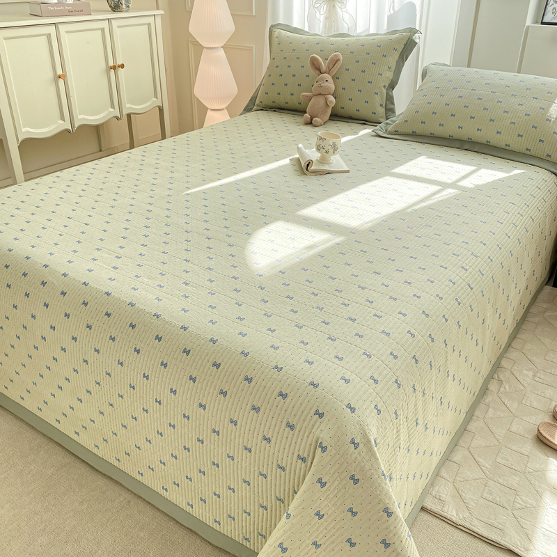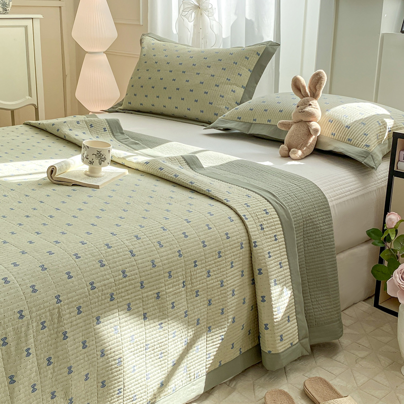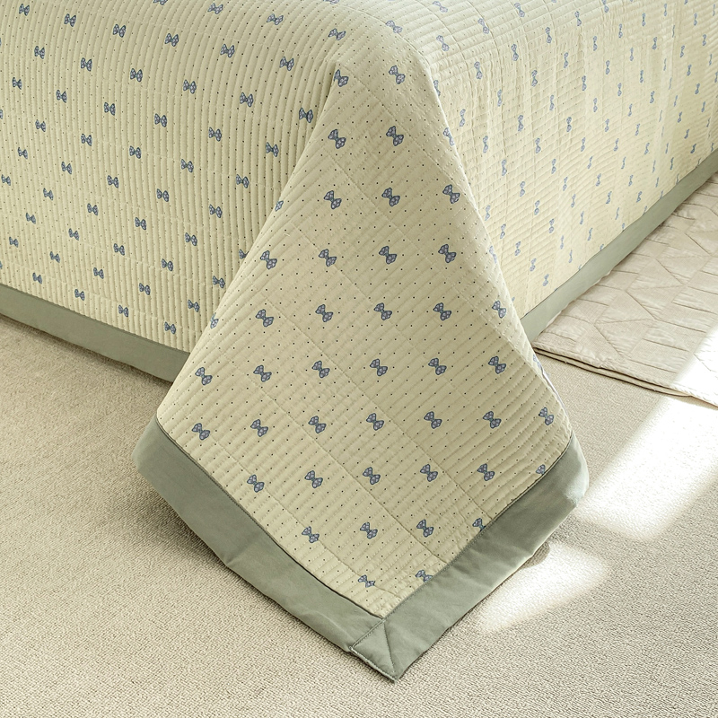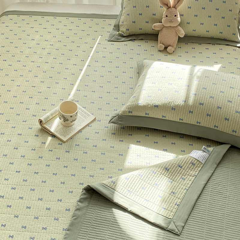 • 91家纺网 家纺一手货源 找家纺 尊妙被业 2025新款针织棉直边床盖三件套 搁浅