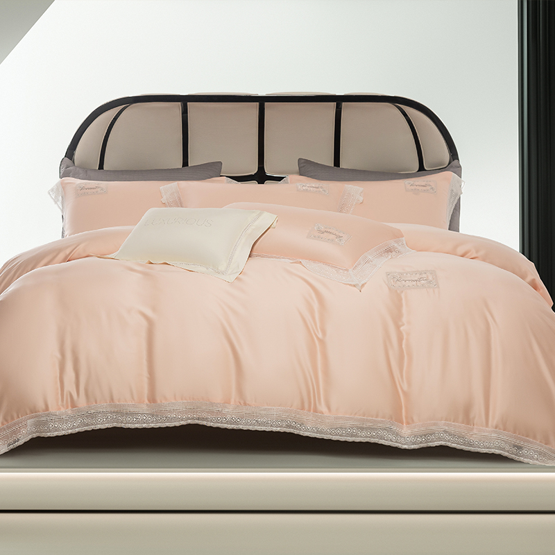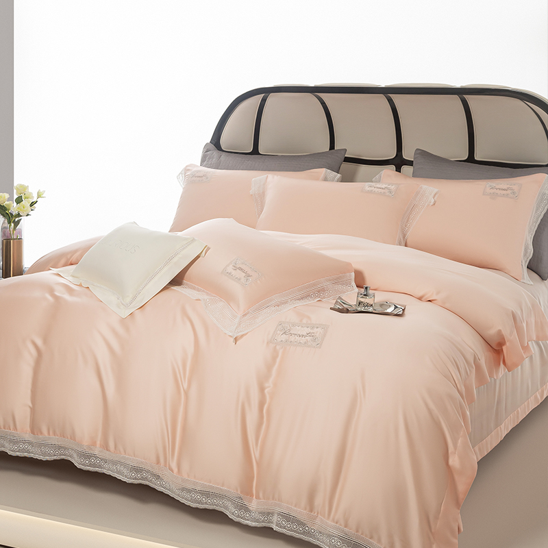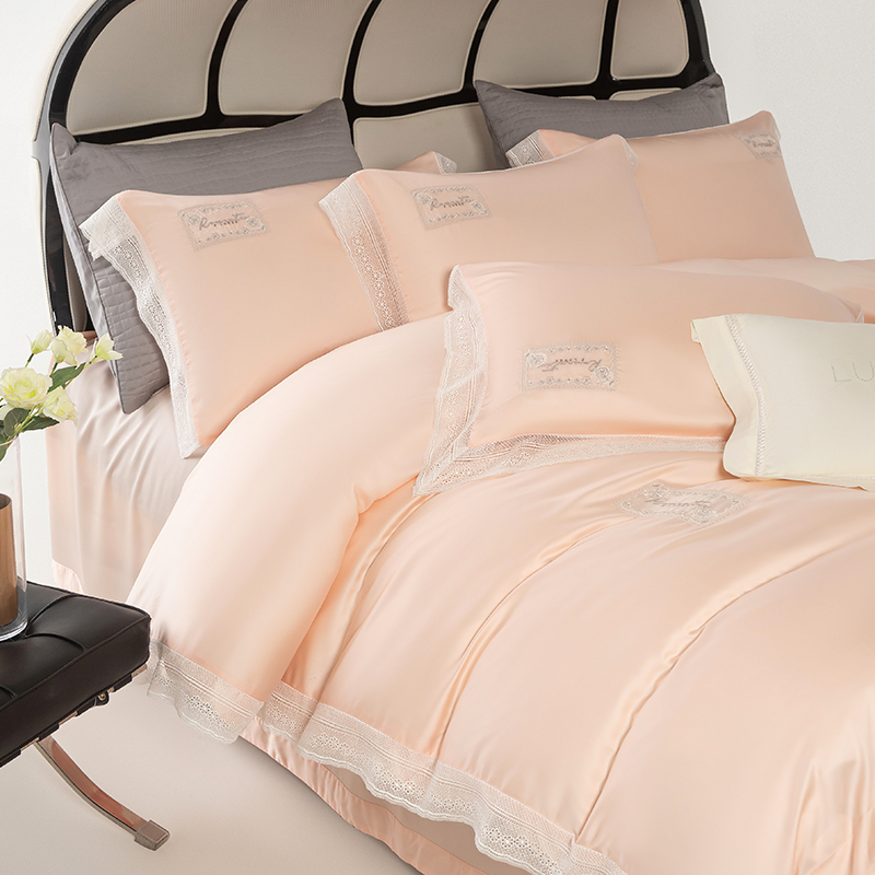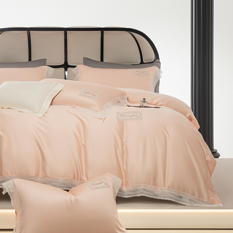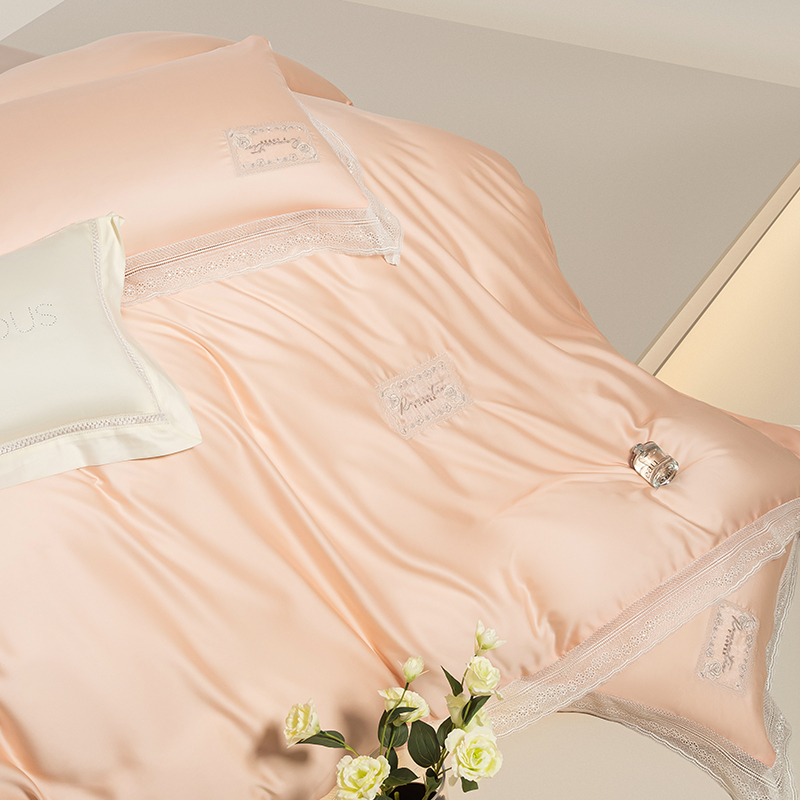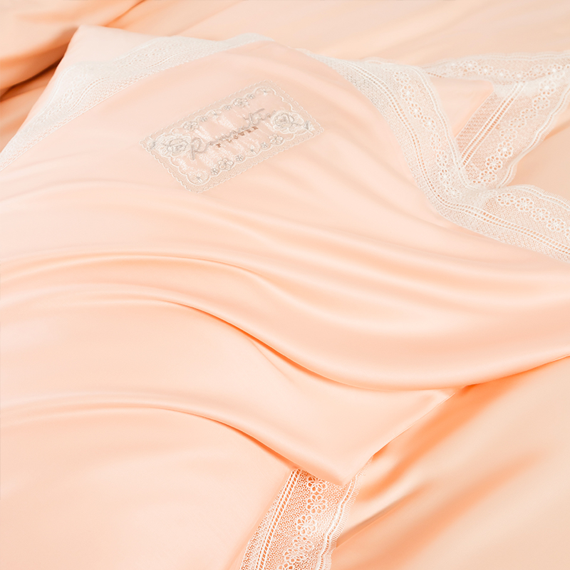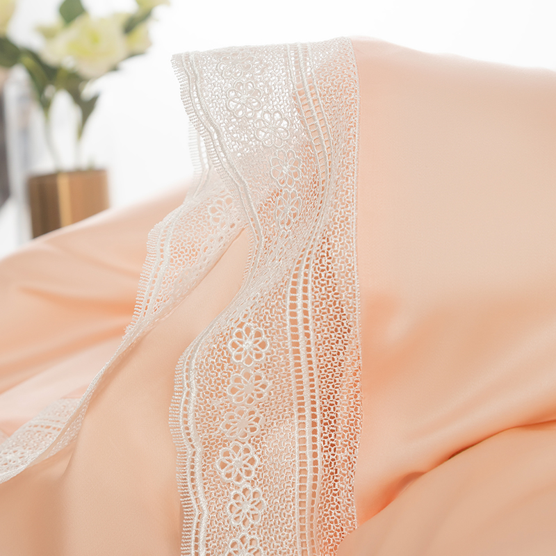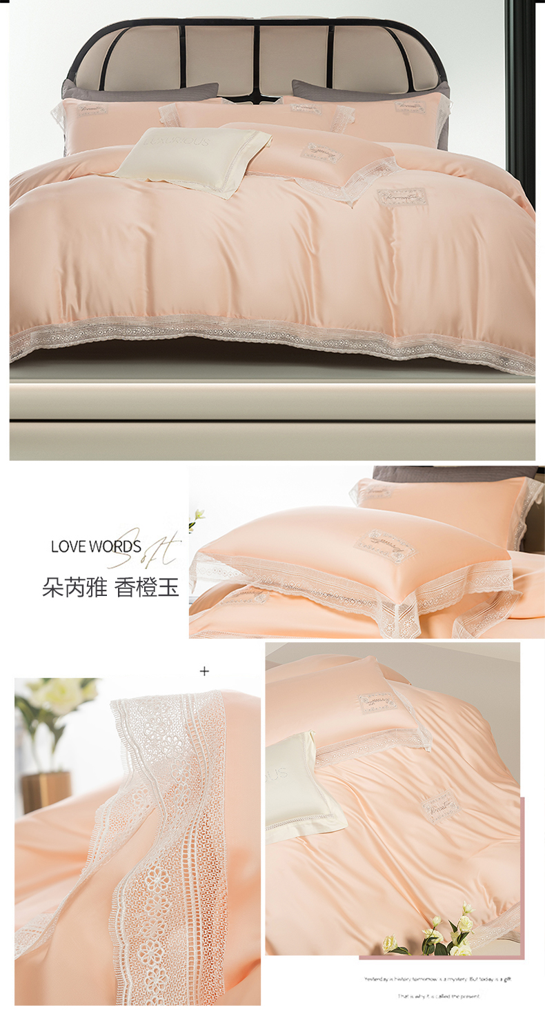 诗黛尔 2025新款春夏100%莱赛尔蕾丝绣花四件套-朵芮雅系列 朵芮雅-香橙玉