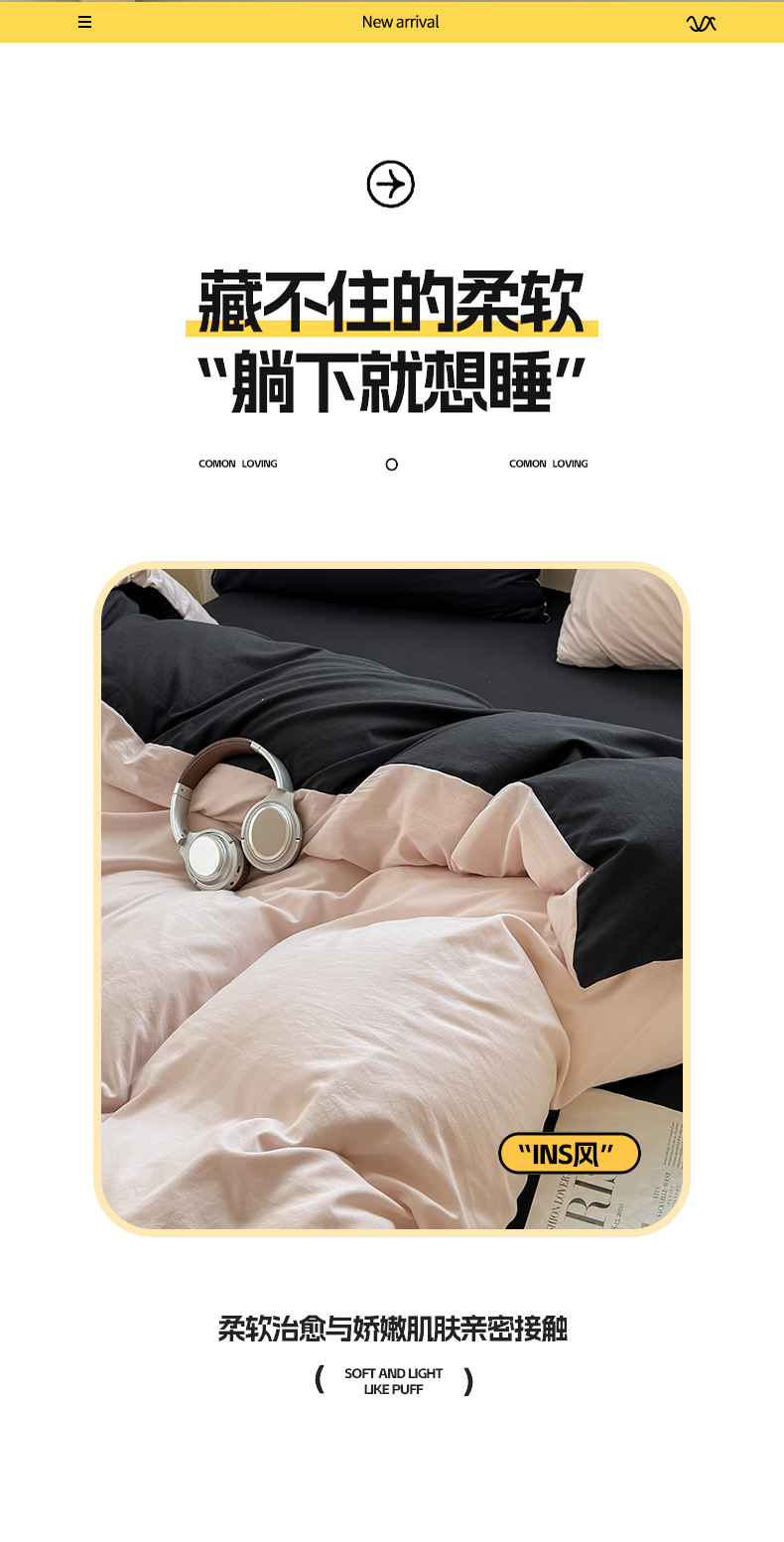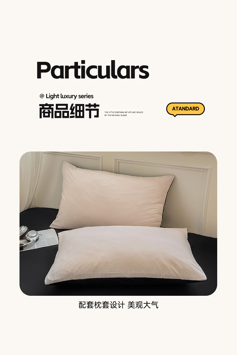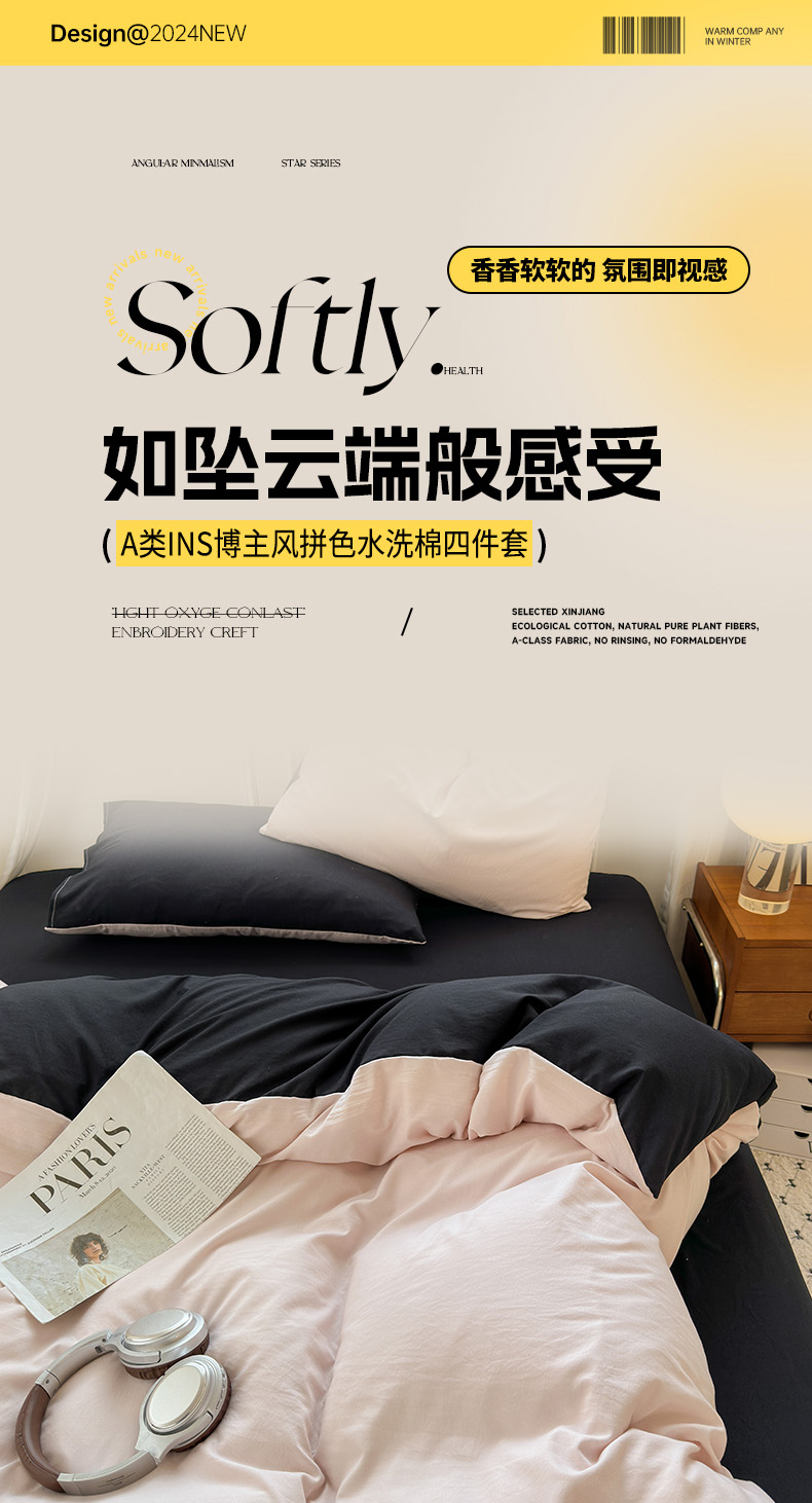 商品名称:冕悠家纺 2025新款A类105克超柔褶皱水洗棉拼色四件套-单被套 藕粉+高级黑