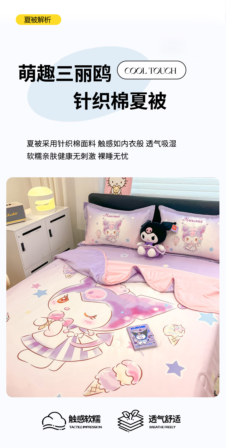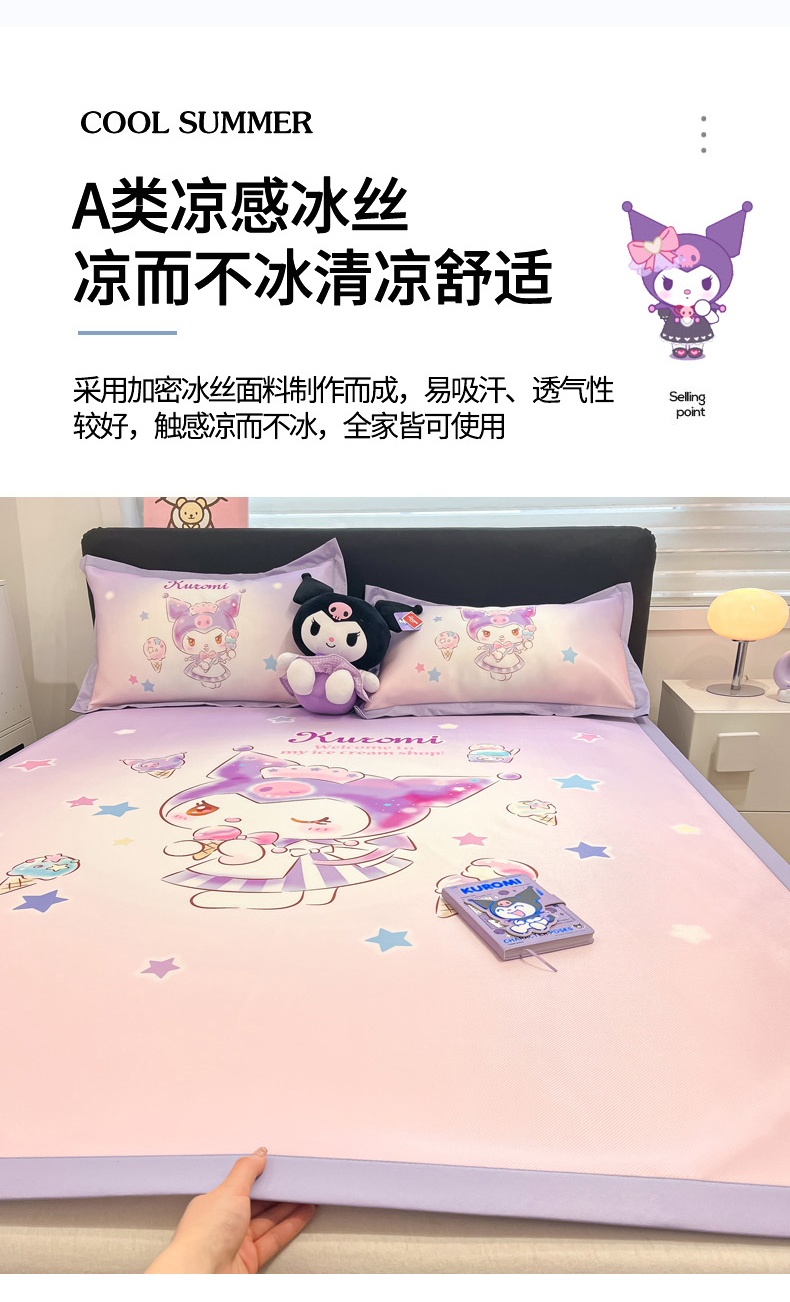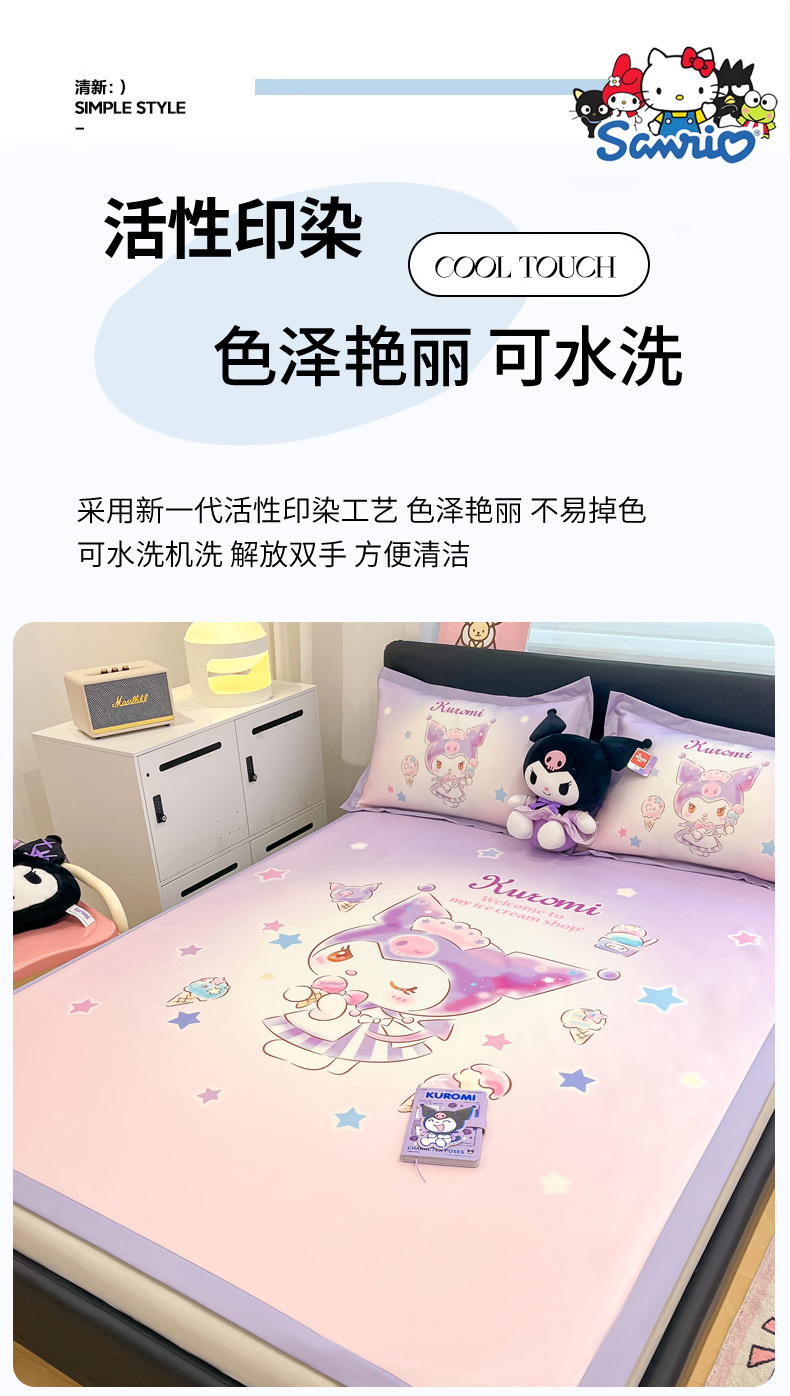 当前位置: 91家纺网 > 商品网购 > 床品套件 > 四件套 > 其它四件套 > 2025新款正版授权A类大版数码印花三丽鸥可机洗1200D冰丝凉席席子凉席可组合针织棉夏被四件套-平铺款 平铺款-炫彩库洛米