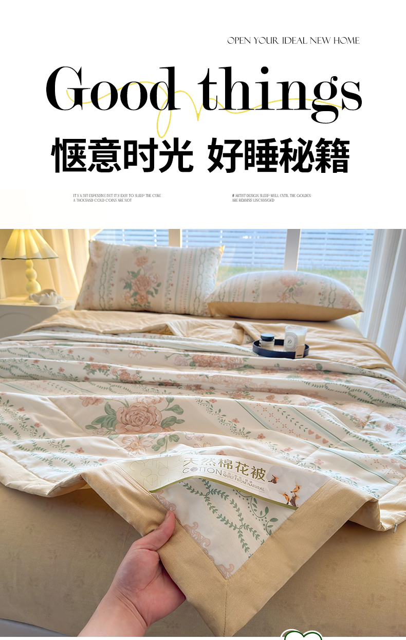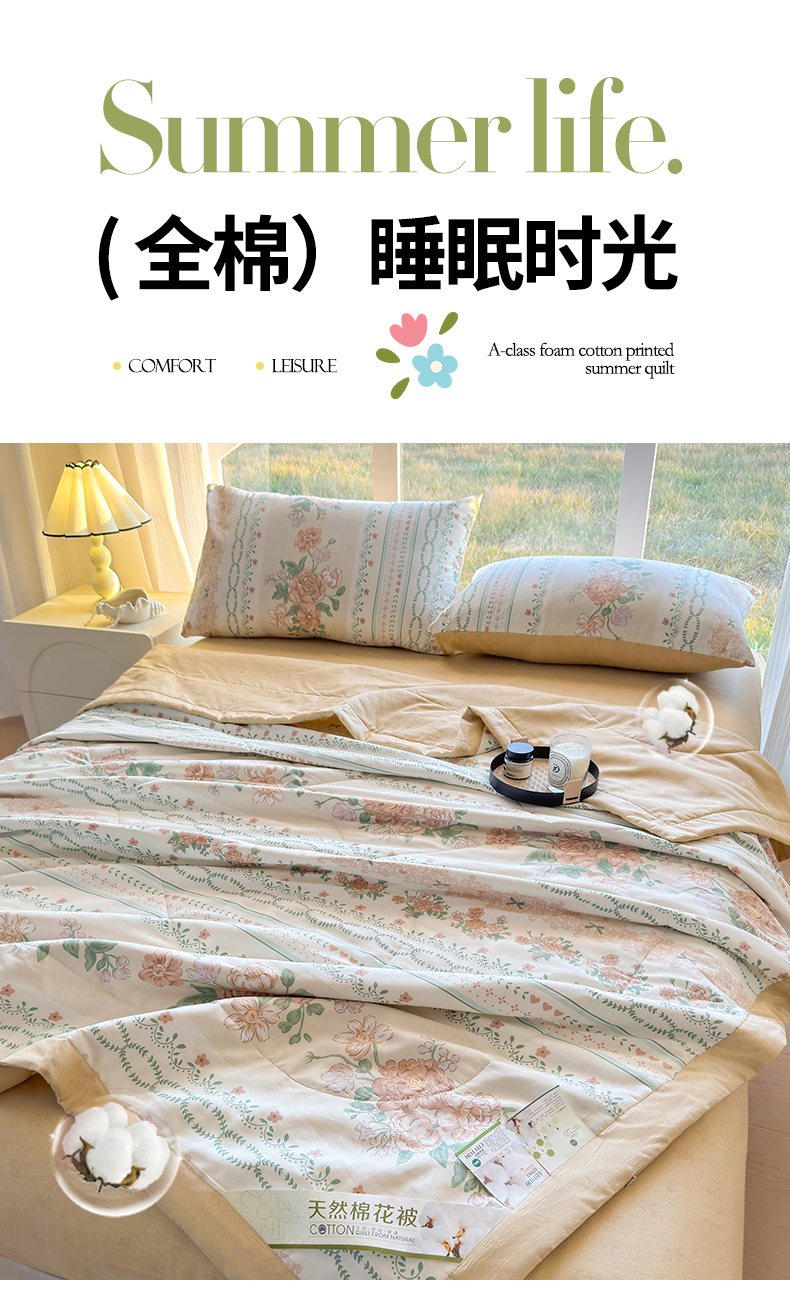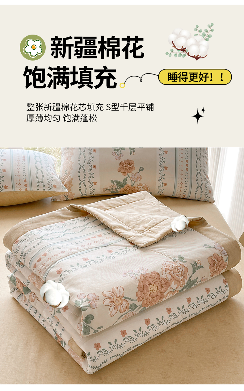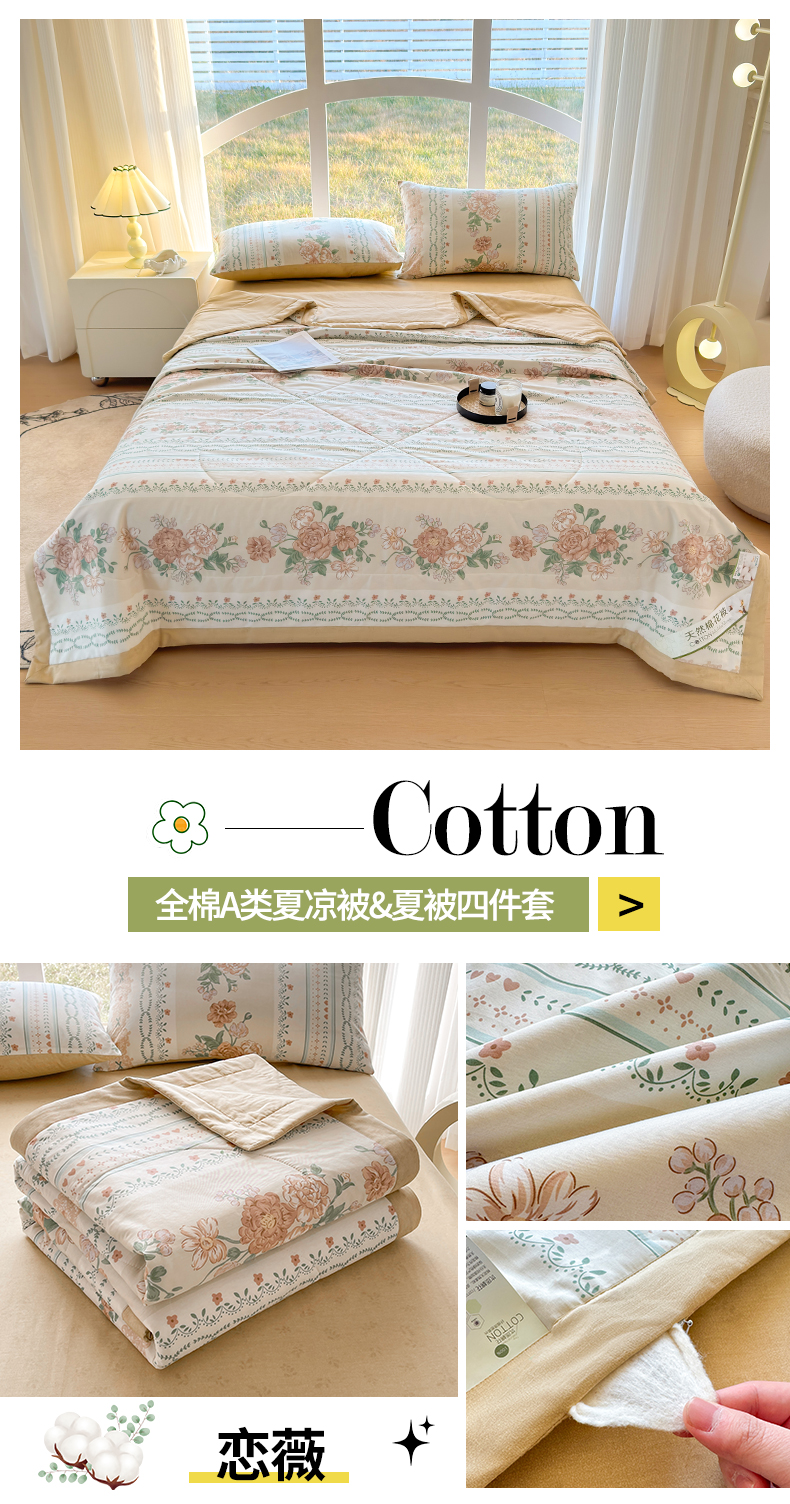 商品名称:蓝雀翎 2025新款全棉印花新疆棉花夏被 恋薇