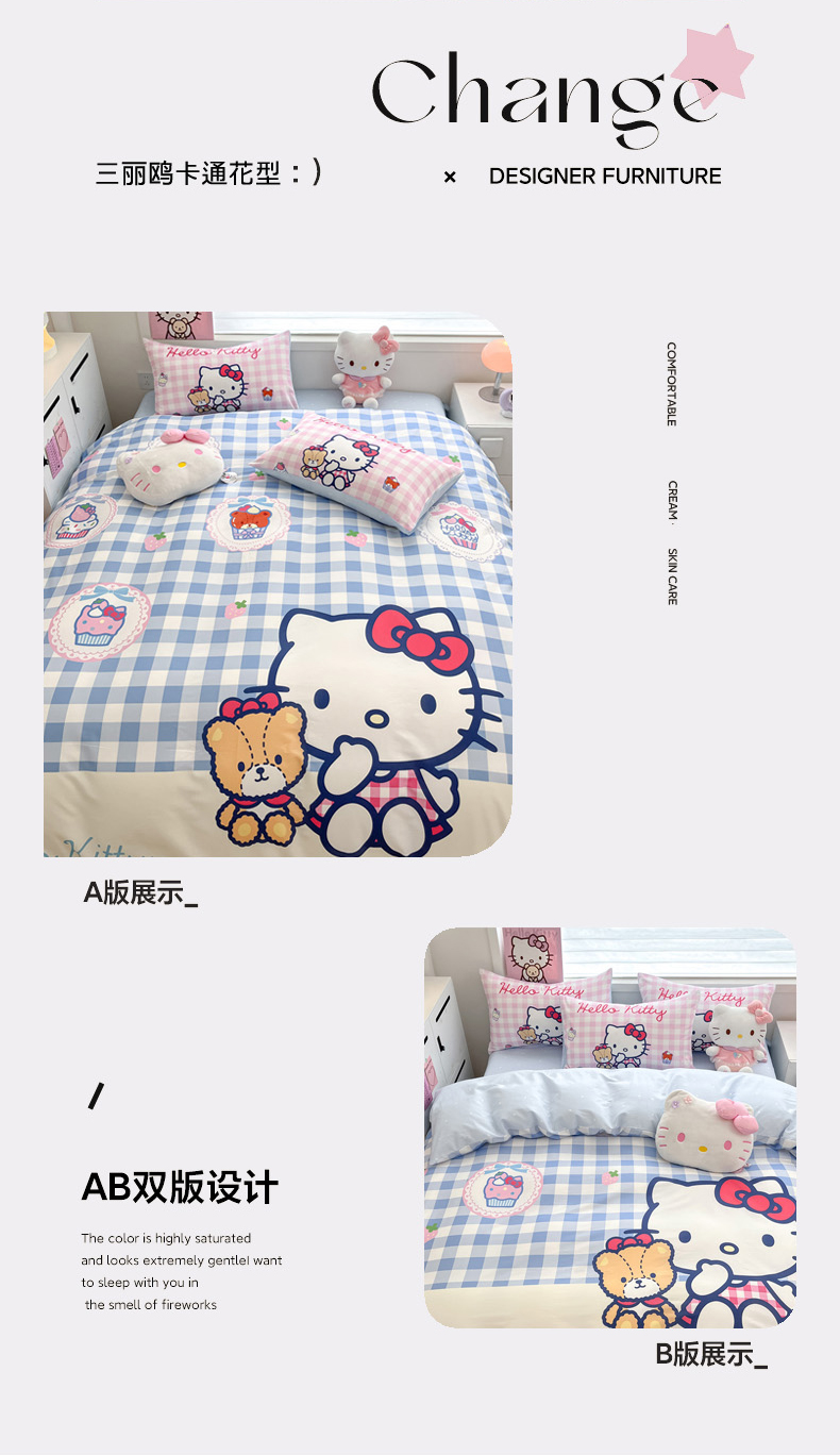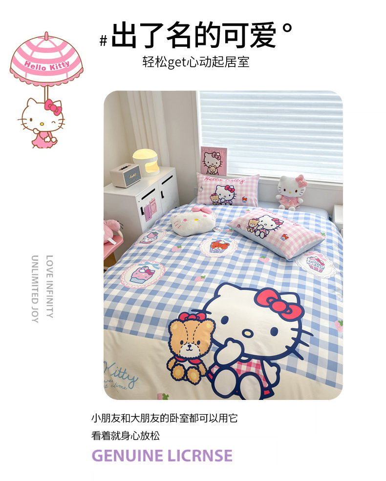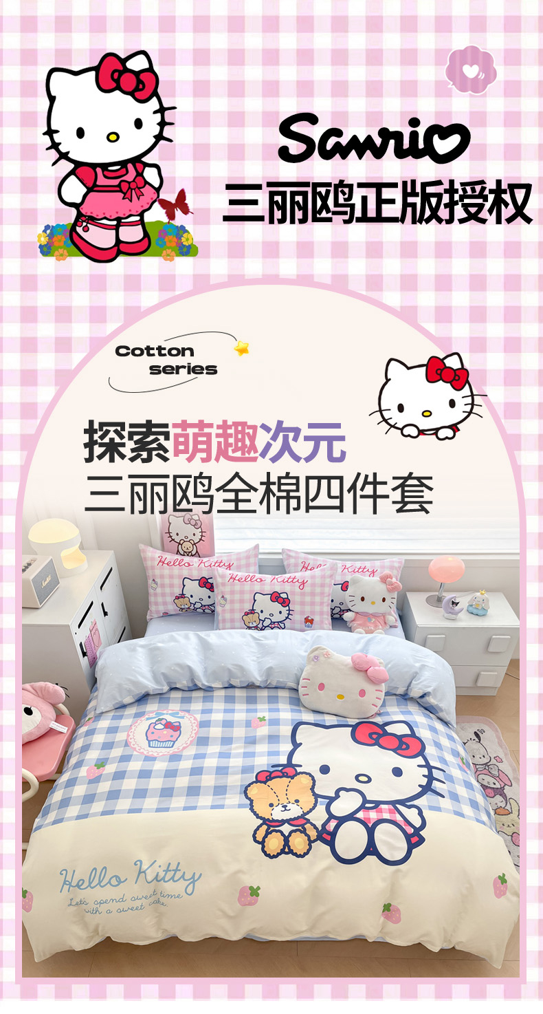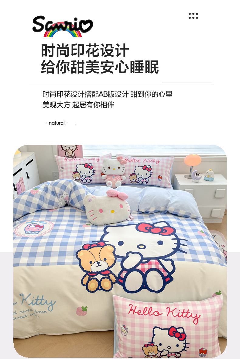 当前位置: 91家纺网 > 商品网购 > 床品套件 > 四件套 > 全棉普通四件套 > 暮思家居 2025新款正版授权三丽鸥大版全棉纯棉数码印花四件套系列-第四批 大版-格子KT