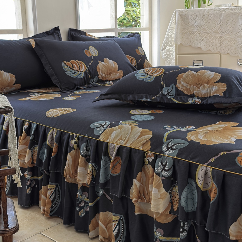 雨田家纺 2025新款外贸跨境直播亲肤印花床裙三件套 柔情似水