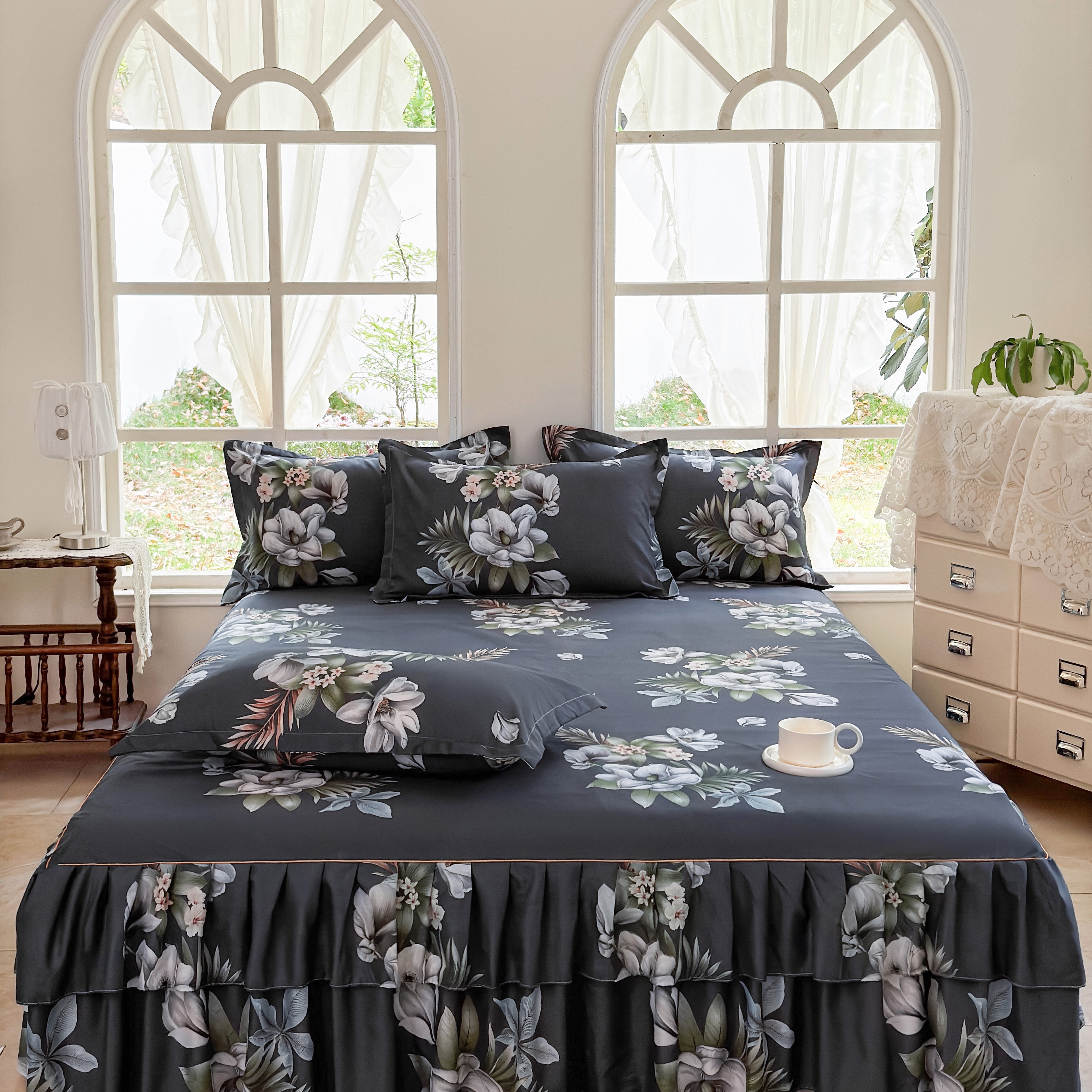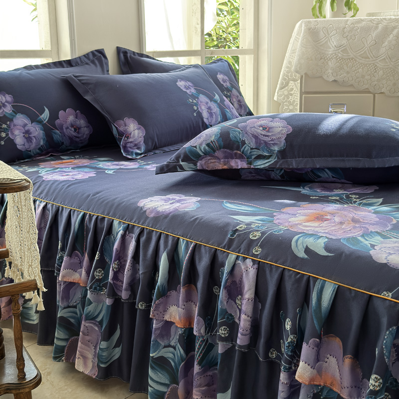 商品名称:雨田家纺 2025新款外贸跨境直播亲肤印花床裙三件套 柔情似水