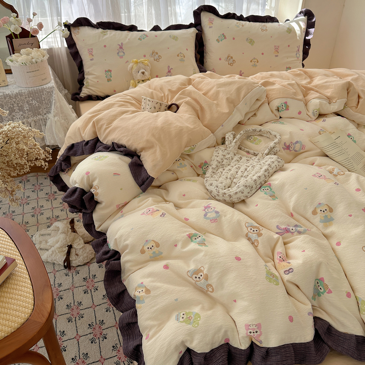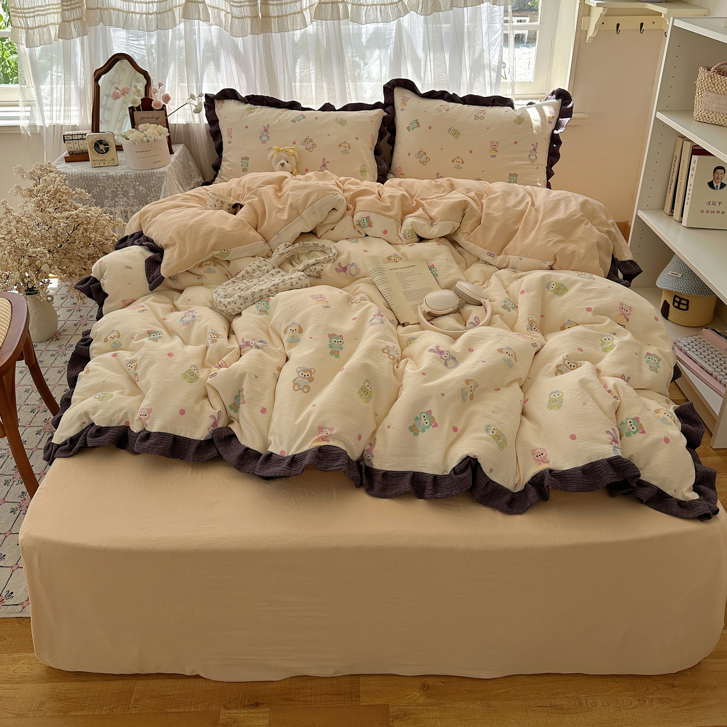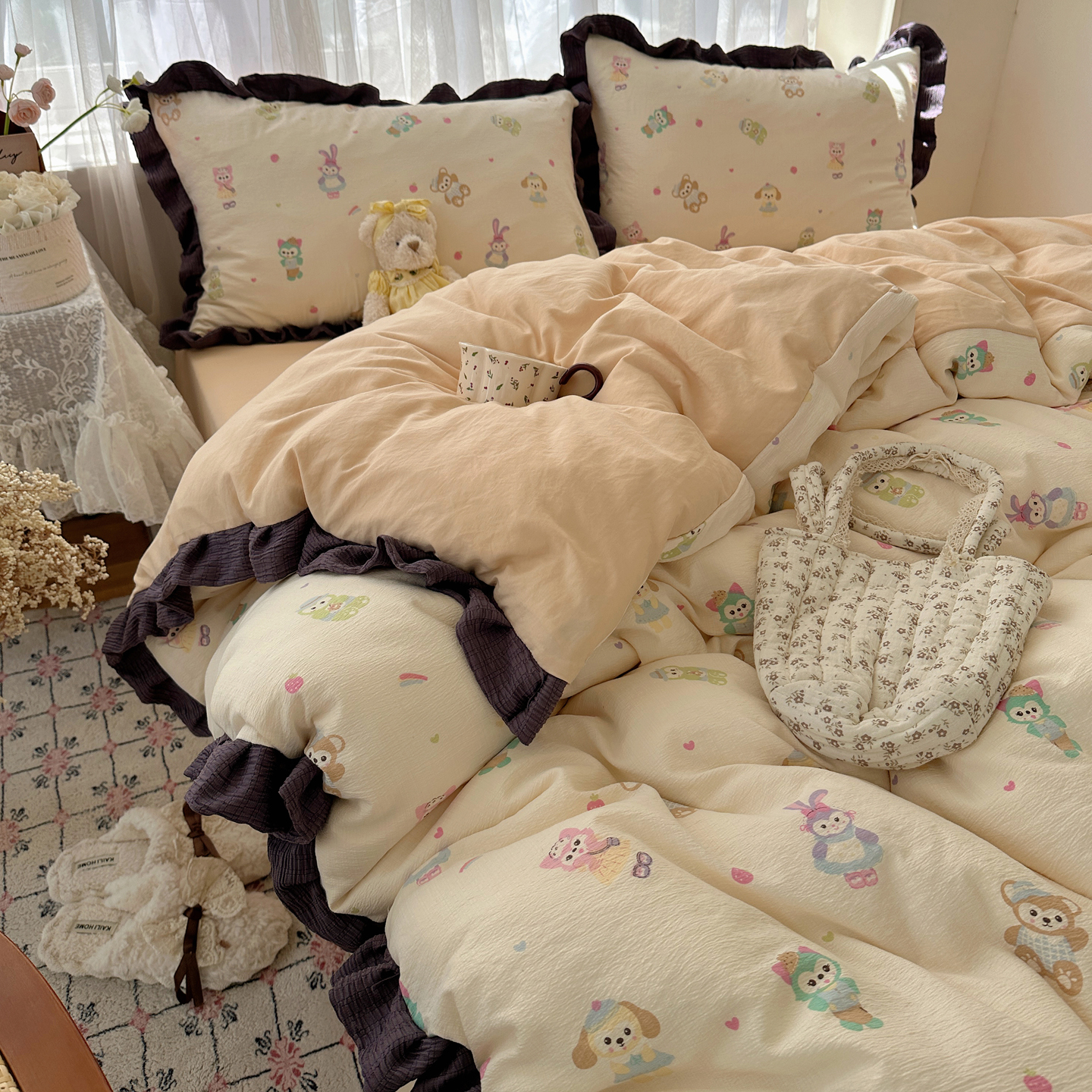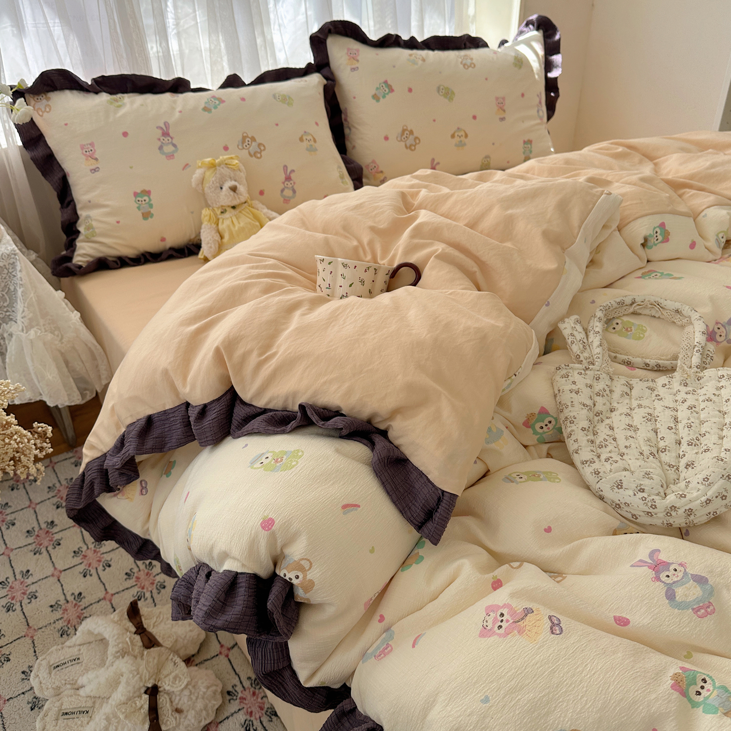 当前位置: 91家纺网 > 商品网购 > 床品套件 > 四件套 > 双层纱四件套 > 顾里家纺 2025新款韩系花边皱皱纱四件套 动物园