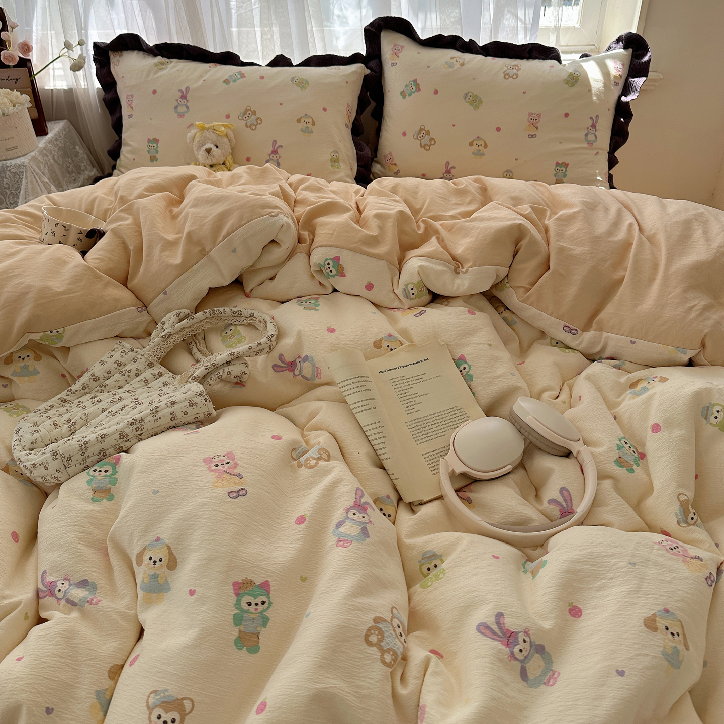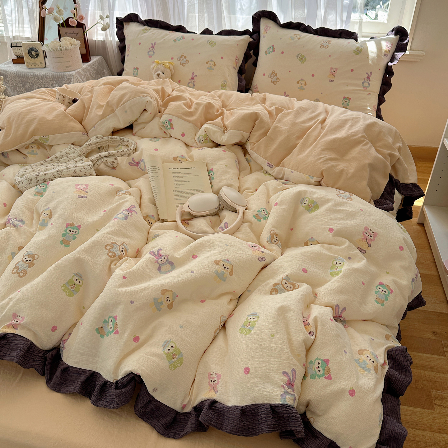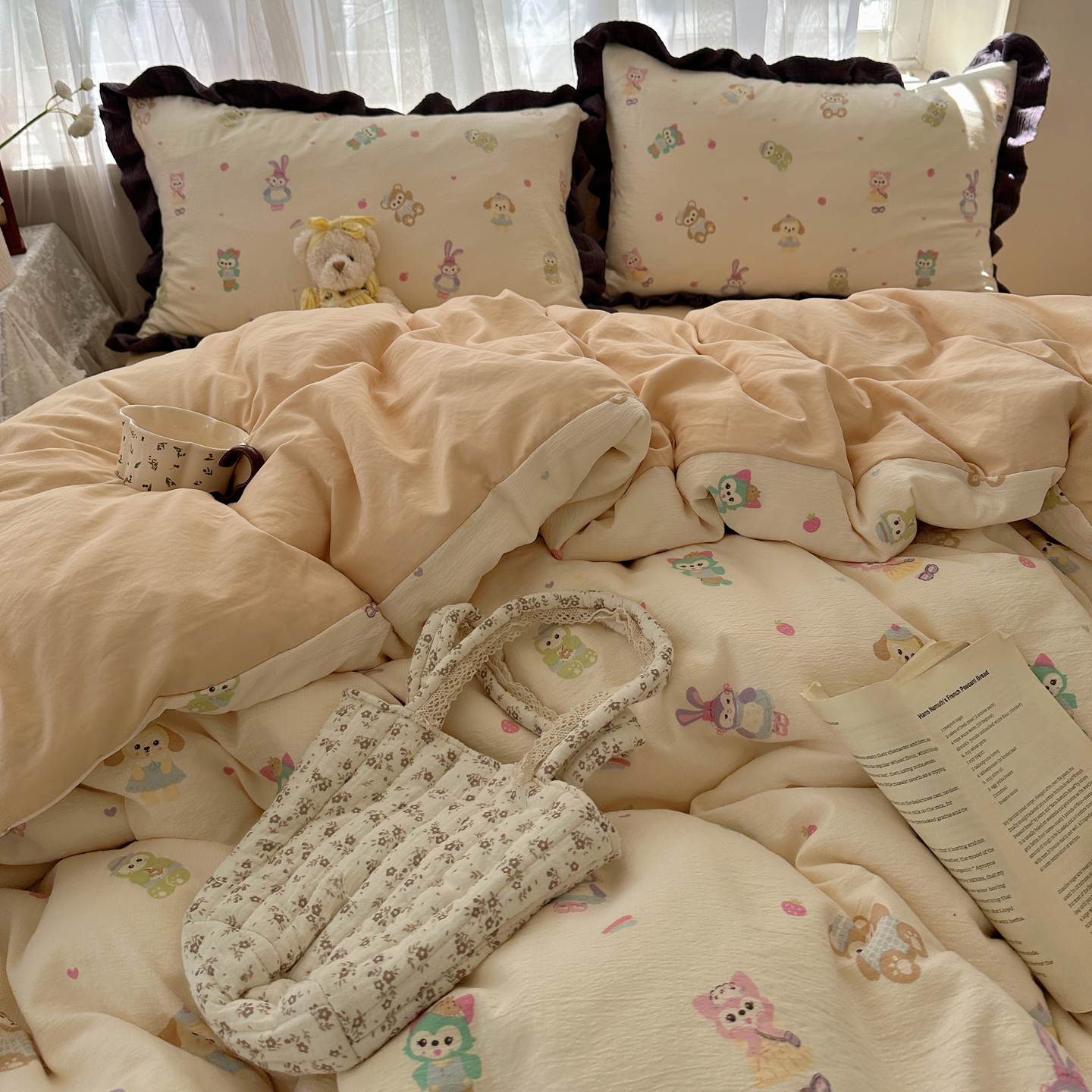 当前位置: 91家纺网 > 商品网购 > 床品套件 > 四件套 > 双层纱四件套 > 顾里家纺 2025新款韩系花边皱皱纱四件套 动物园