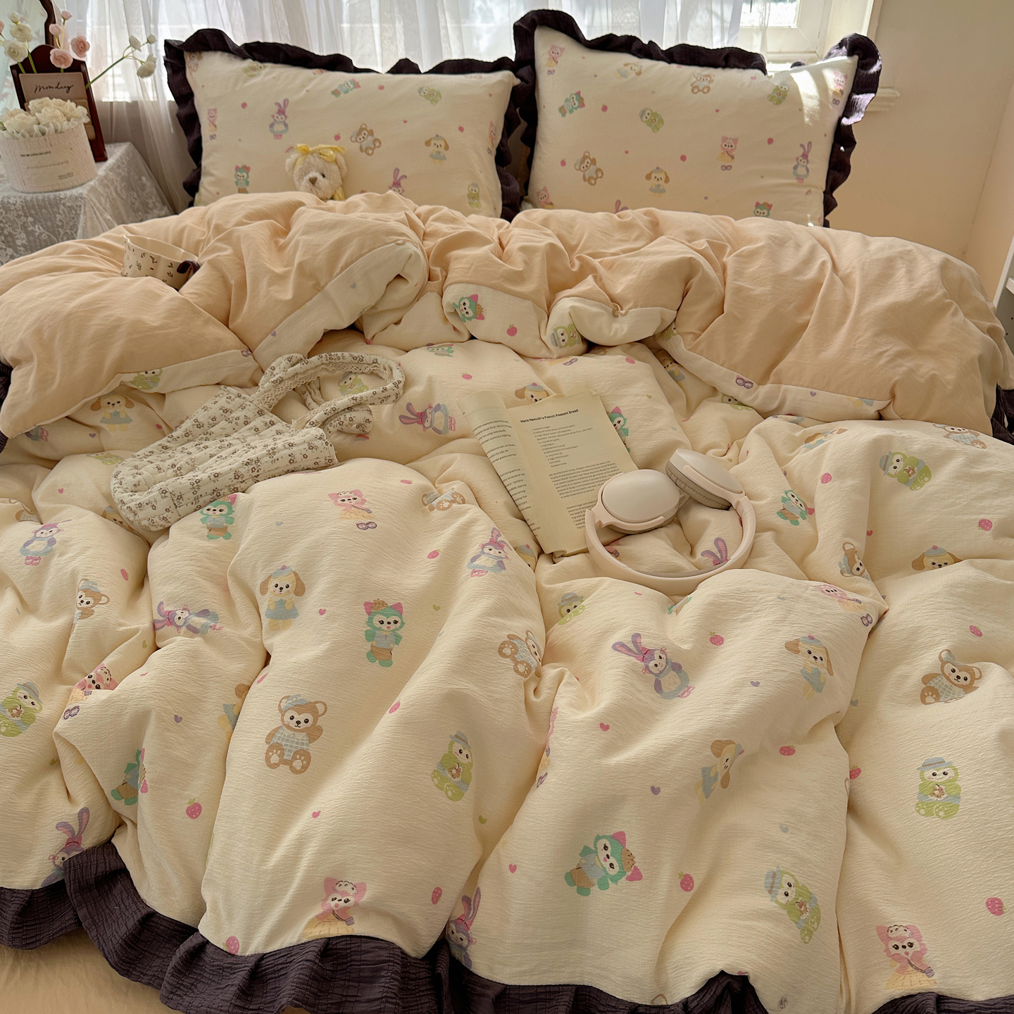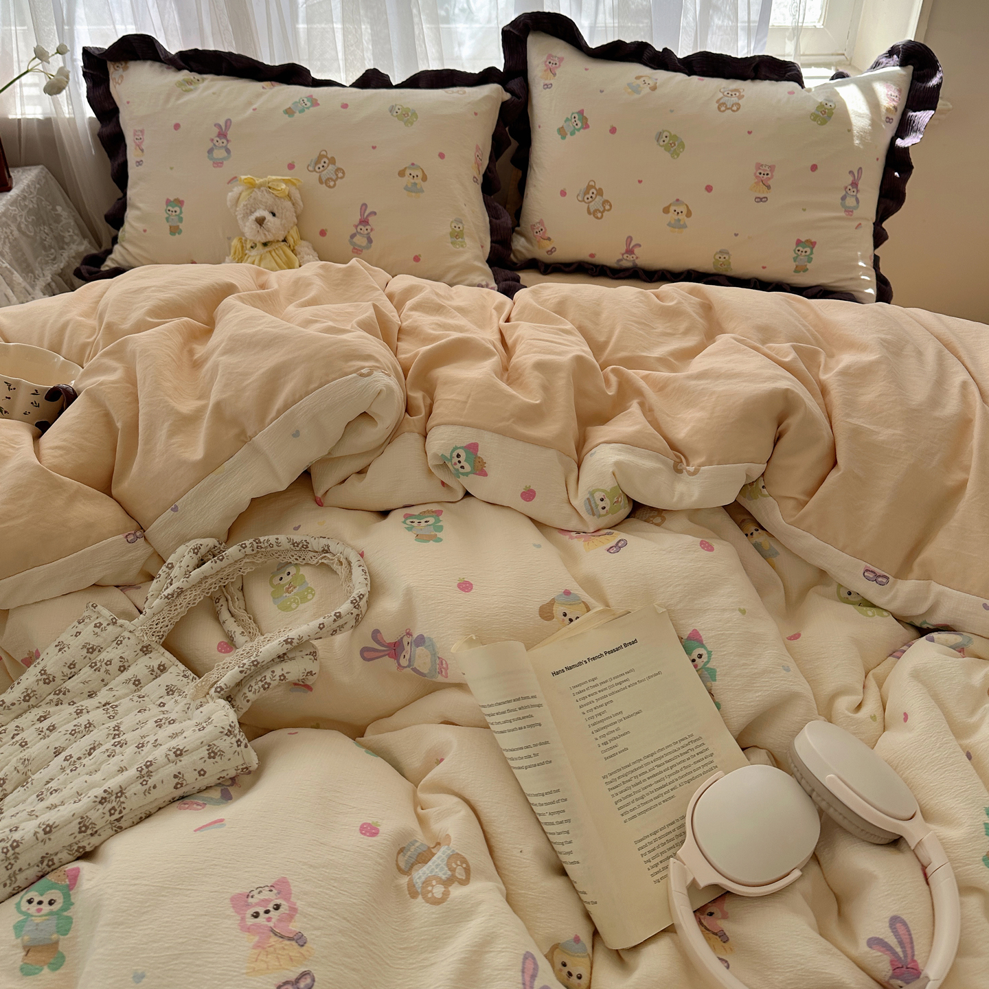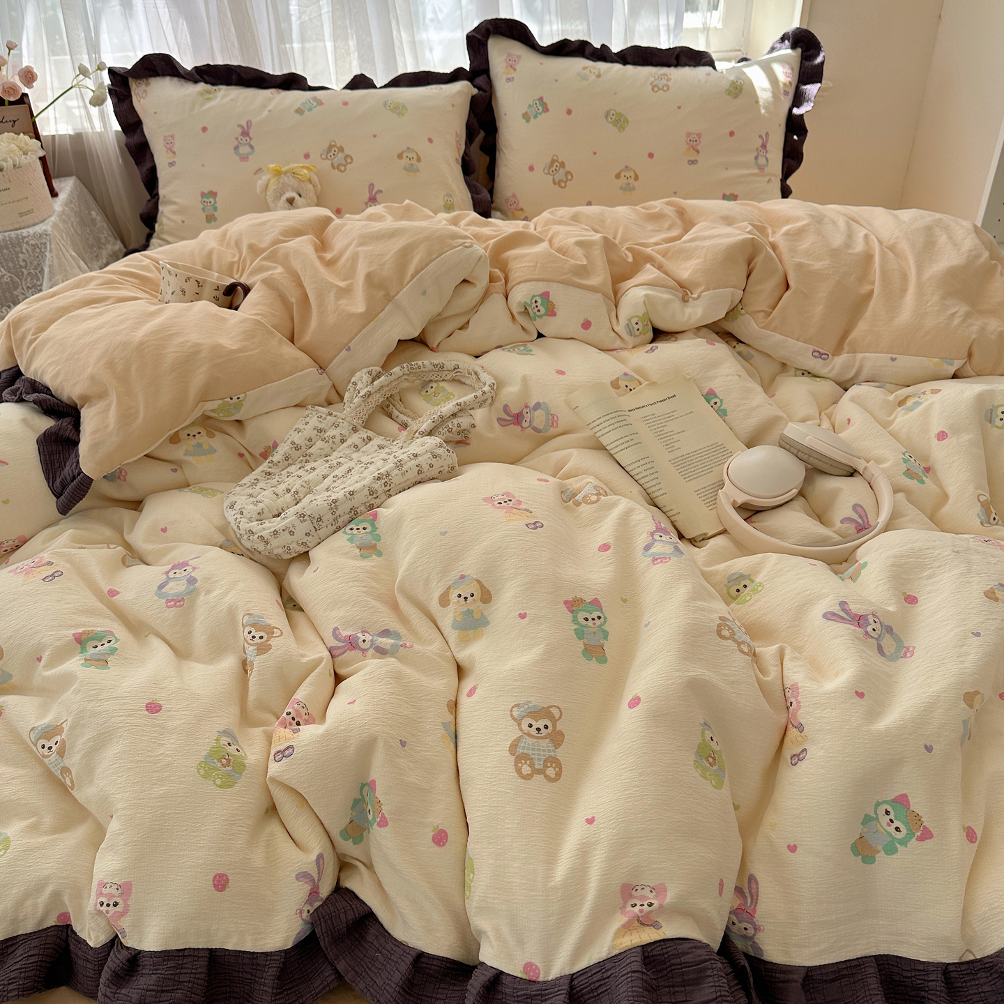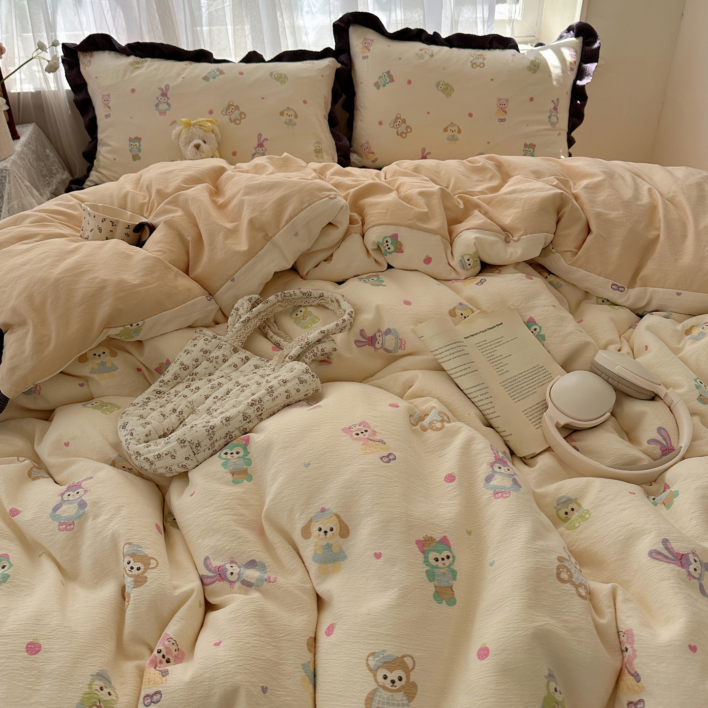 当前位置: 91家纺网 > 商品网购 > 床品套件 > 四件套 > 双层纱四件套 > 顾里家纺 2025新款韩系花边皱皱纱四件套 动物园