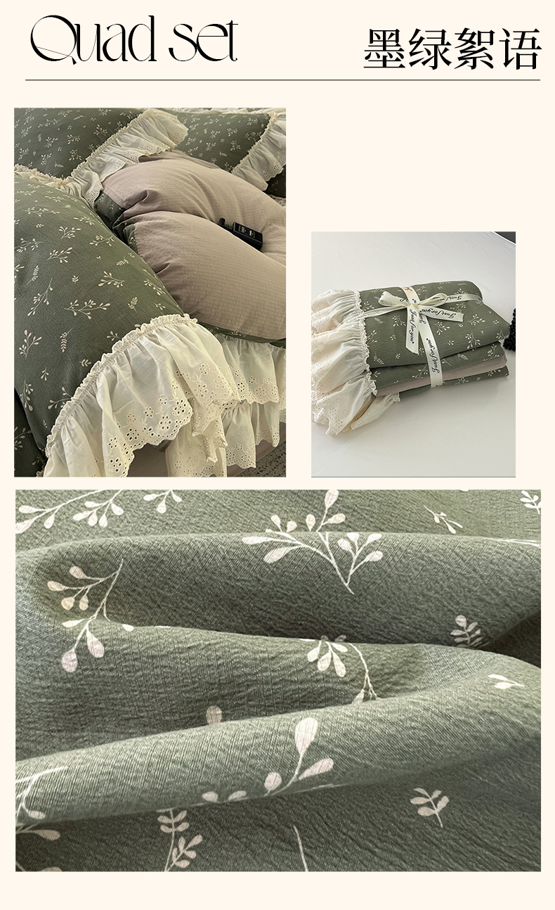 当前位置: 91家纺网 > 商品网购 > 床品套件 > 四件套 > 其它四件套 > 亨通家纺 2025新款原麻镂空宽花边四件套-花卉系列 柔梦漫歌