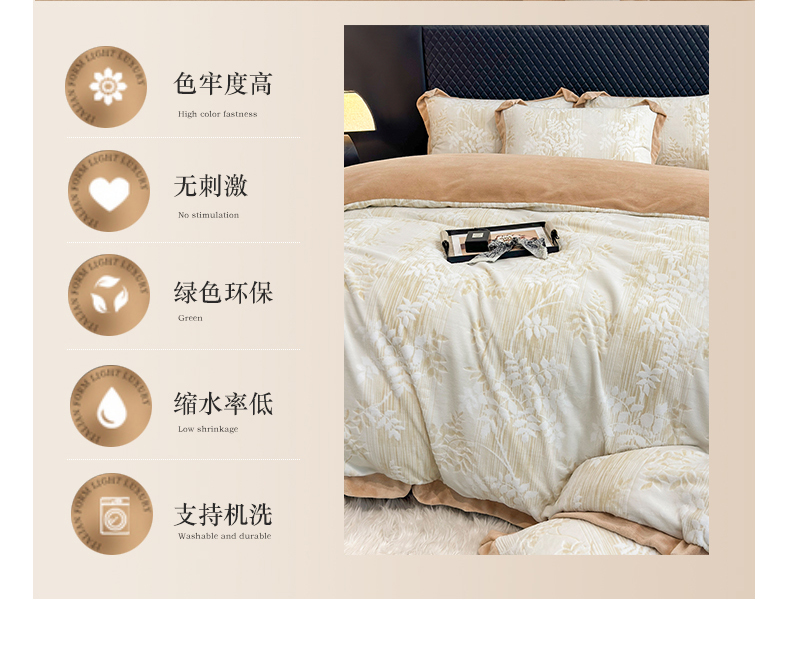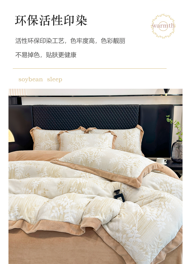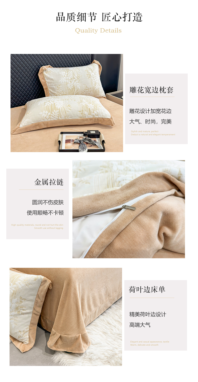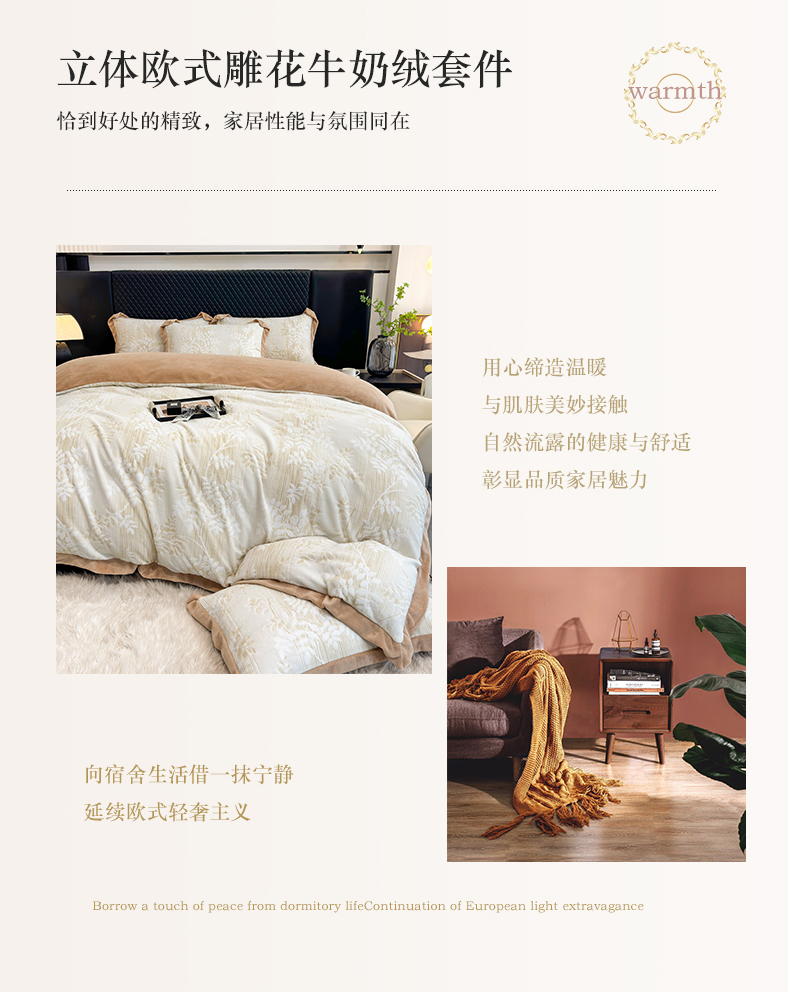 商品名称:梦精灵家纺 2025新款高克重加厚雕花牛奶绒四件套 瑞竹
