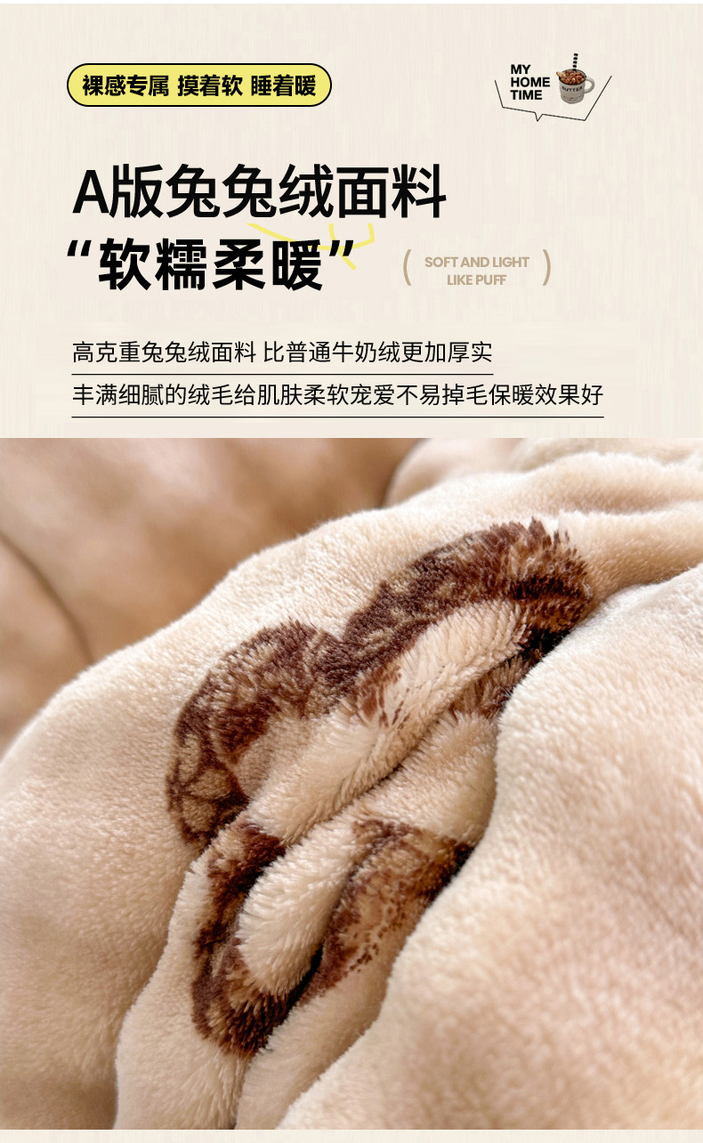 当前位置: 91家纺网 > 商品网购 > 毛毯休闲毯绒毯 > 毛毯 > 丫丫家纺 2025直播热款A+兔兔绒豆豆被三层夹棉加厚毛毯毯子牛奶绒冬被泡泡兔毛绒保暖被子被芯 洋气咖