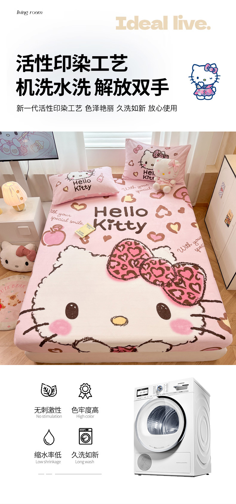 商品名称:(总)暮思家居 2025新款正版授权三丽鸥大版牛奶绒数码印花单品床笠单件床笠(带标价格)