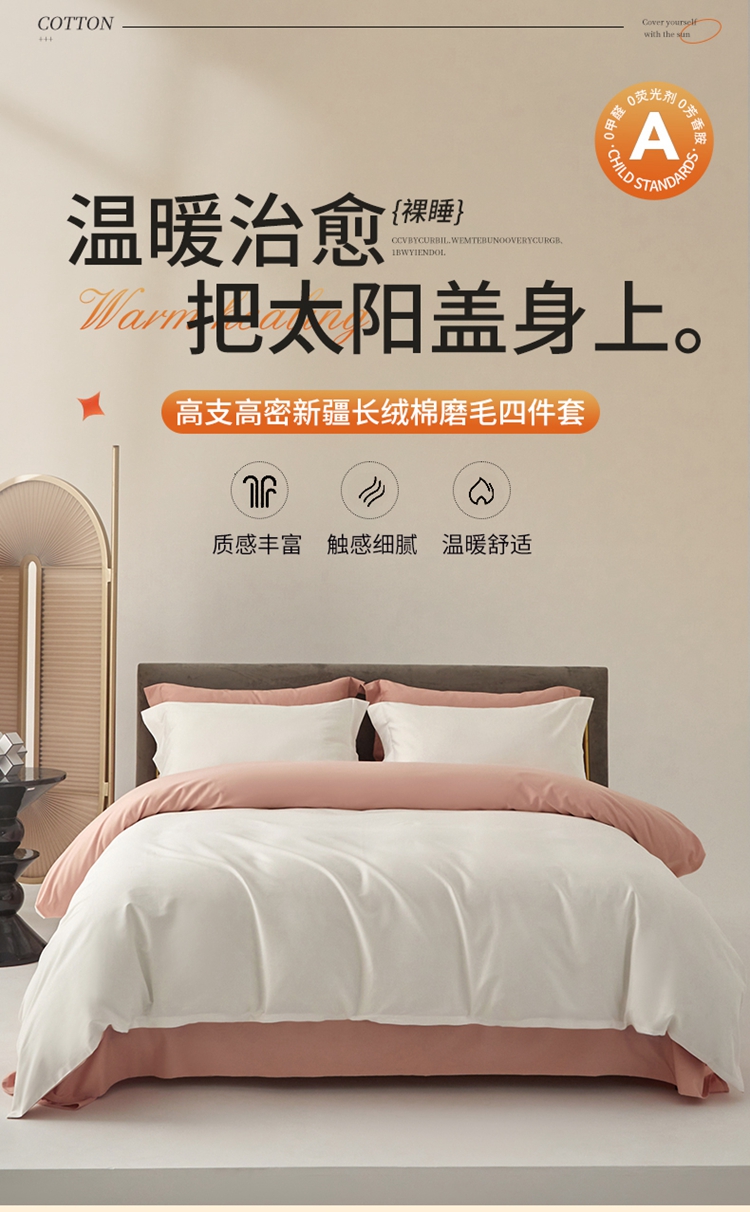 当前位置: 91家纺网 > 商品网购 > 床品套件 > 四件套 > 长绒棉四件套 > 柔觉家纺 新款50*50双股长绒棉纯色磨毛四件套 纯洁白-粉豆沙