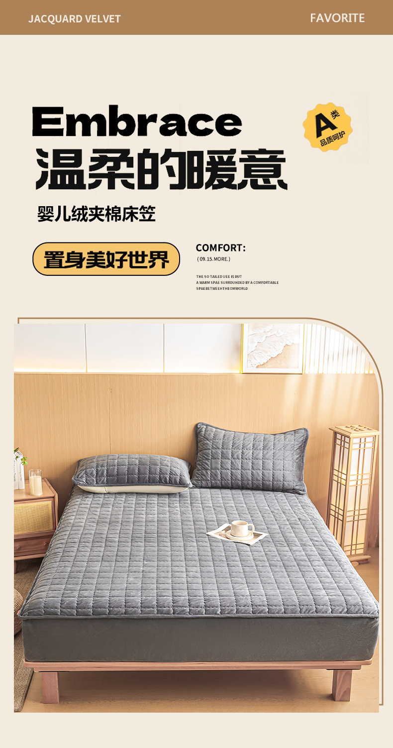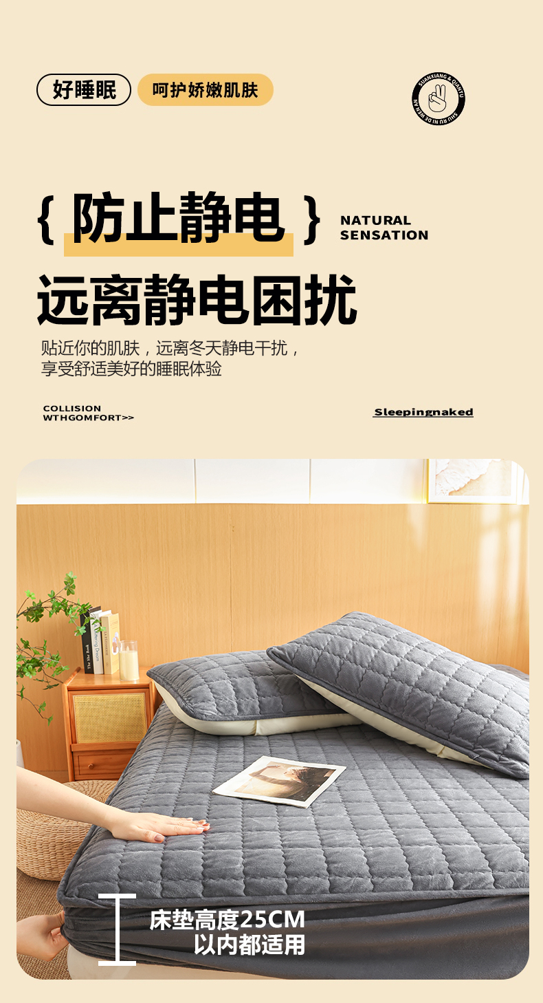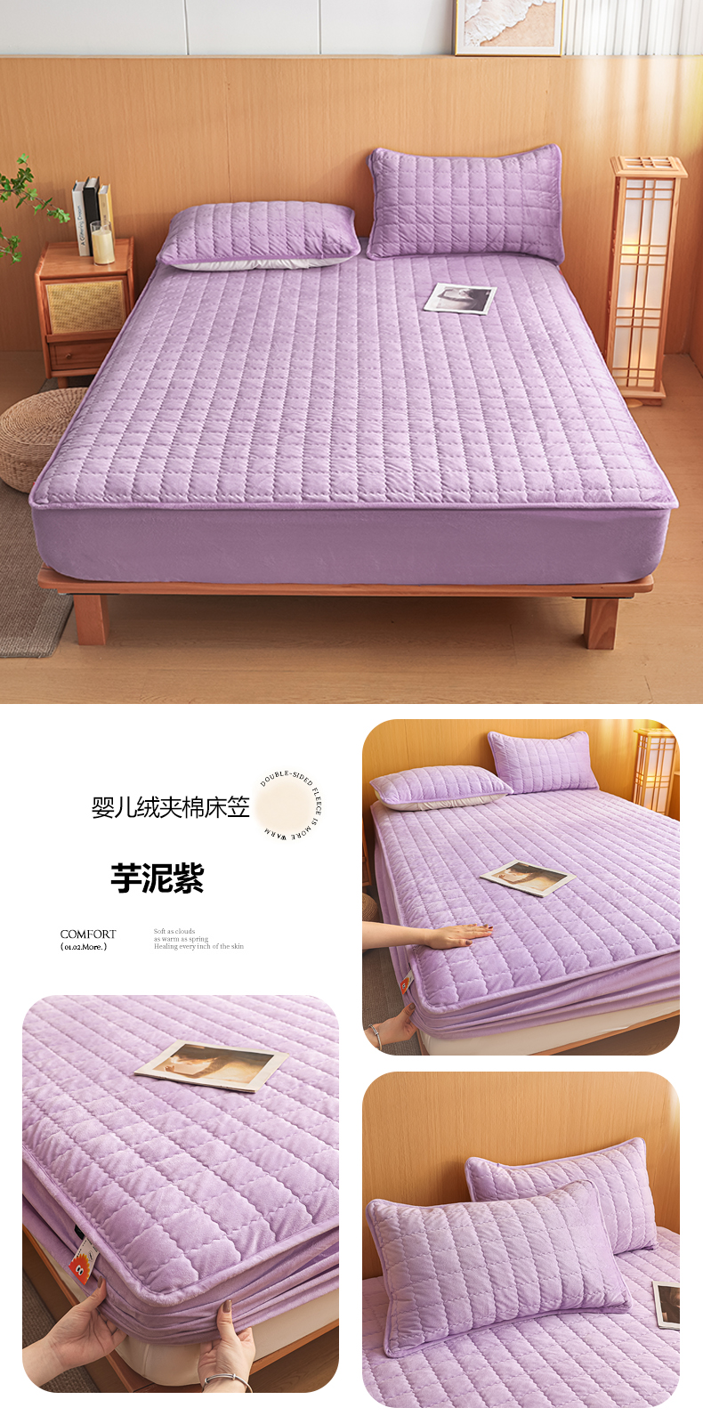 (总)潮邦创意家居 2025新款婴儿绒夹棉床笠单品单件床垫保护套,卡其,海棠粉,芋泥紫,星空灰,宾利蓝