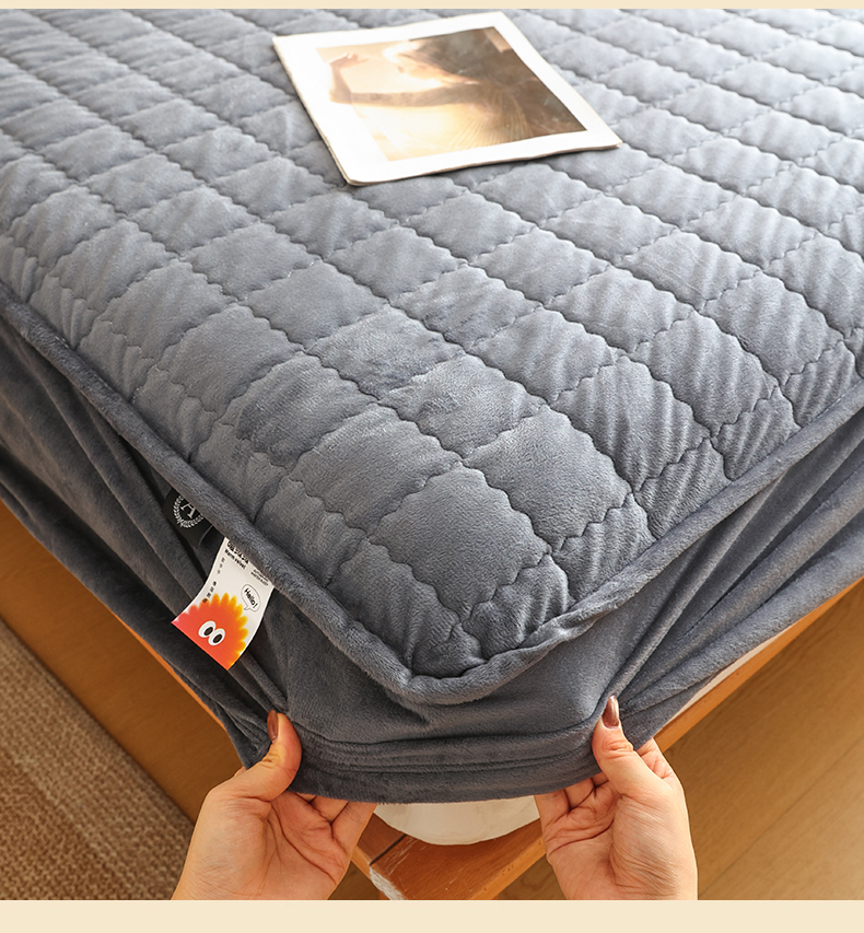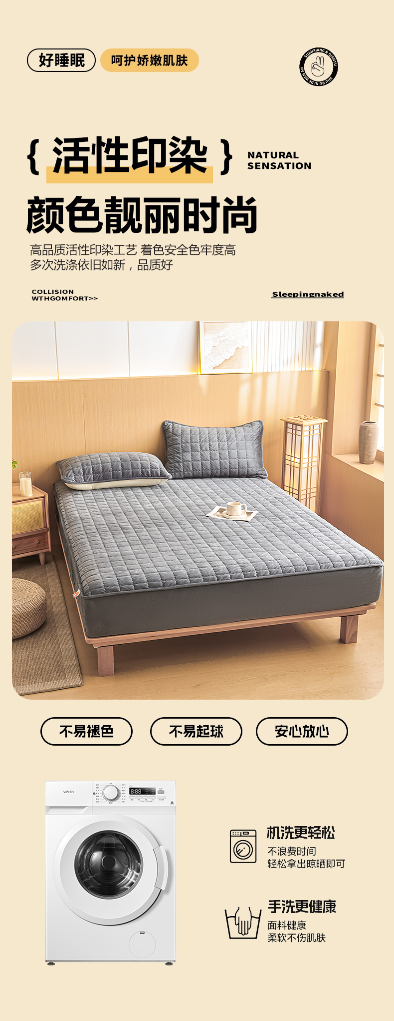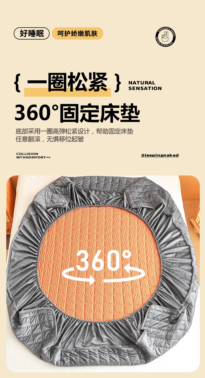 (总)潮邦创意家居 2025新款婴儿绒夹棉床笠单品单件床垫保护套,卡其,海棠粉,芋泥紫,星空灰,宾利蓝
