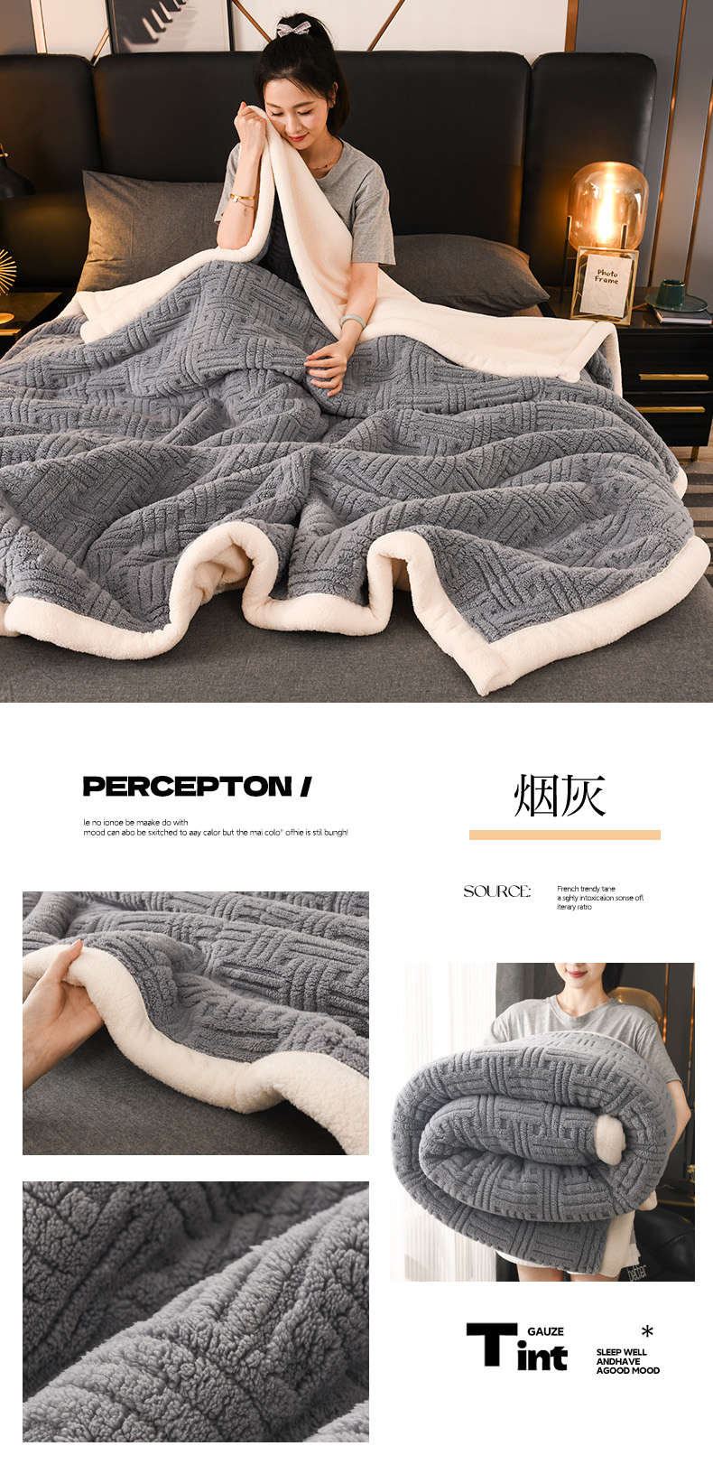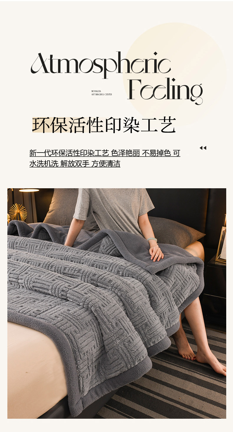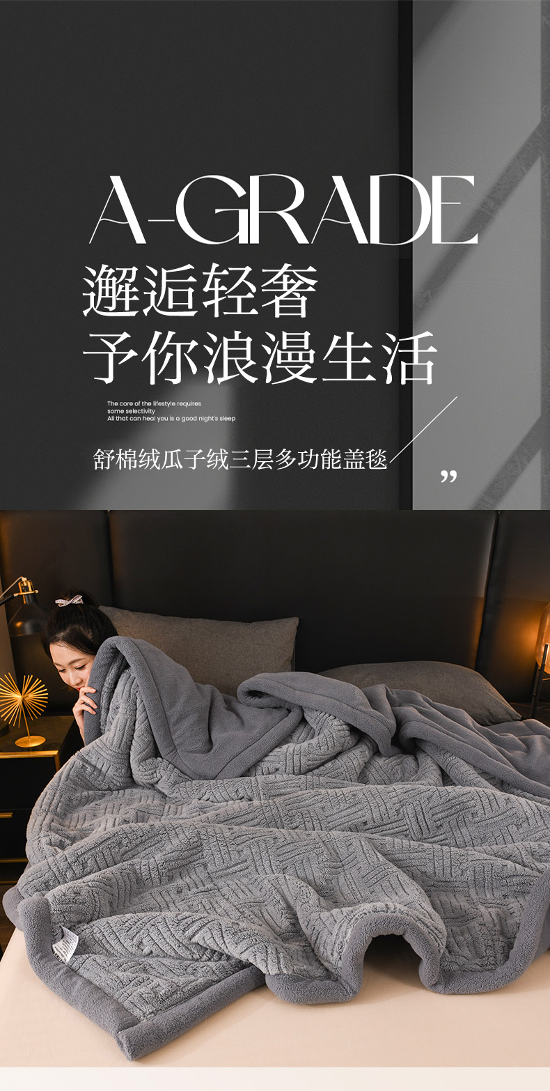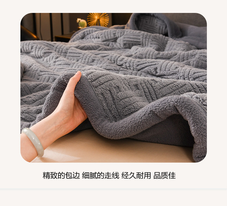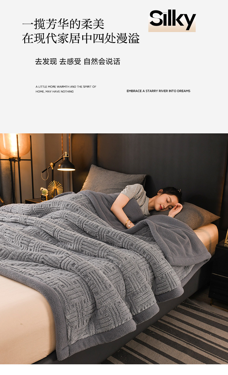 印季家纺 2025秋冬新款三层夹棉立体舒棉绒毛毯毯子多功能盖毯 烟灰+灰