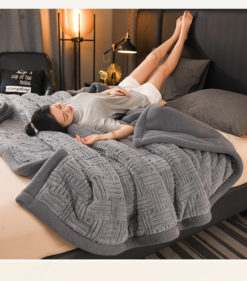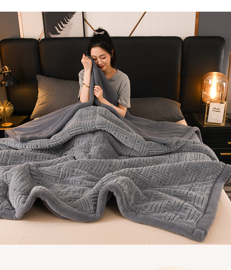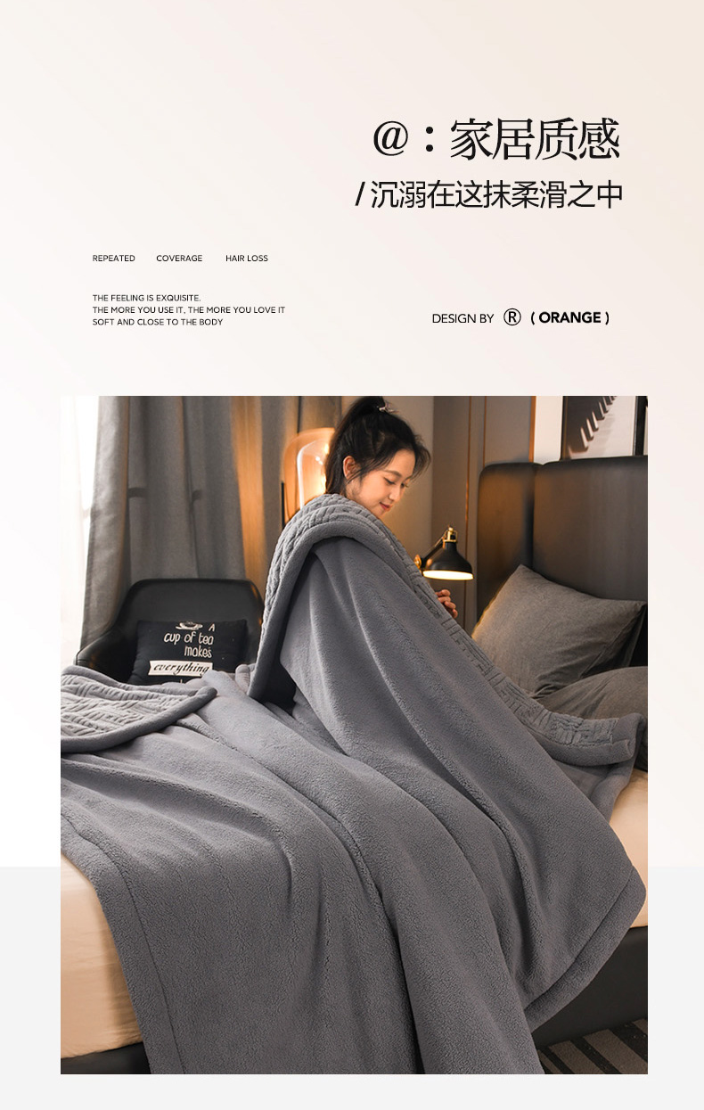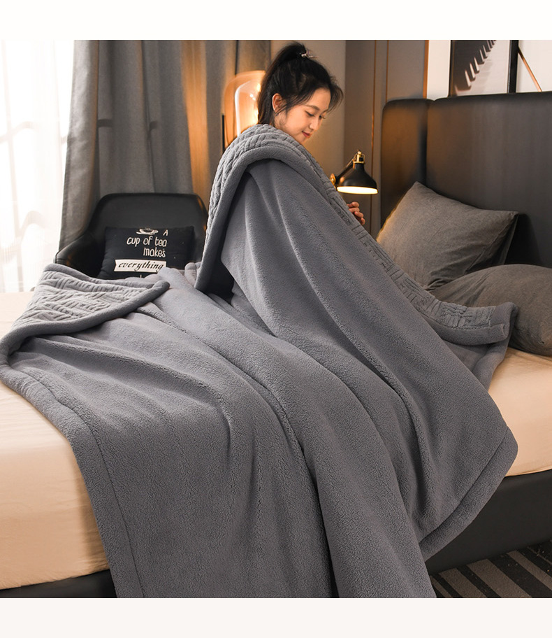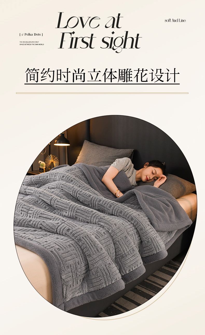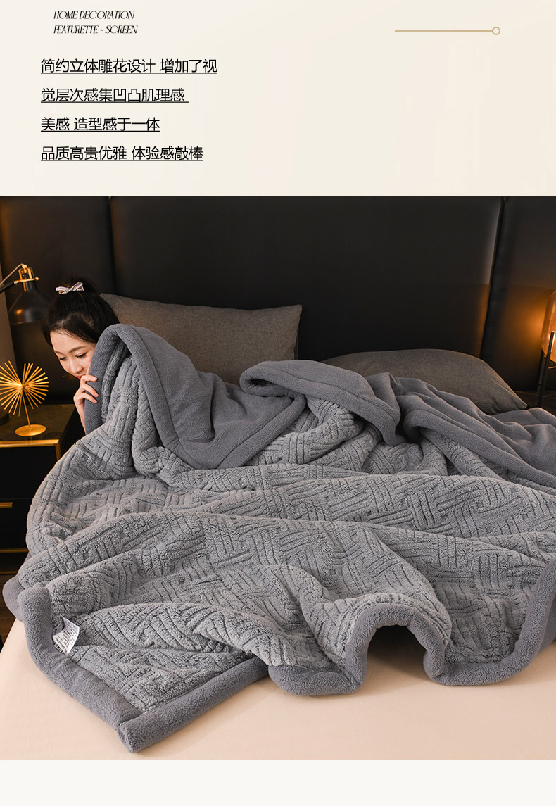 印季家纺 2025秋冬新款三层夹棉立体舒棉绒毛毯毯子多功能盖毯 烟灰+灰