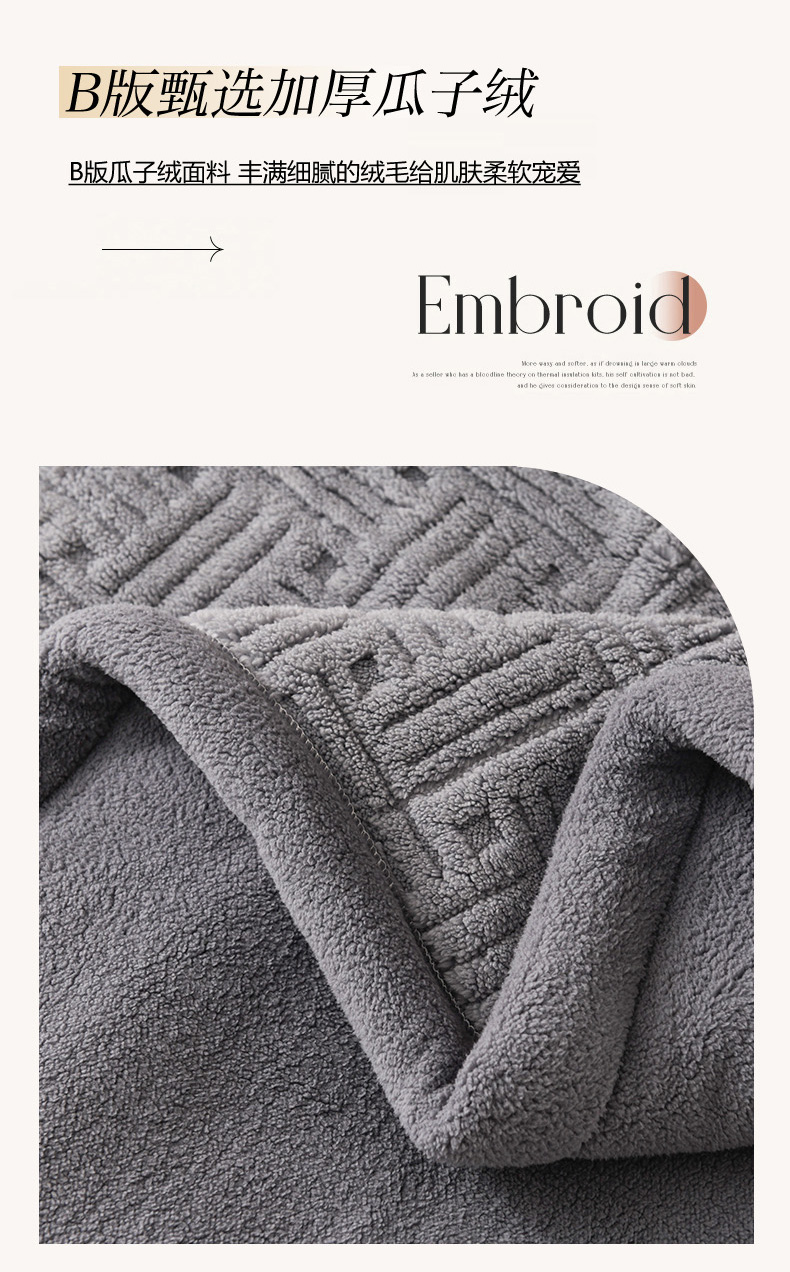 商品名称:印季家纺 2025秋冬新款三层夹棉立体舒棉绒毛毯毯子多功能盖毯 烟灰+灰