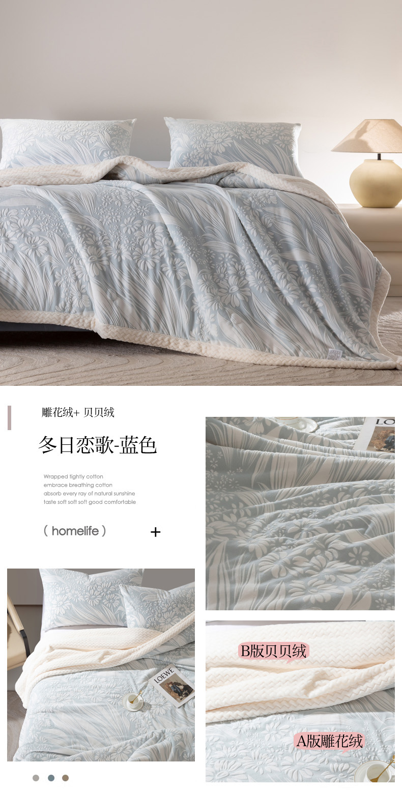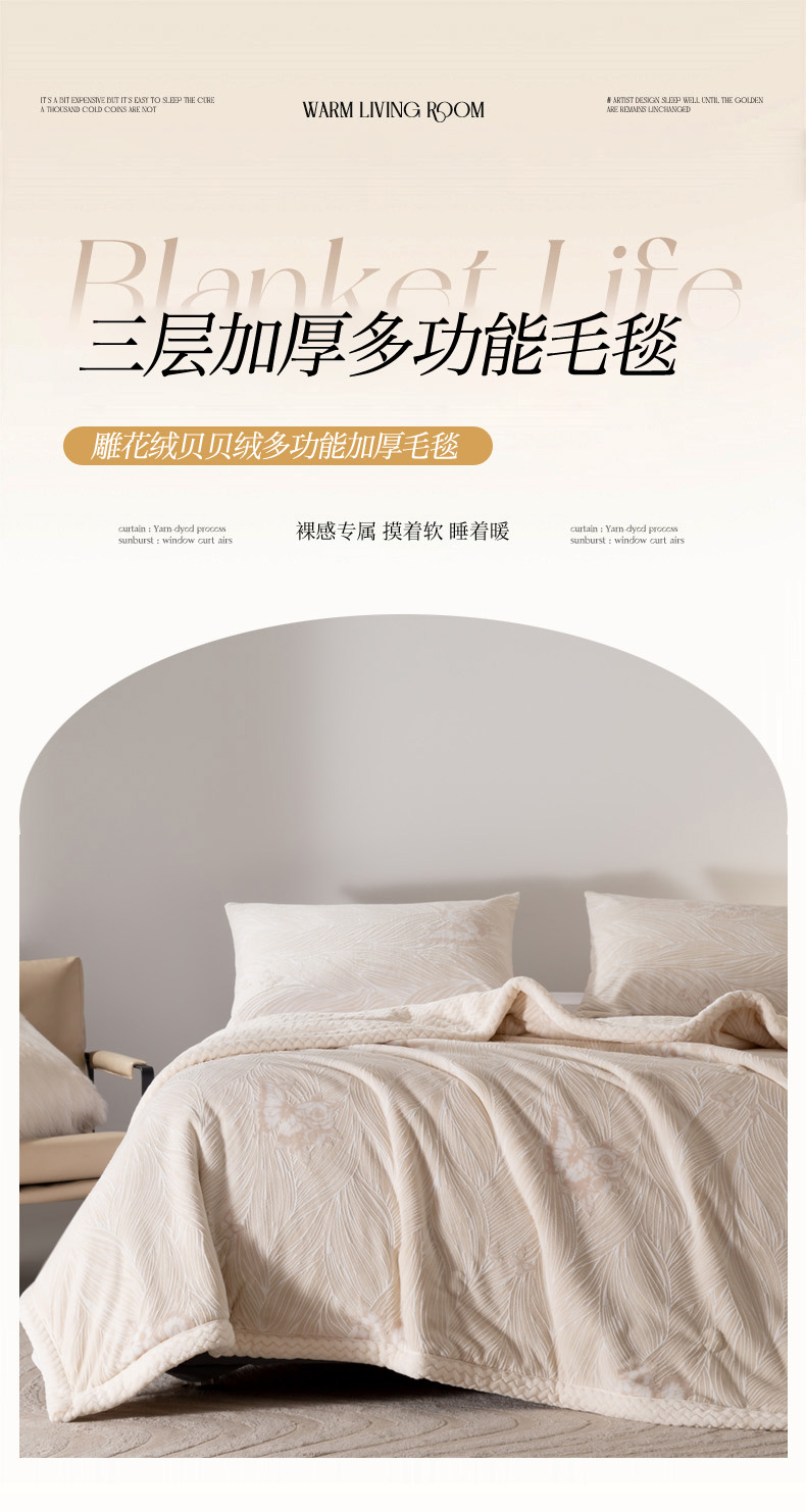 当前位置: 91家纺网 > 商品网购 > 毛毯休闲毯绒毯 > 毛毯 > 印季家纺 2025新款三层夹棉花卉款-雕花绒毛毯毯子多功能盖毯 雕花绒+贝贝绒-玉蝶霓裳
