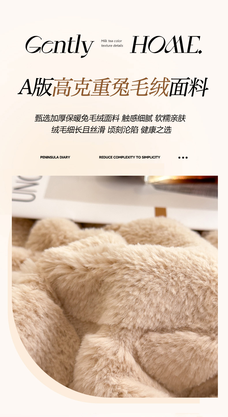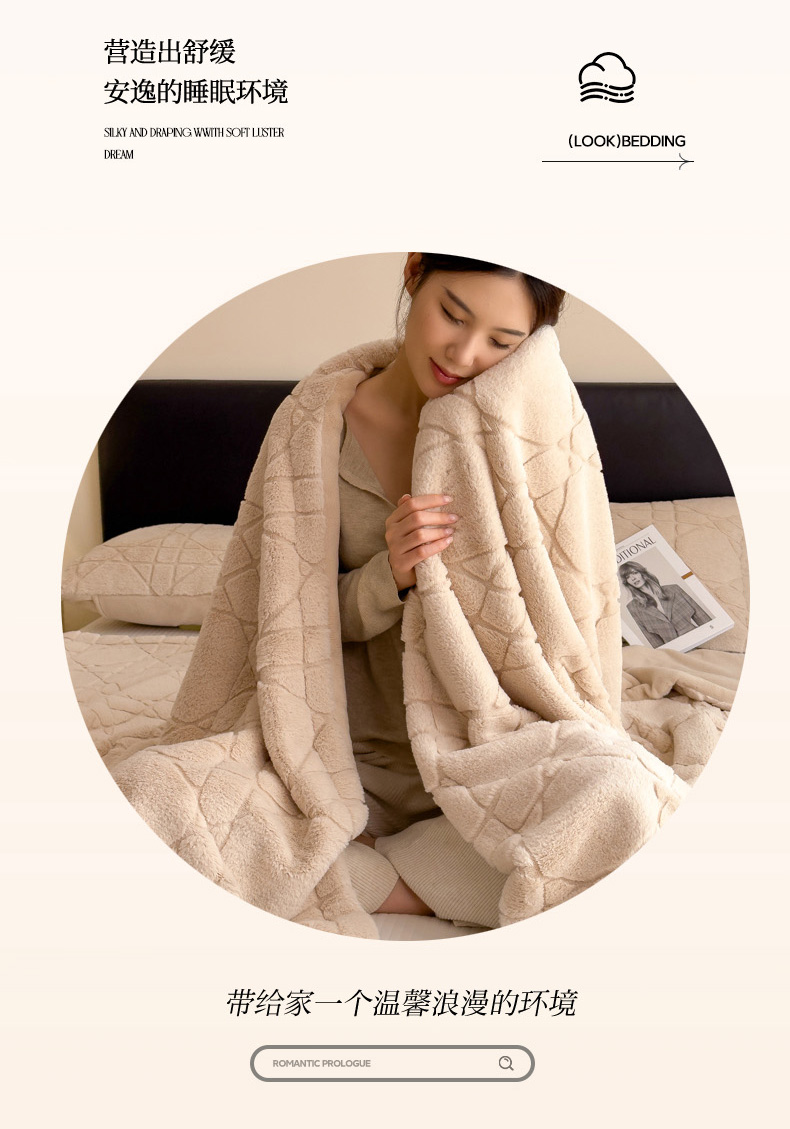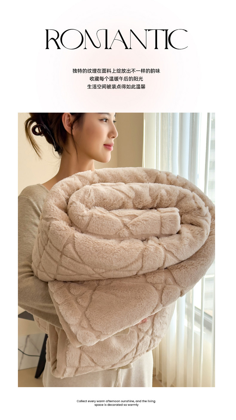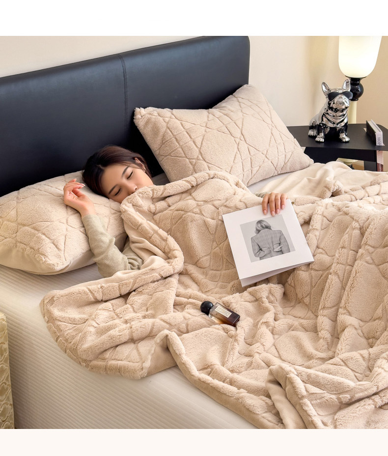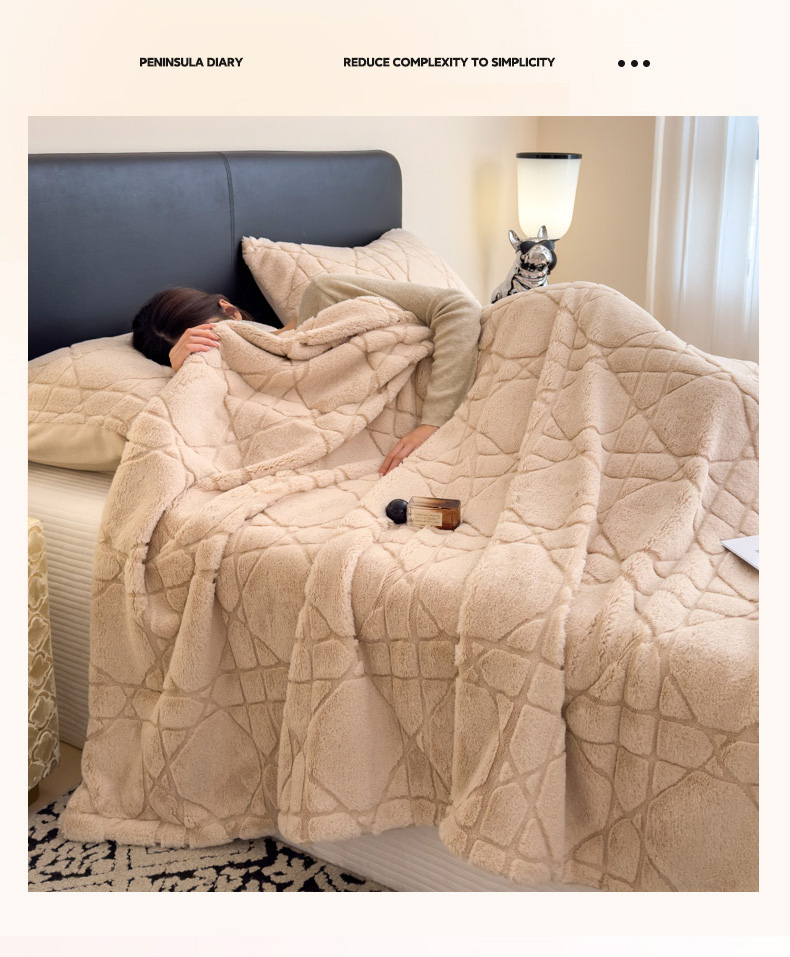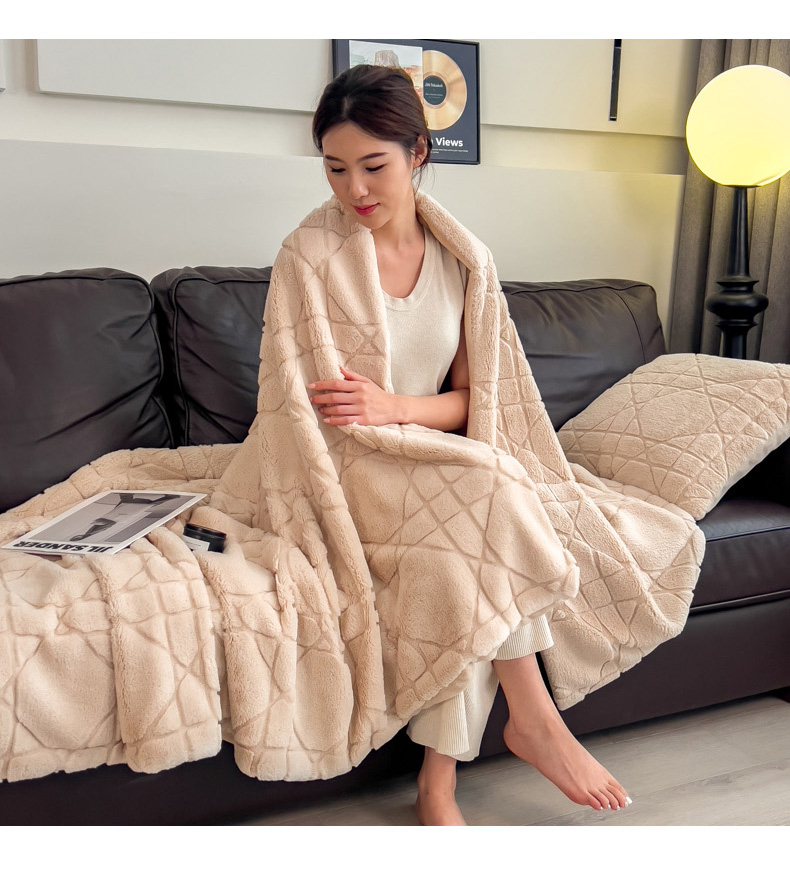 商品名称:印季家纺 2025新款双层提花兔毛绒毛毯毯子 提花兔毛绒-卡其