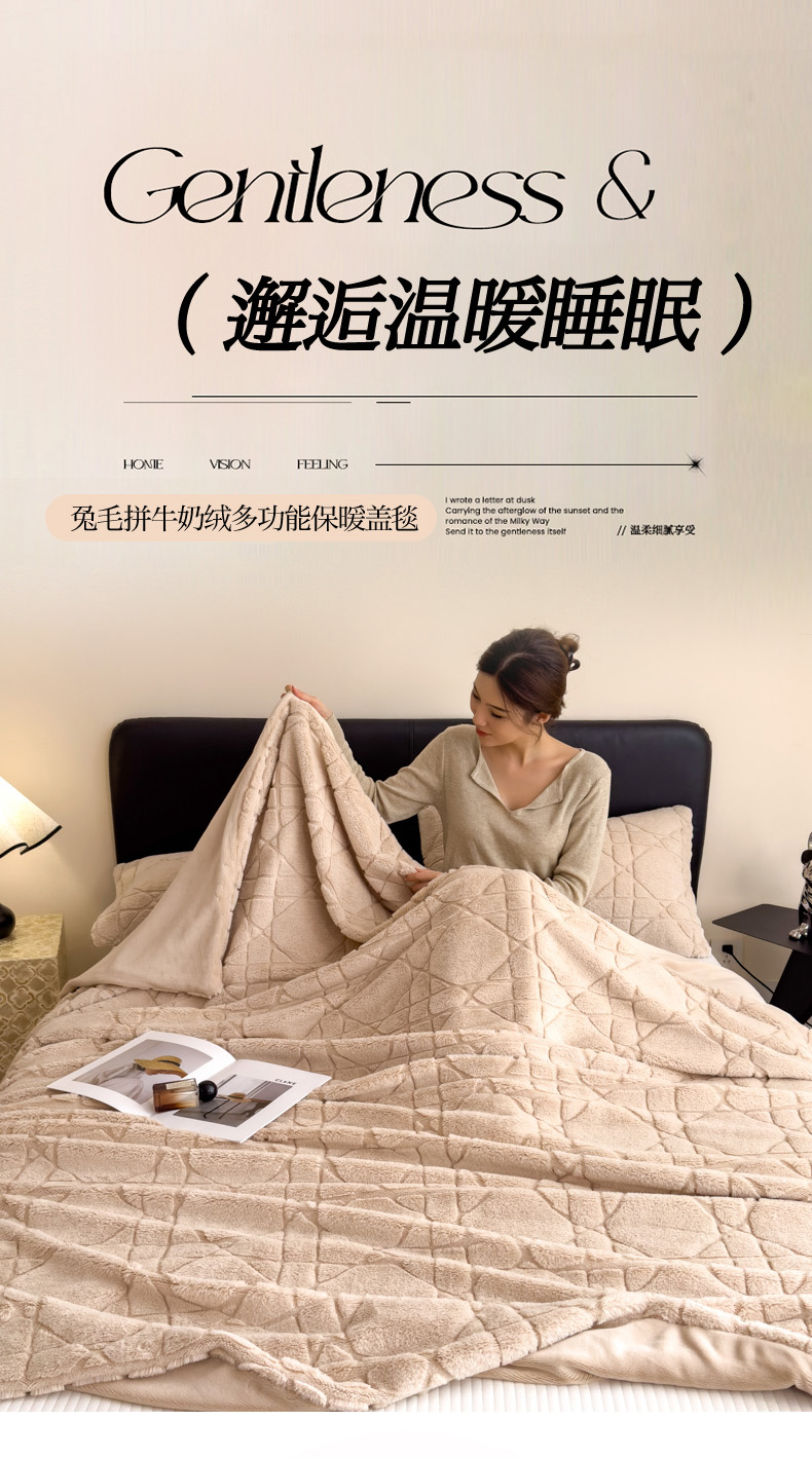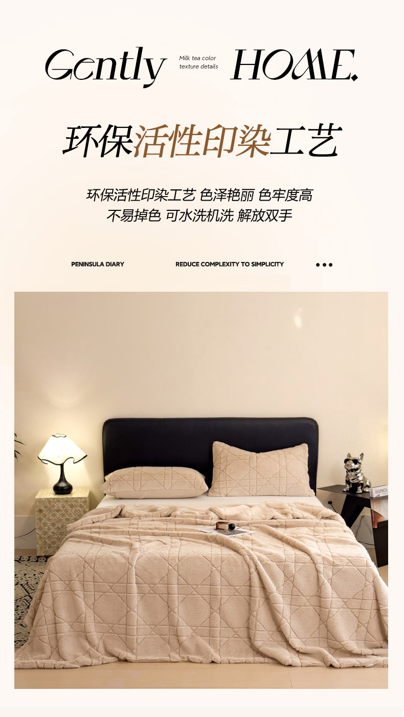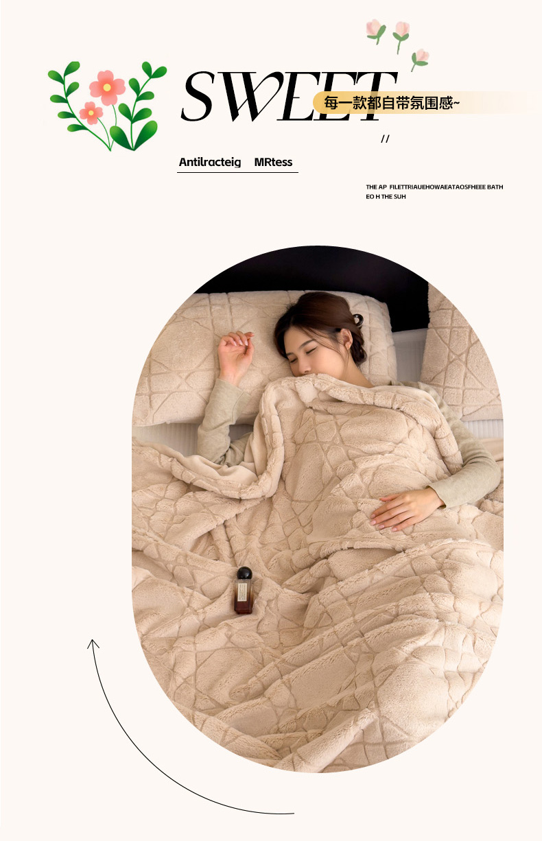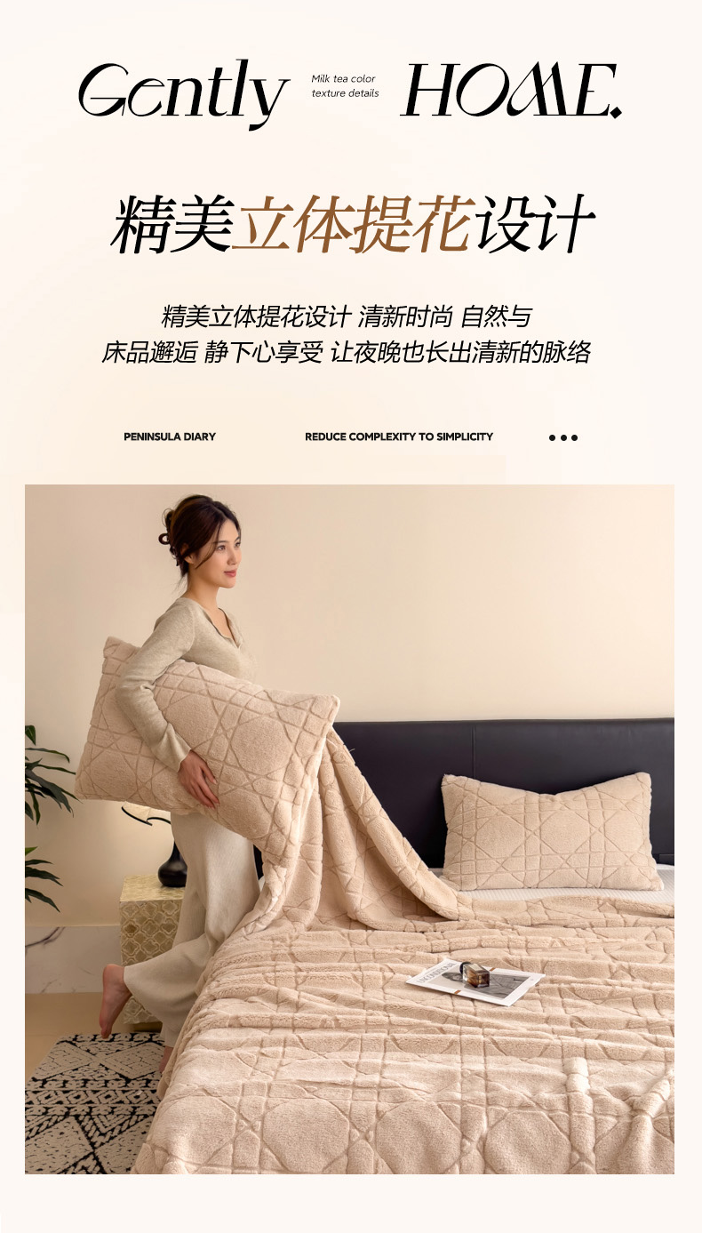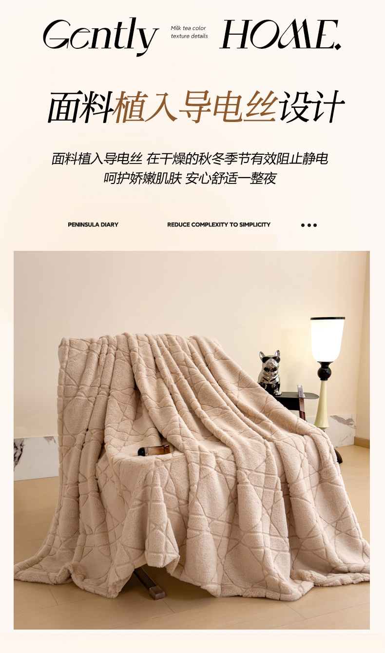 商品名称:印季家纺 2025新款双层提花兔毛绒毛毯毯子 提花兔毛绒-卡其