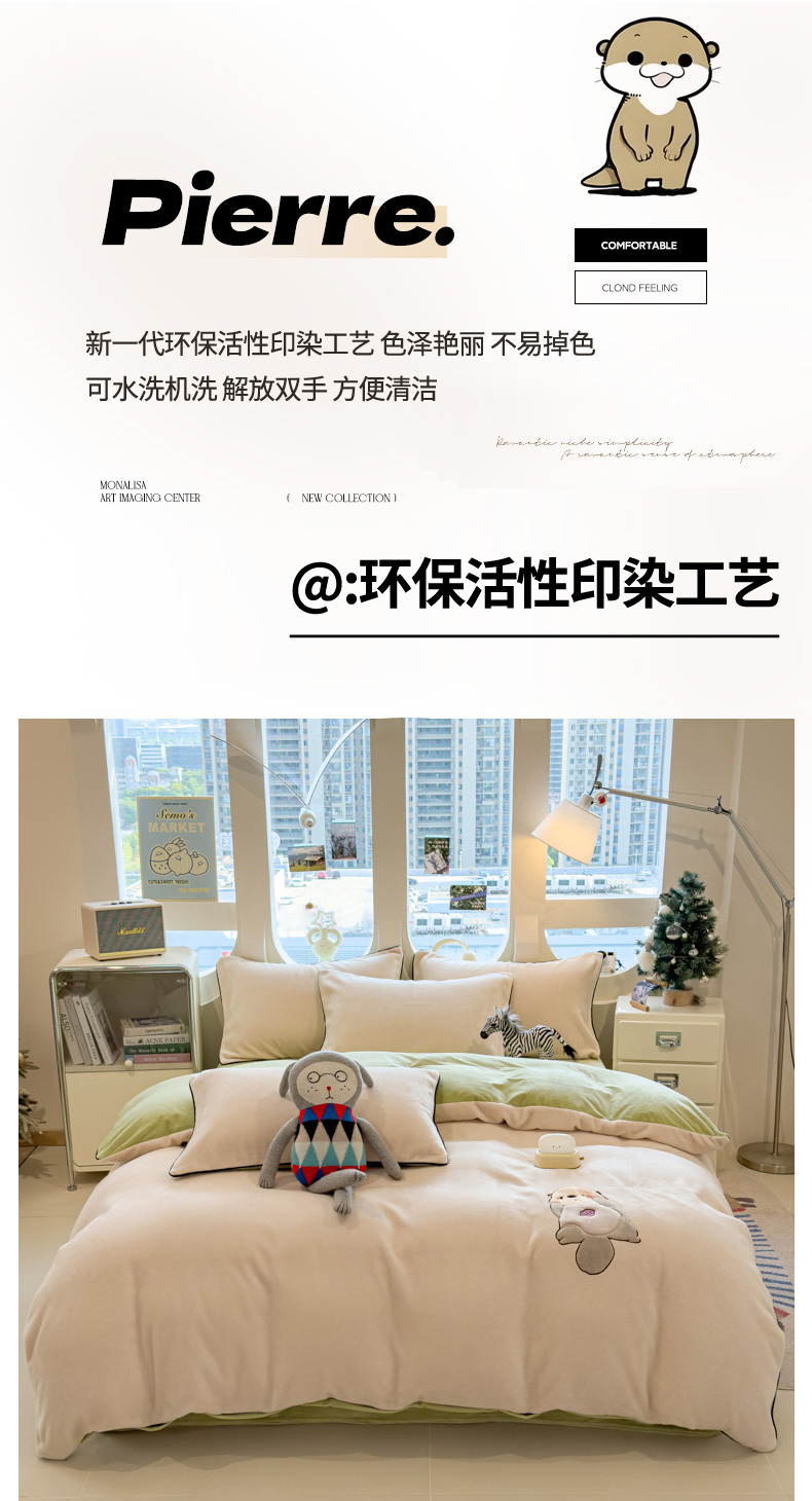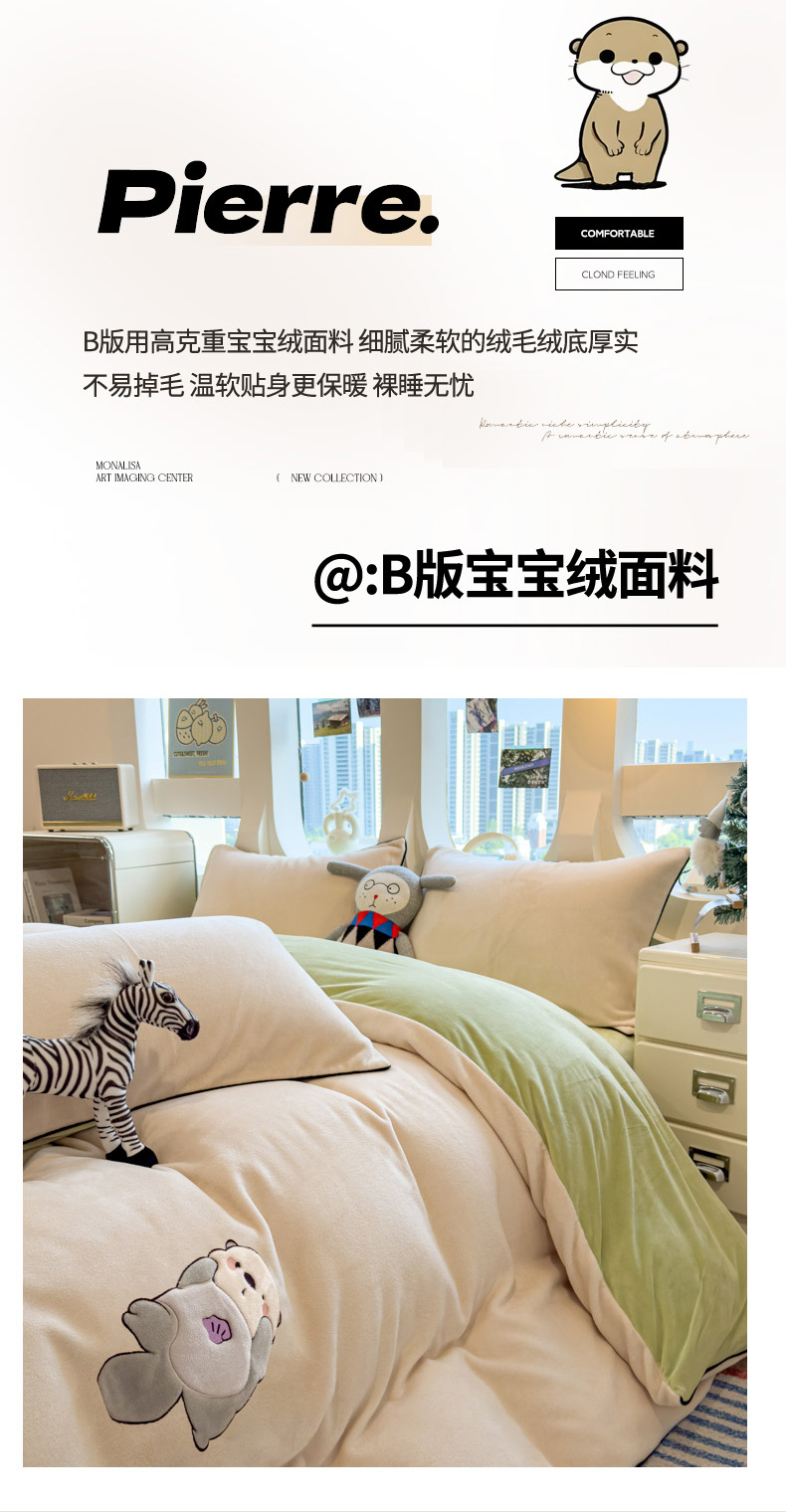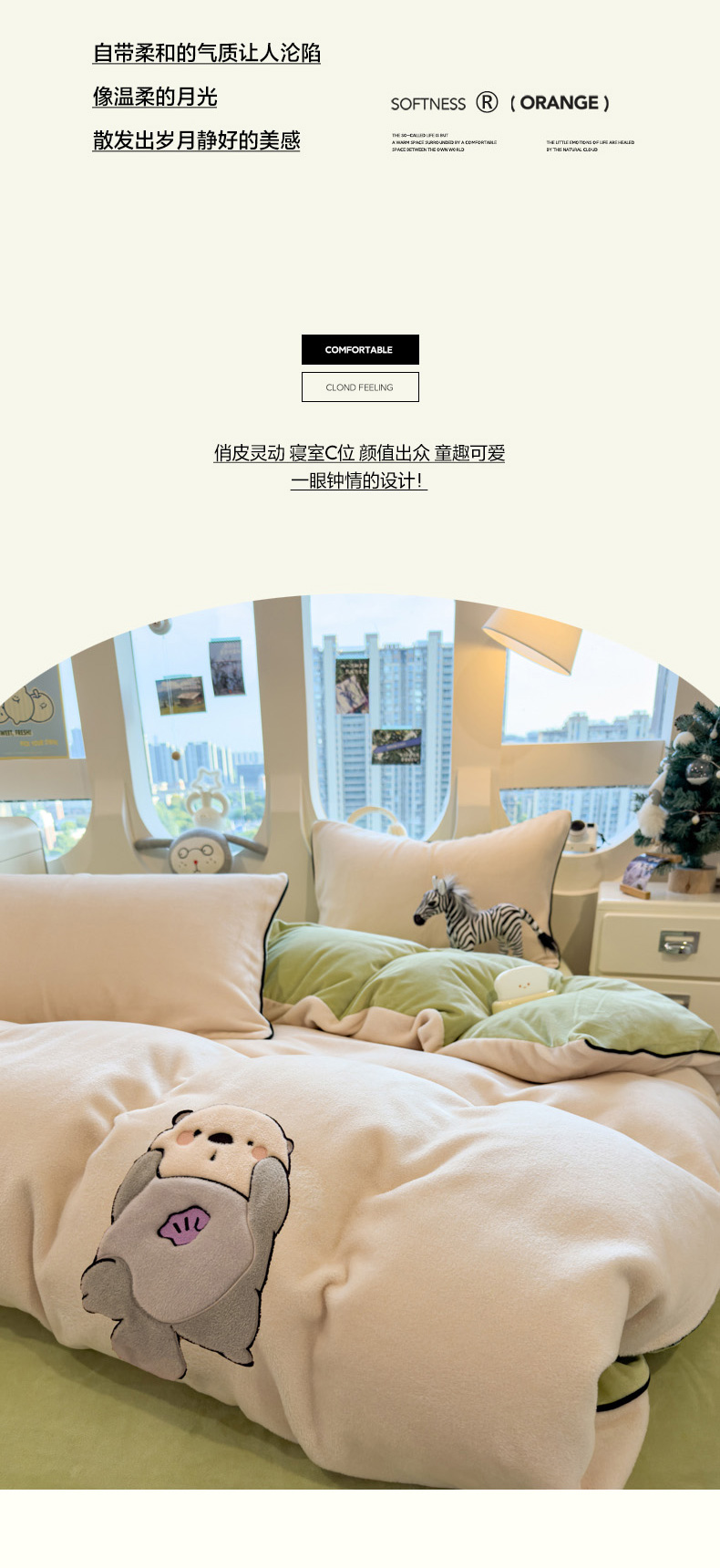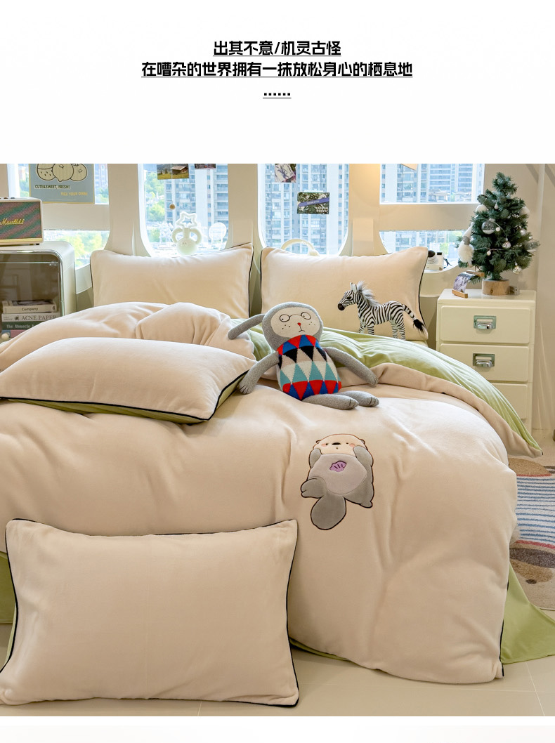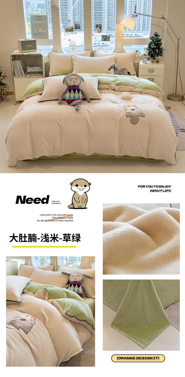 当前位置: 91家纺网 > 商品网购 > 床品套件 > 四件套 > 其它四件套 > 印季家纺 2025新款大肚腩-海獭绒贴布绣四件套 大肚腩-浅米-草绿