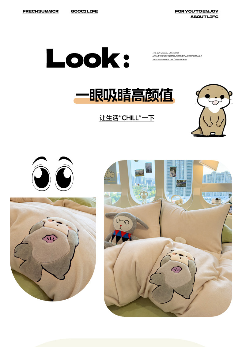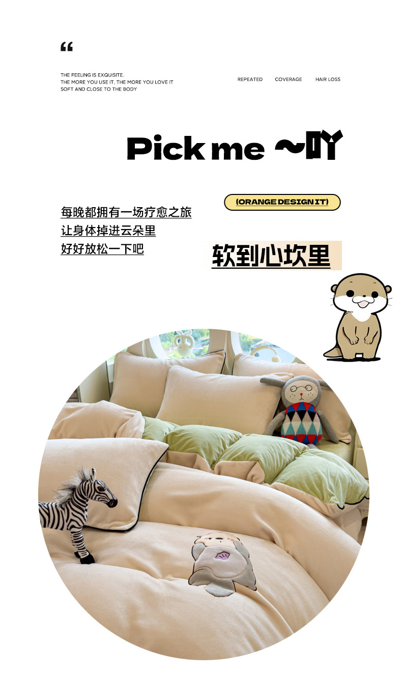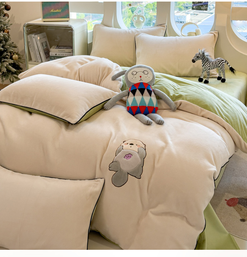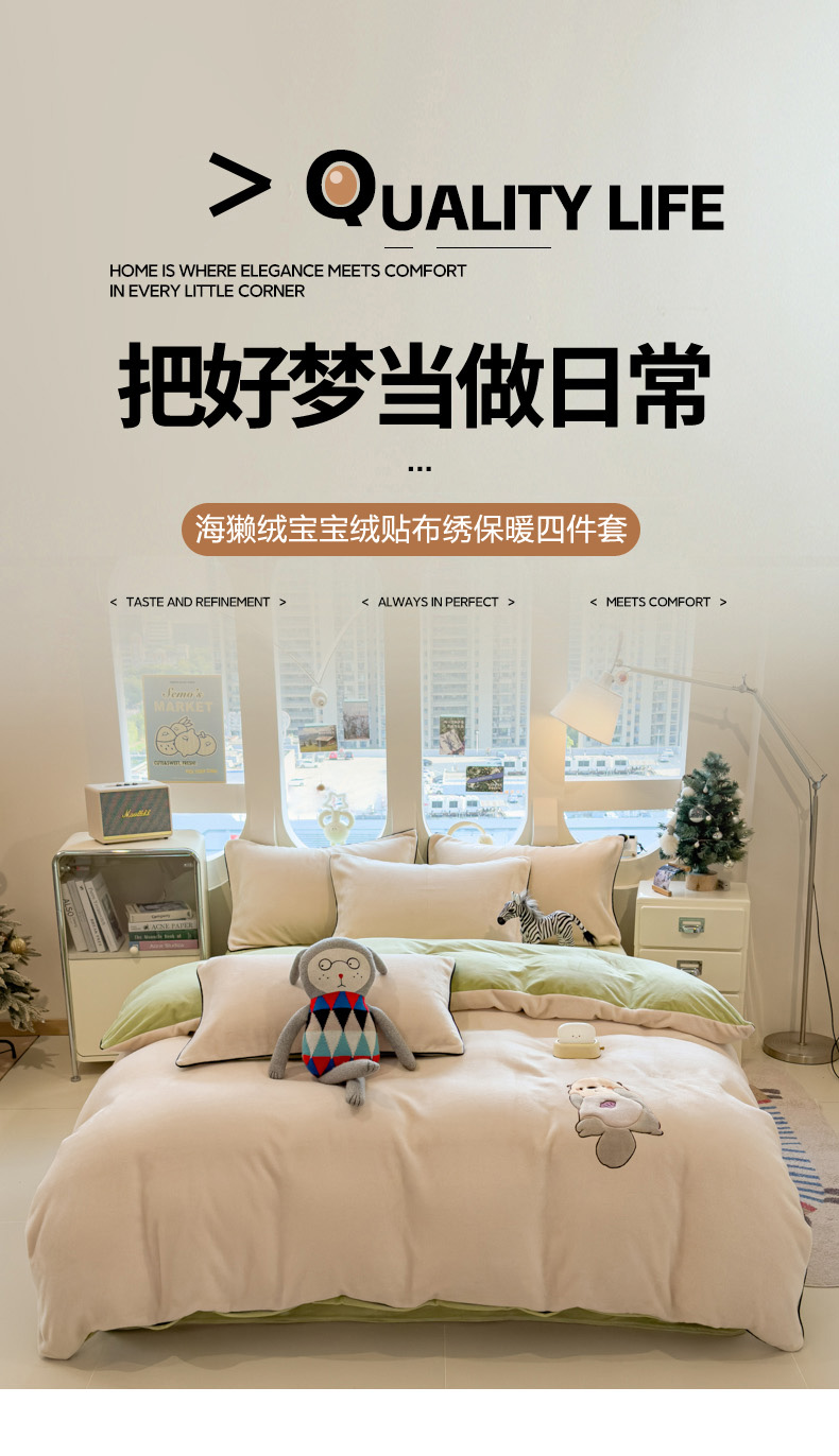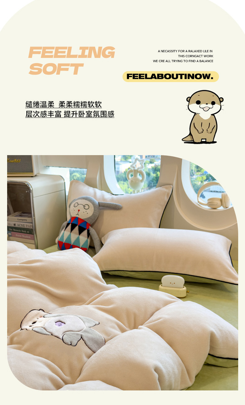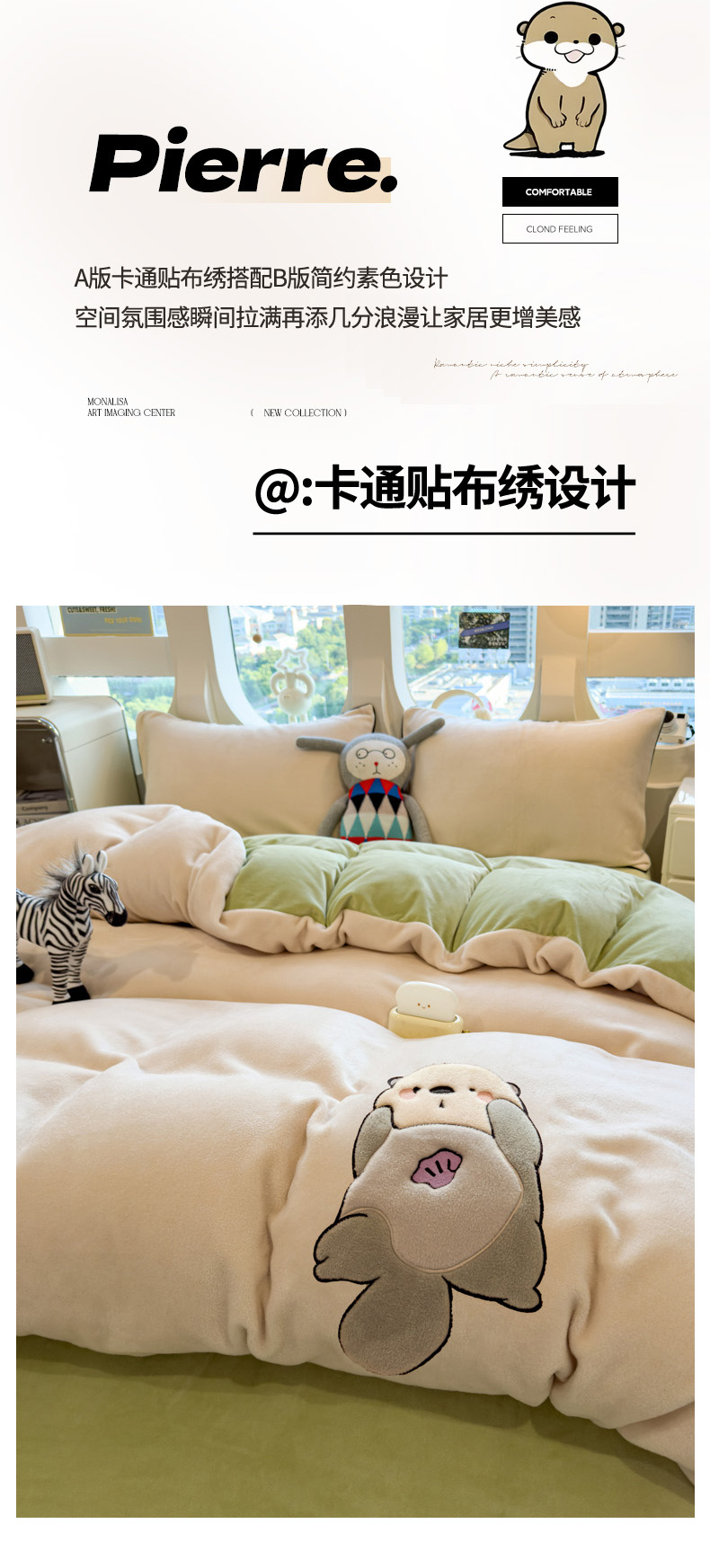 当前位置: 91家纺网 > 商品网购 > 床品套件 > 四件套 > 其它四件套 > 印季家纺 2025新款大肚腩-海獭绒贴布绣四件套 大肚腩-浅米-草绿