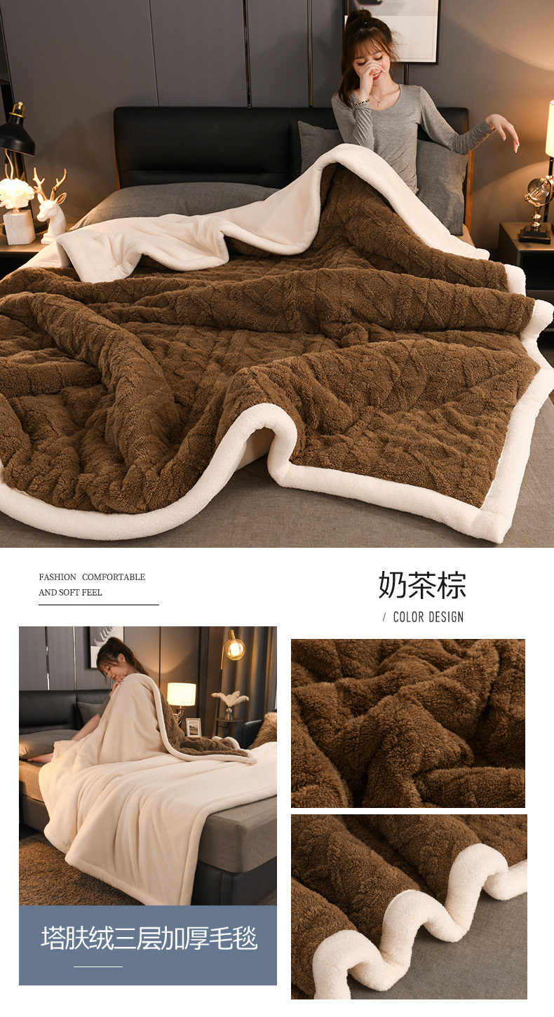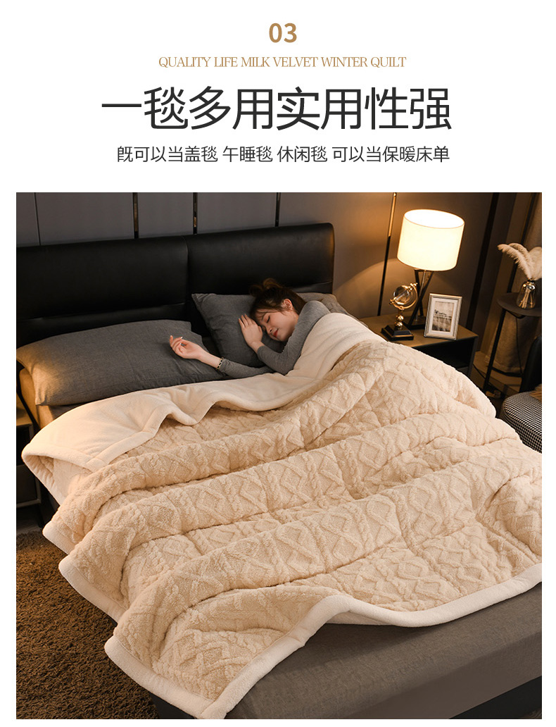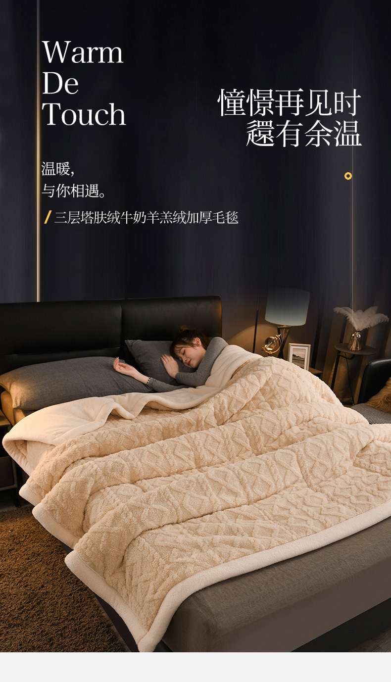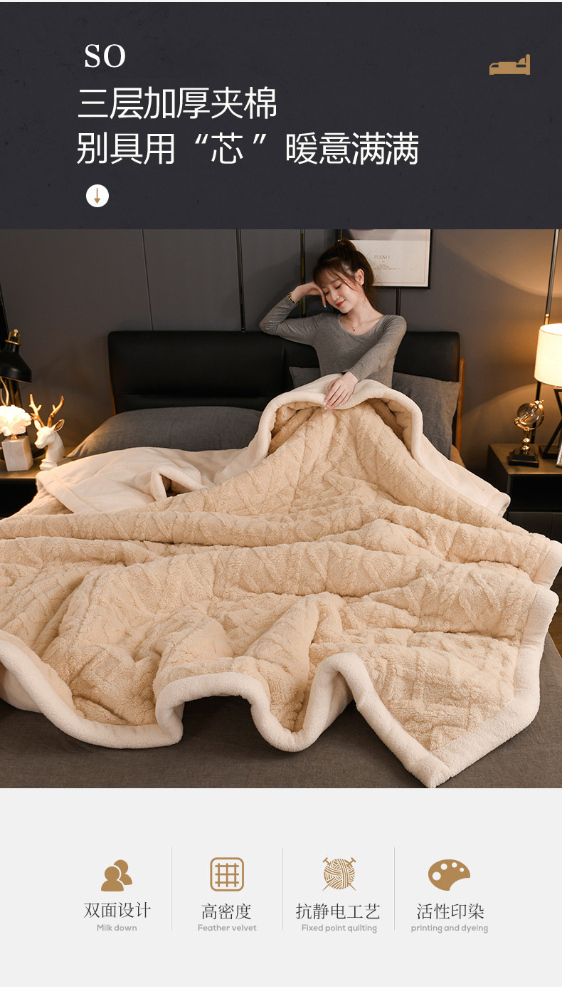 印季家纺 2025秋冬新款三层夹棉加厚-塔肤绒毛毯毯子多功能盖毯 玉色