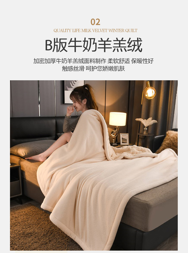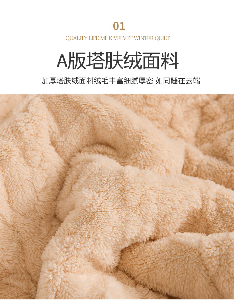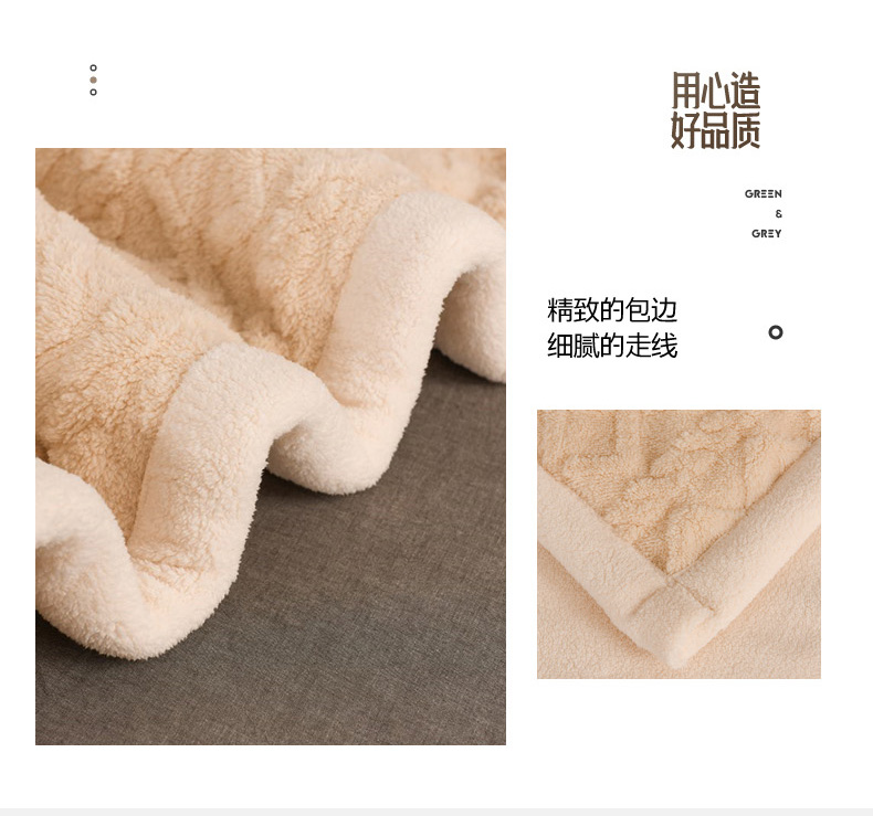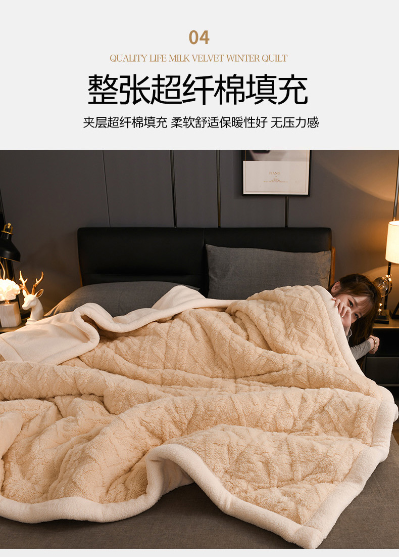 印季家纺 2025秋冬新款三层夹棉加厚-塔肤绒毛毯毯子多功能盖毯 玉色