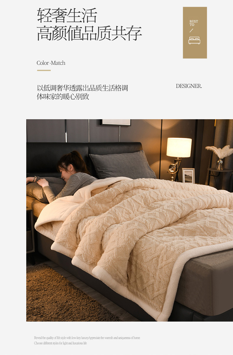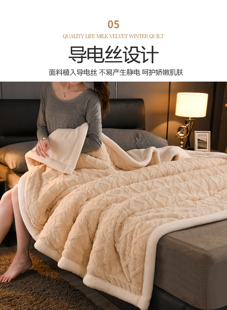 商品名称:印季家纺 2025秋冬新款三层夹棉加厚-塔肤绒毛毯毯子多功能盖毯 玉色