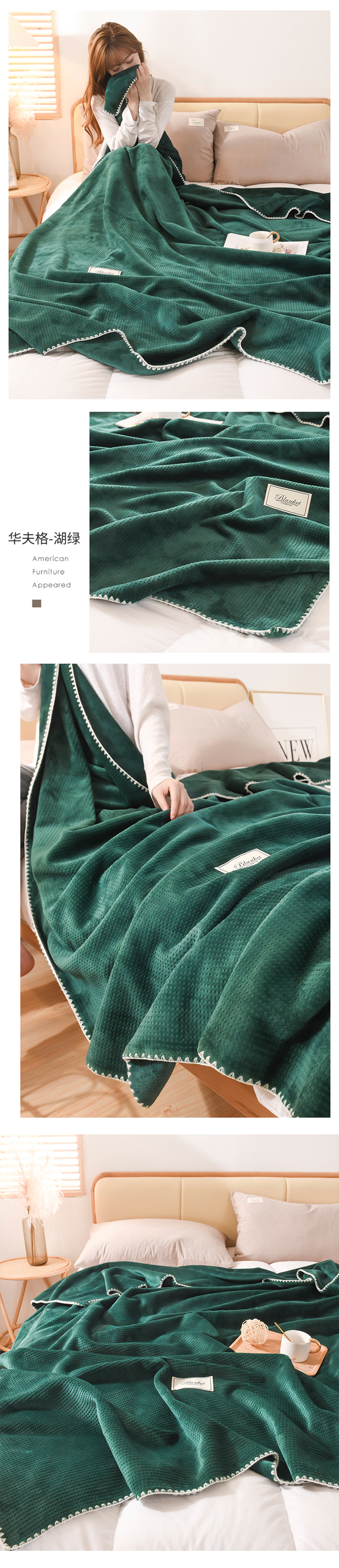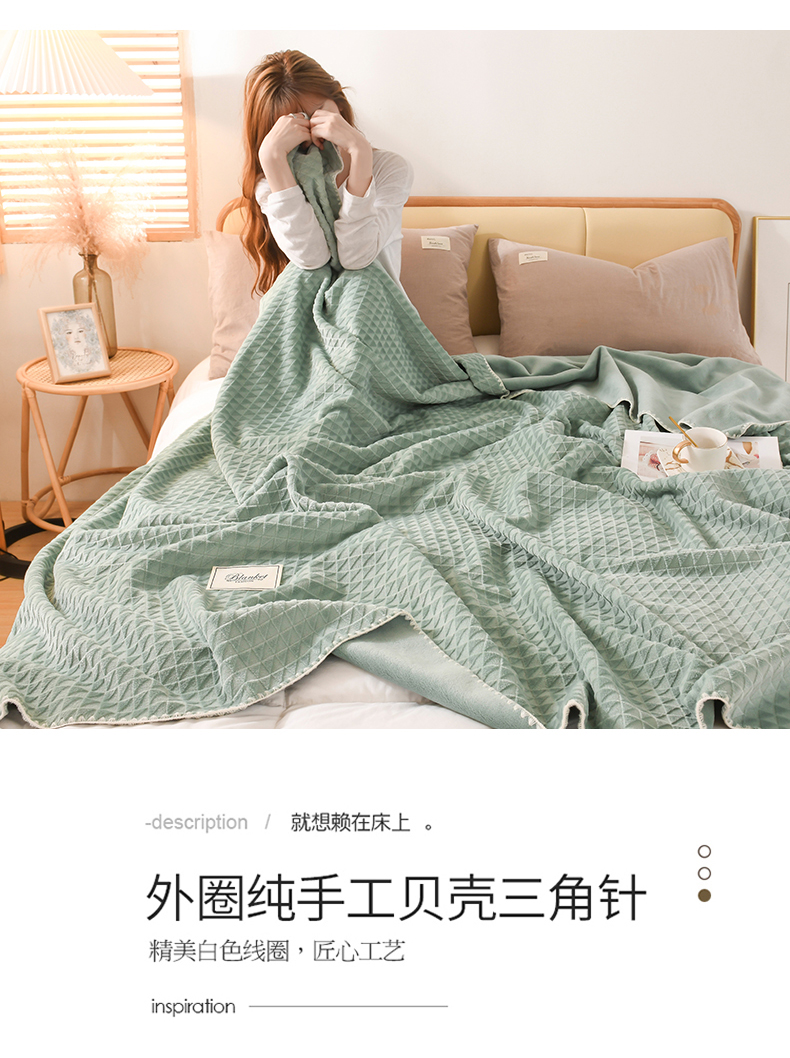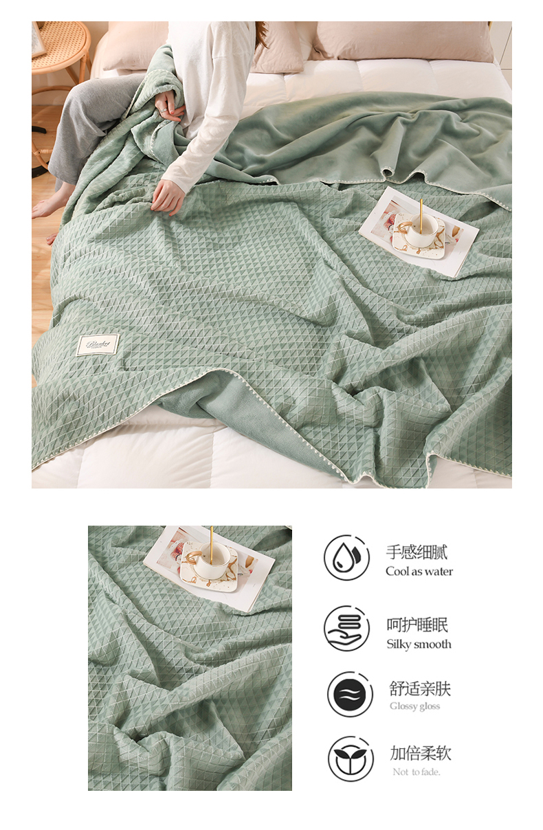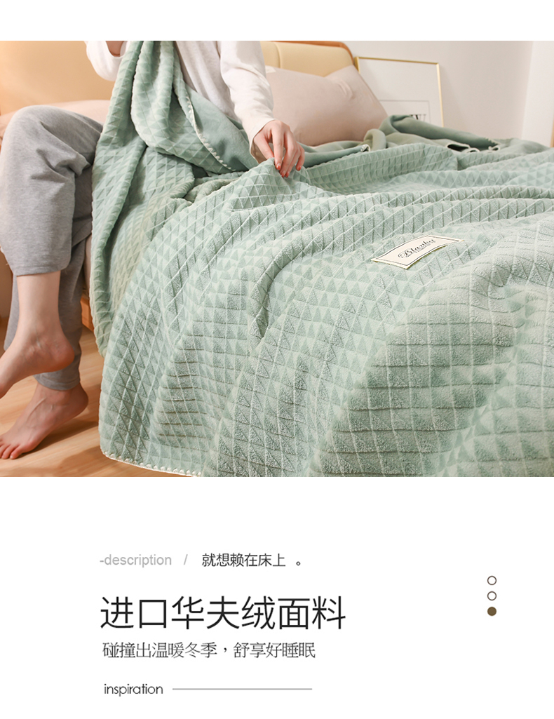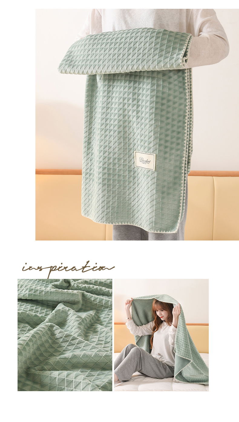 商品名称:印季家纺 2025新款华夫格牛奶绒复合毛毯毯子 渐变格-草绿