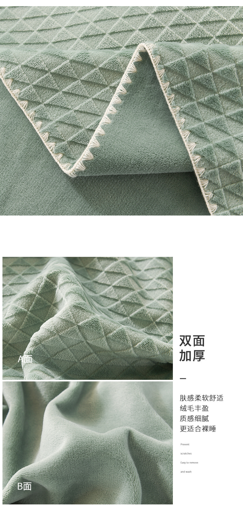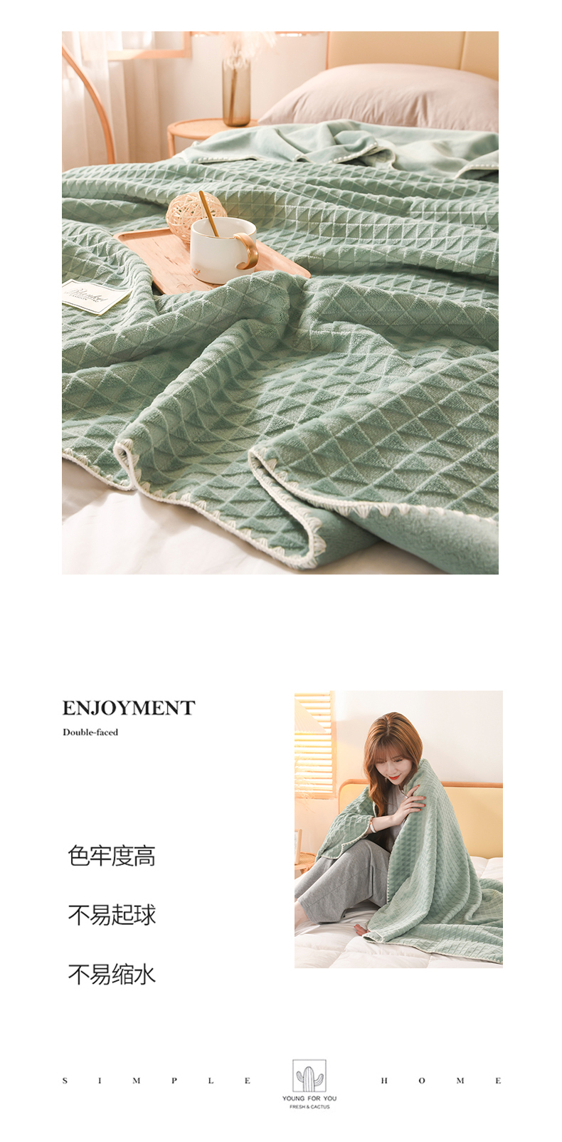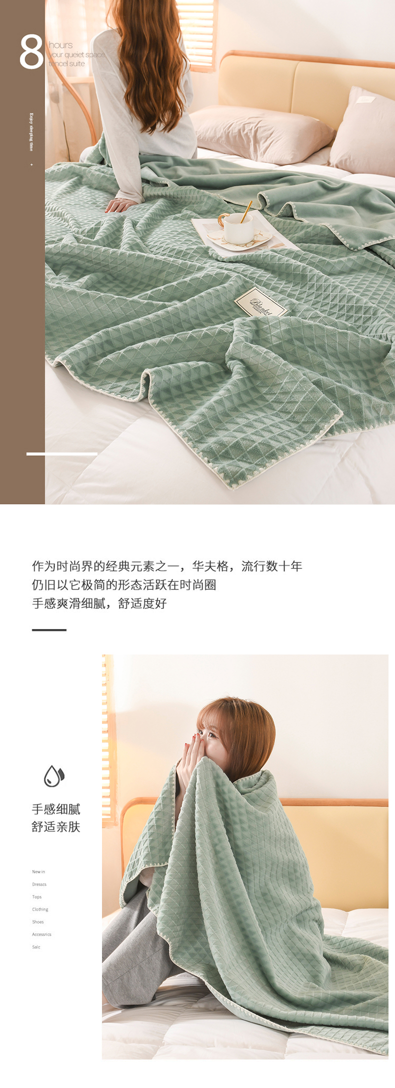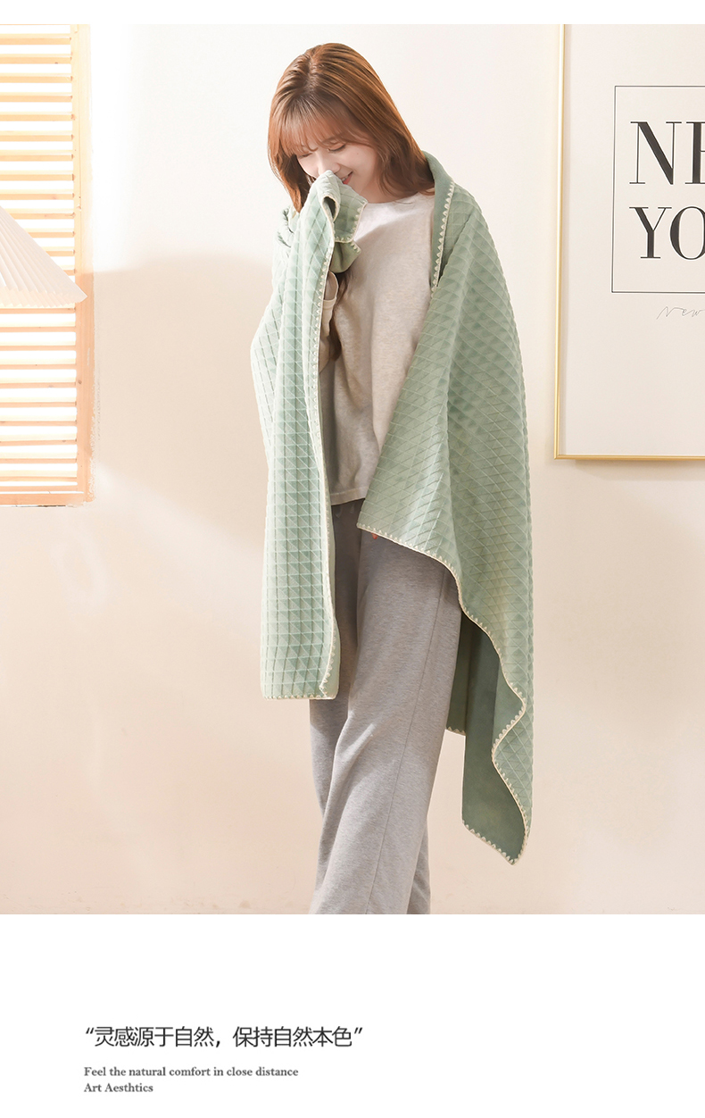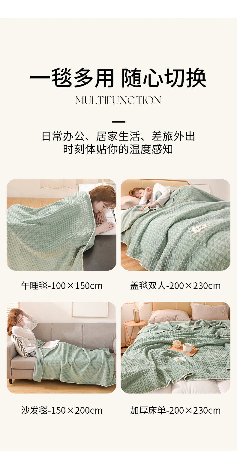 商品名称:印季家纺 2025新款华夫格牛奶绒复合毛毯毯子 渐变格-草绿