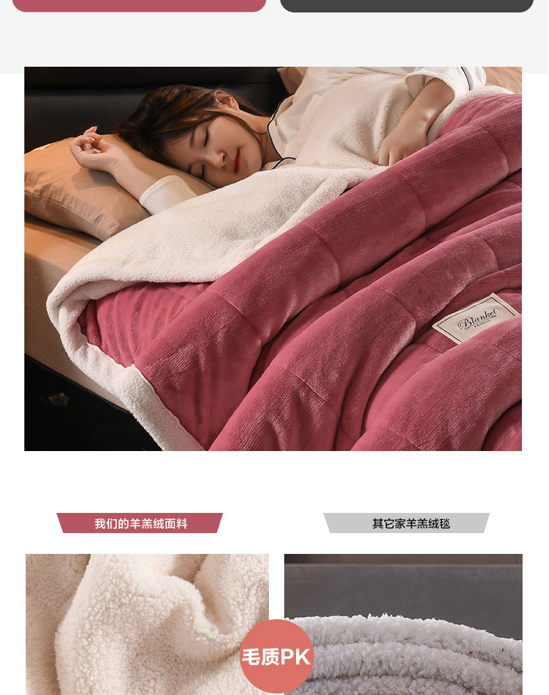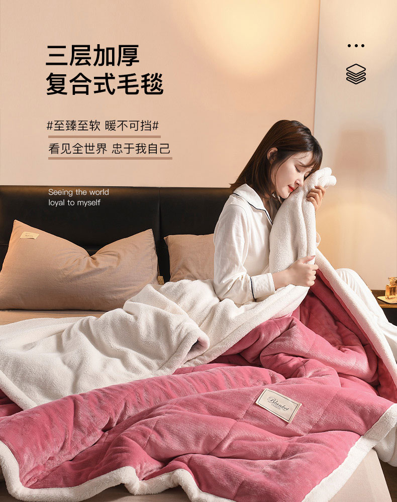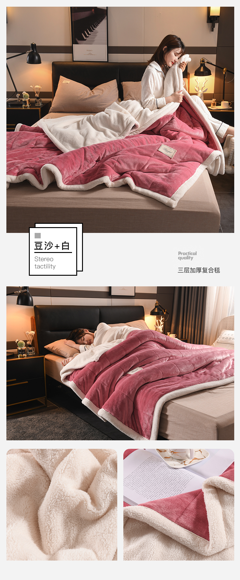 印季家纺 2025秋冬新款三层夹棉加厚复合羊羔绒毛毯毯子多功能盖毯 豆沙+白