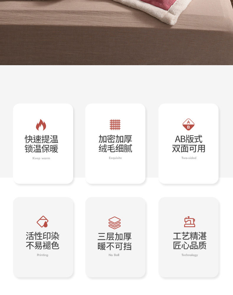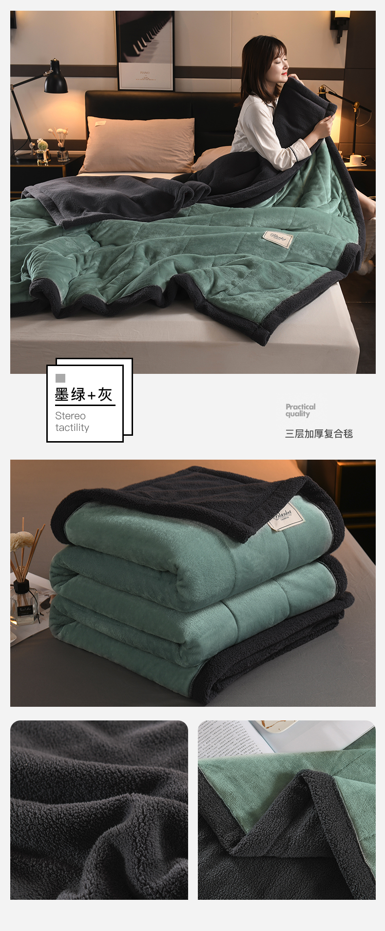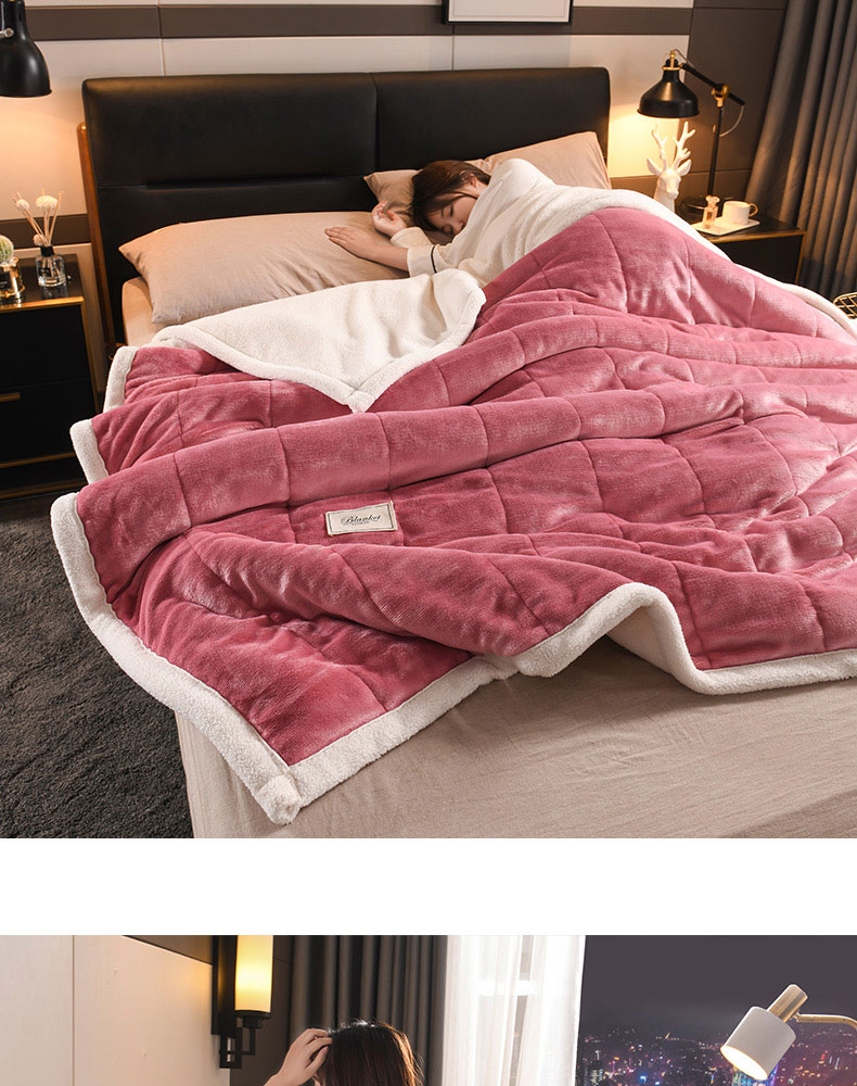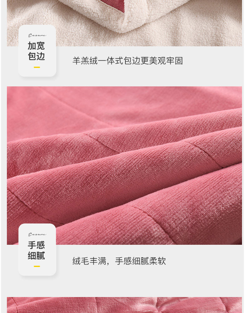 印季家纺 2025秋冬新款三层夹棉加厚复合羊羔绒毛毯毯子多功能盖毯 豆沙+白
