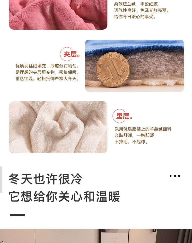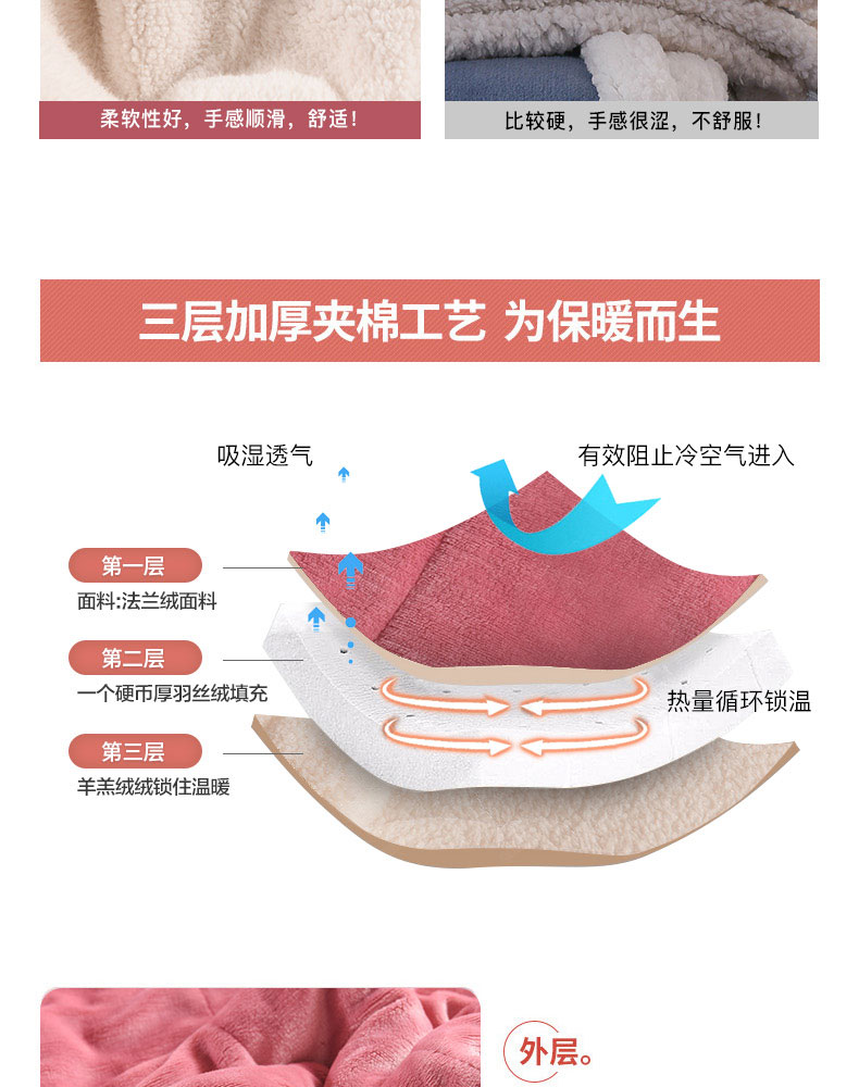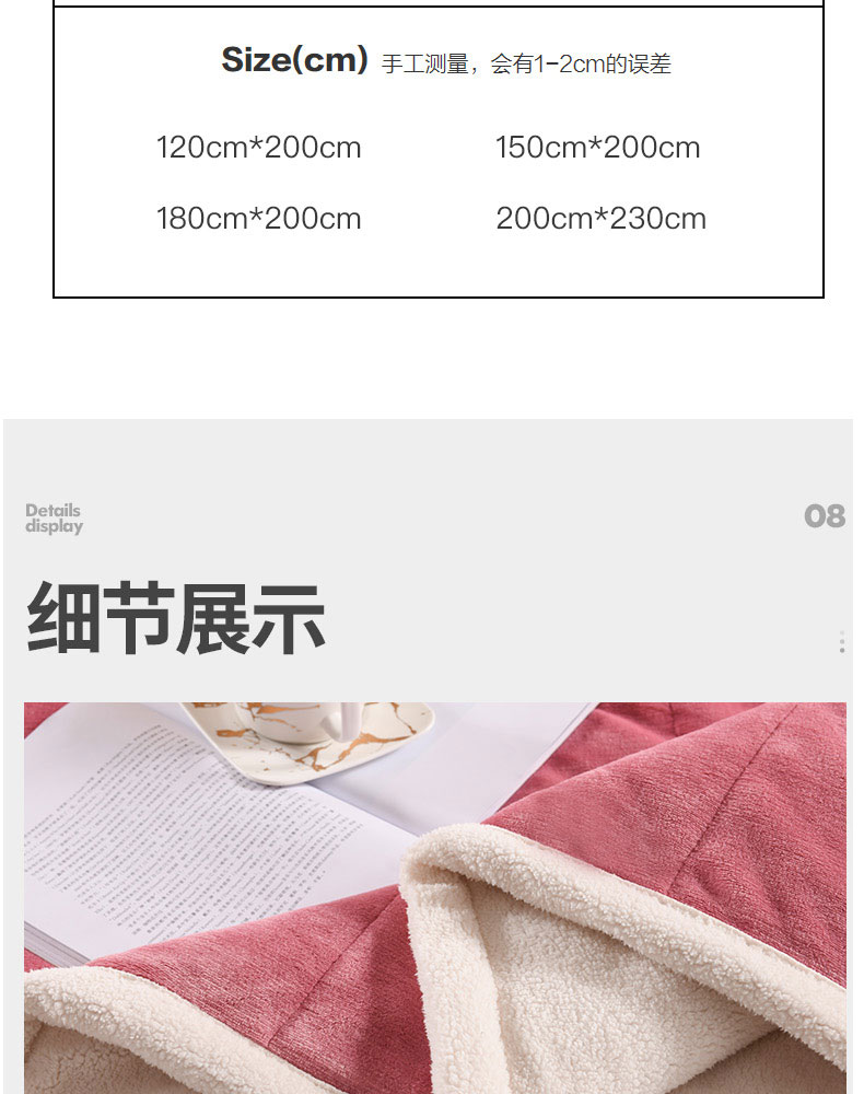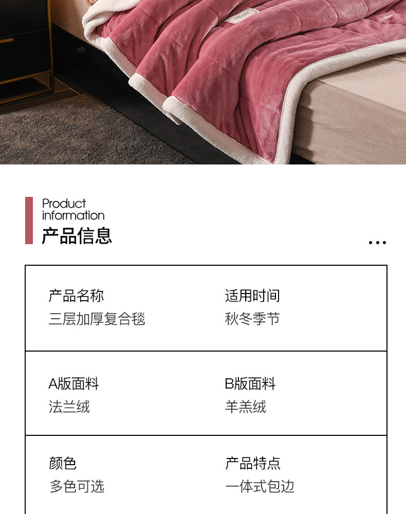 商品名称:印季家纺 2025秋冬新款三层夹棉加厚复合羊羔绒毛毯毯子多功能盖毯 豆沙+白