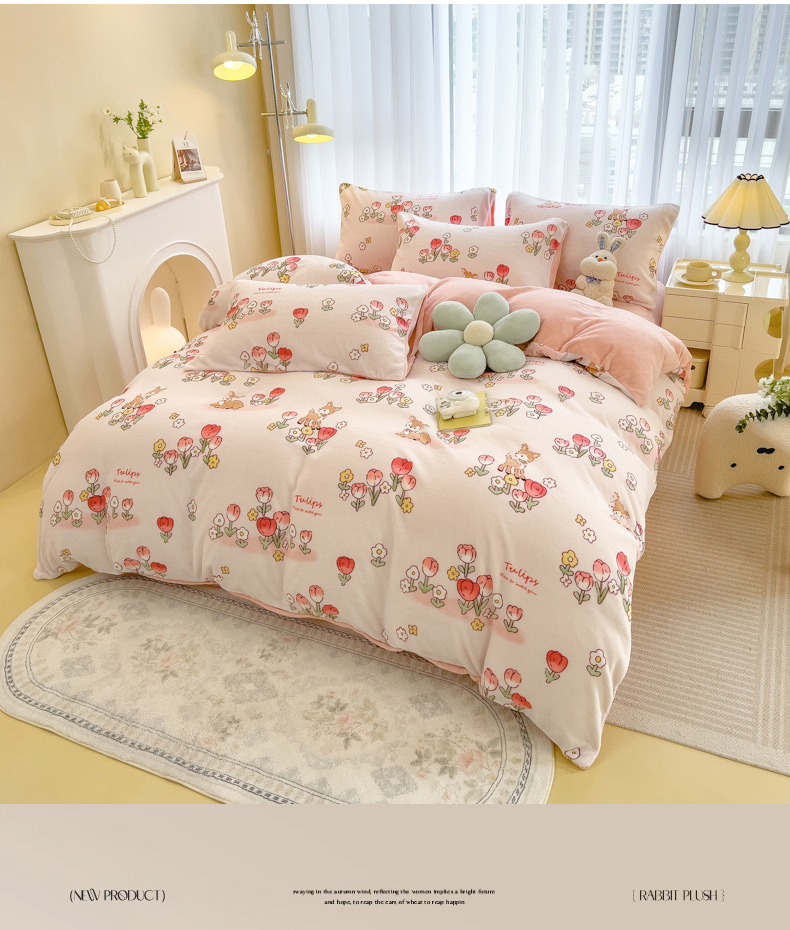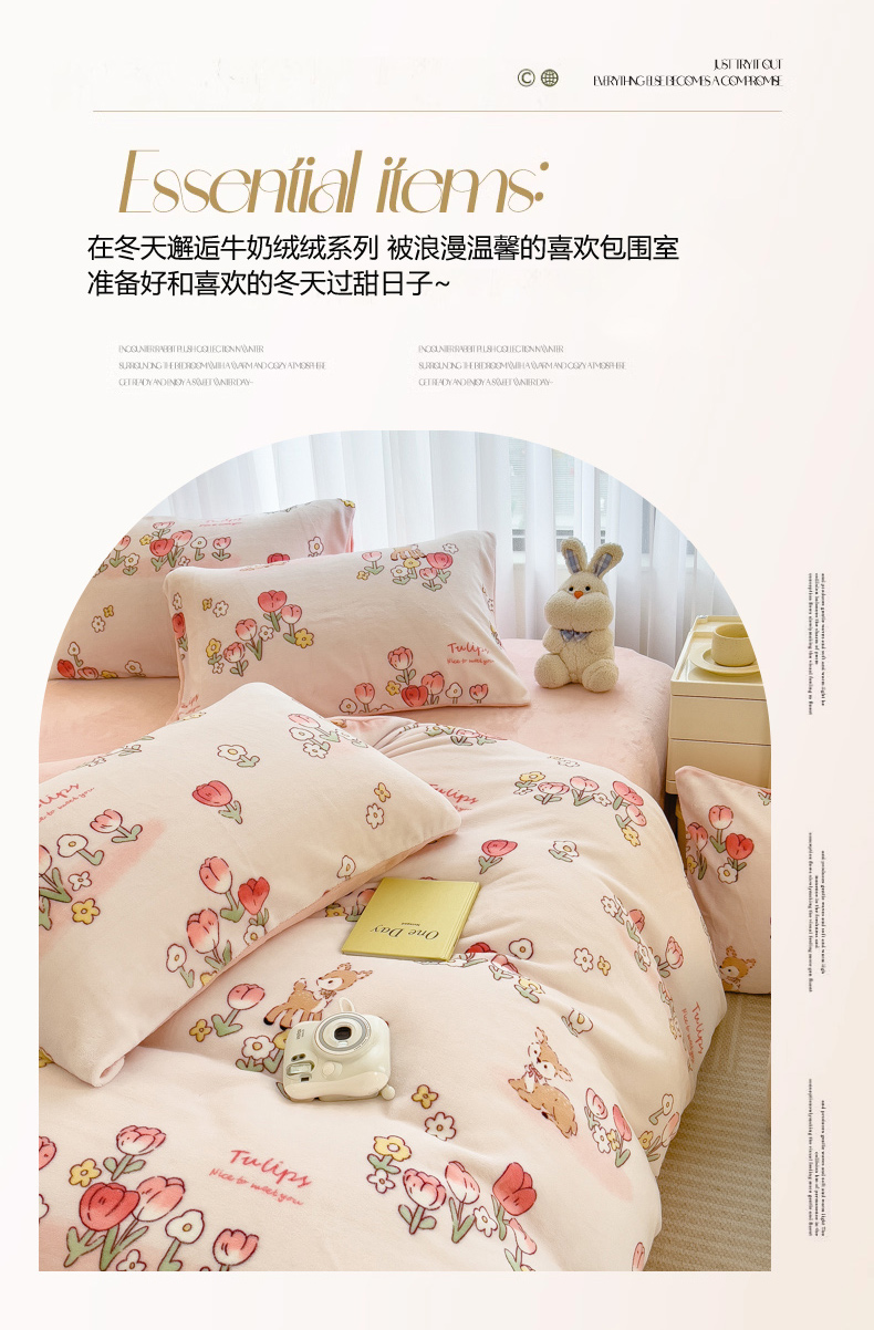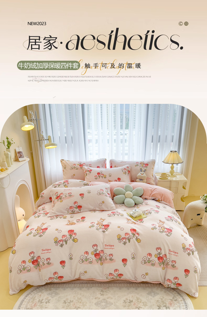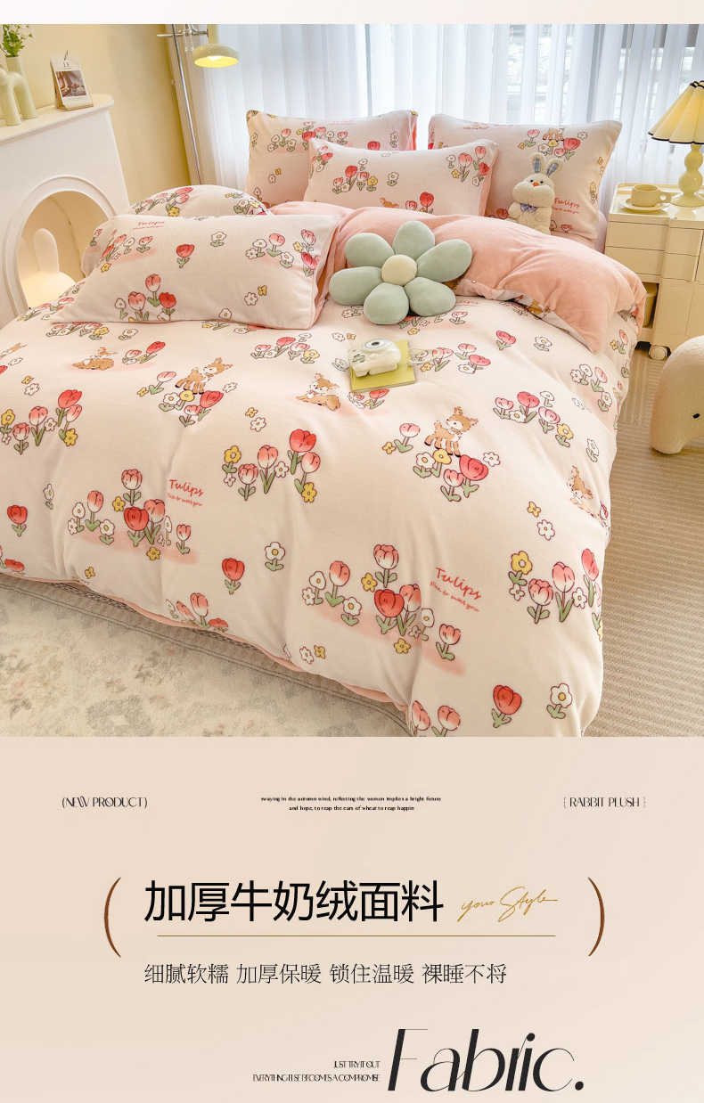 当前位置: 91家纺网 > 商品网购 > 床品套件 > 四件套 > 牛奶绒四件套 > 印季家纺 2025新款加厚印花保暖牛奶绒四件套 童话镇-粉