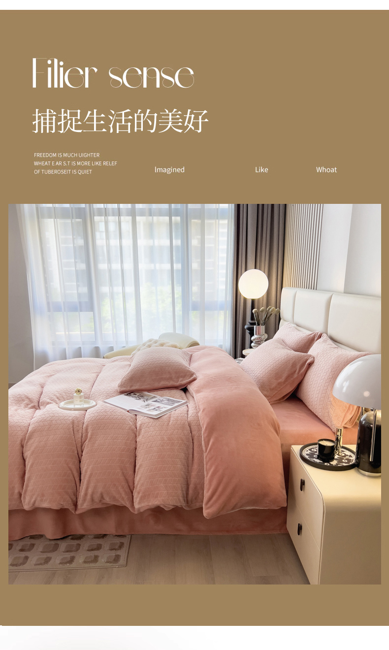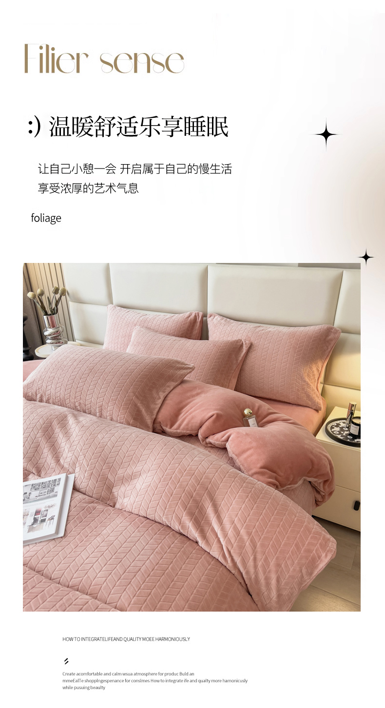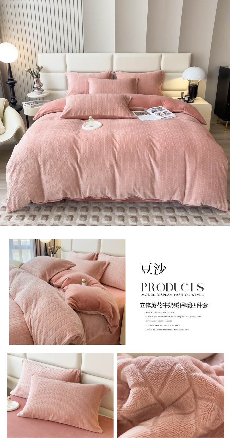 当前位置: 91家纺网 > 商品网购 > 床品套件 > 四件套 > 牛奶绒四件套 > 印季家纺 2025新款立体剪花麦穗牛奶绒四件套 豆沙