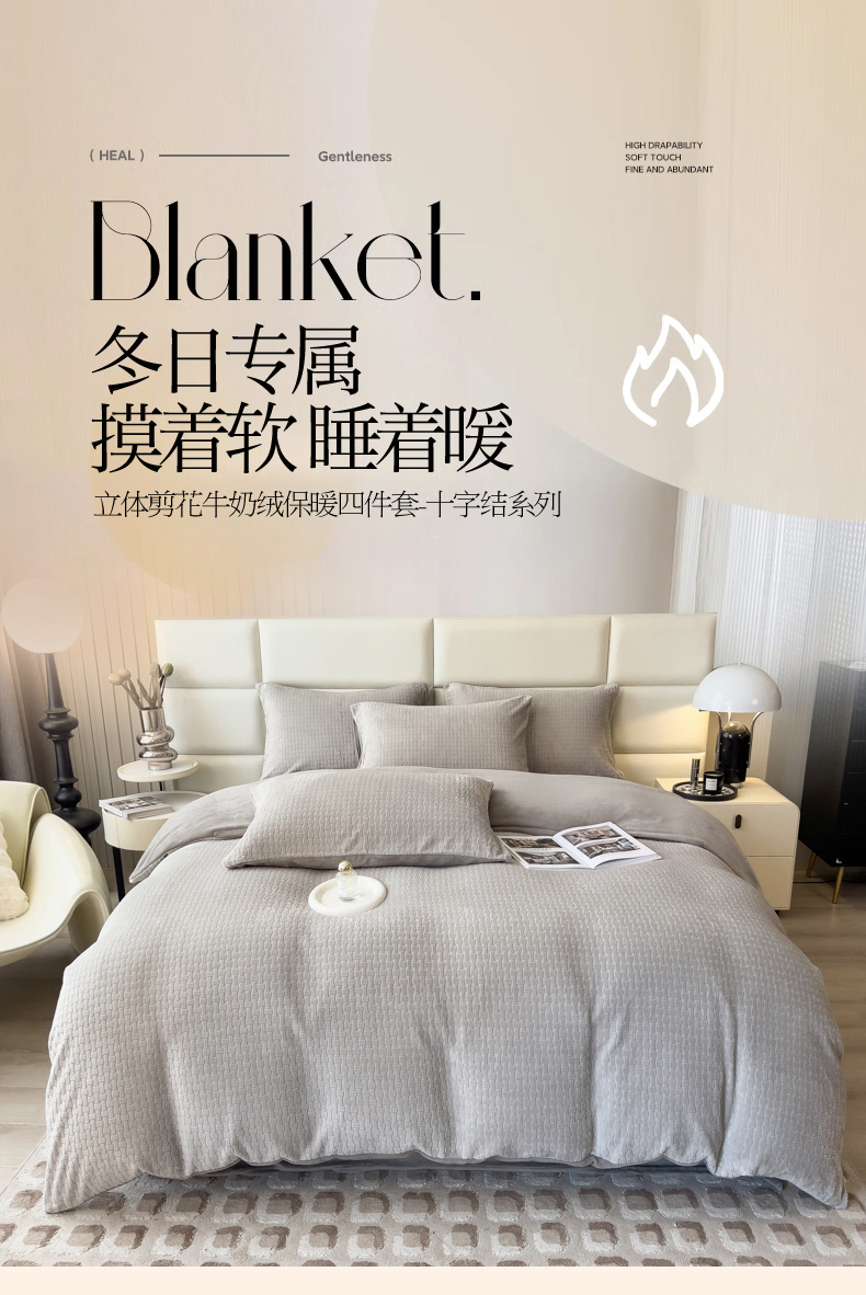 当前位置: 91家纺网 > 商品网购 > 床品套件 > 四件套 > 牛奶绒四件套 > 印季家纺 2025新款立体剪花十字结牛奶绒四件套 高级灰