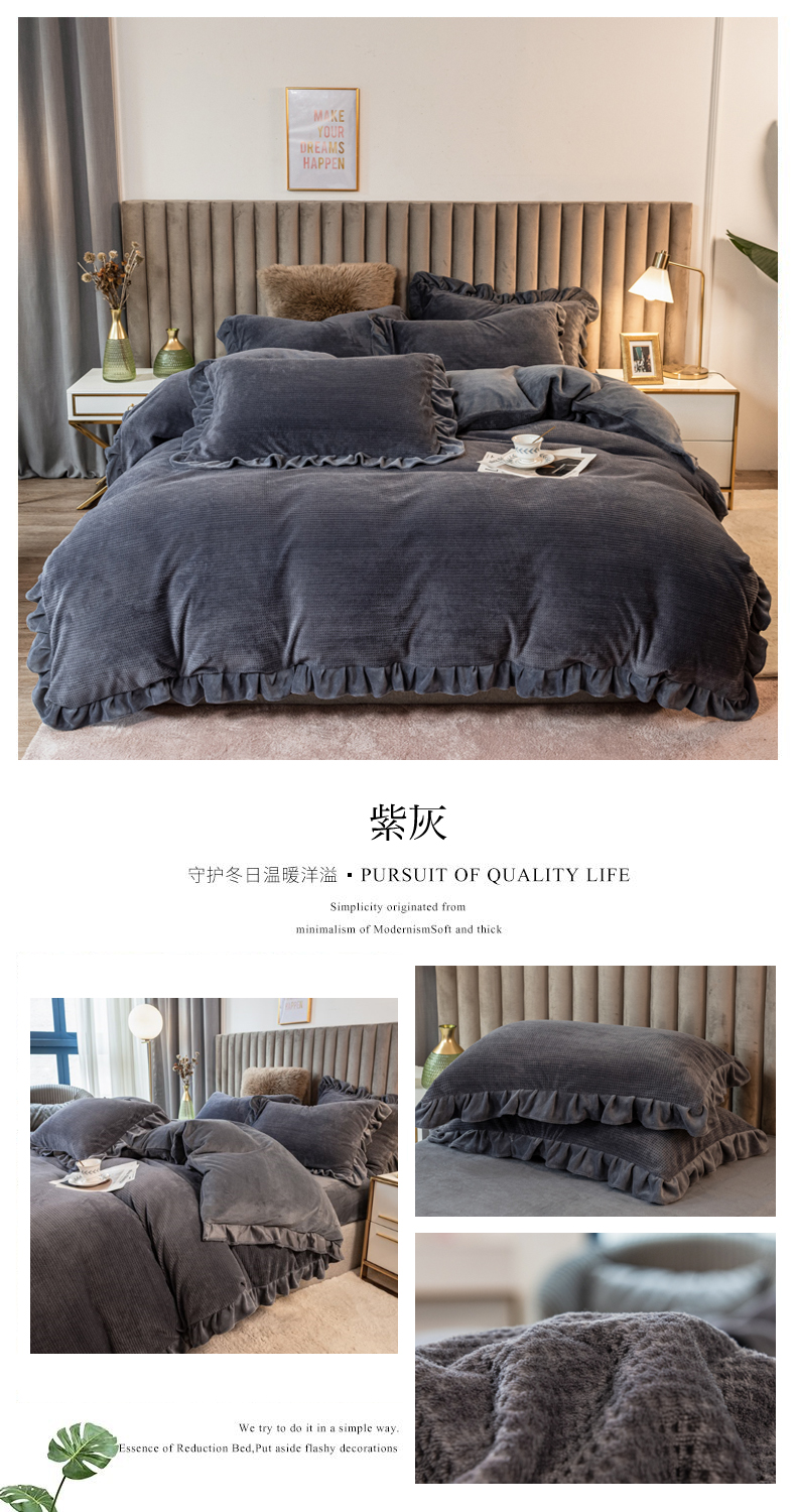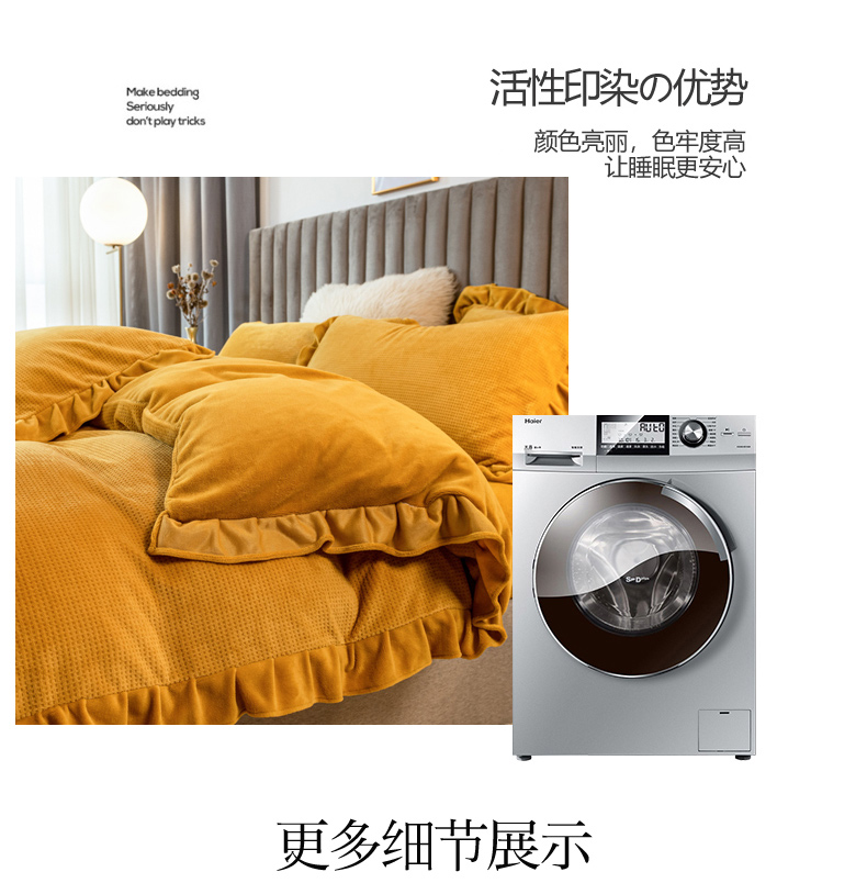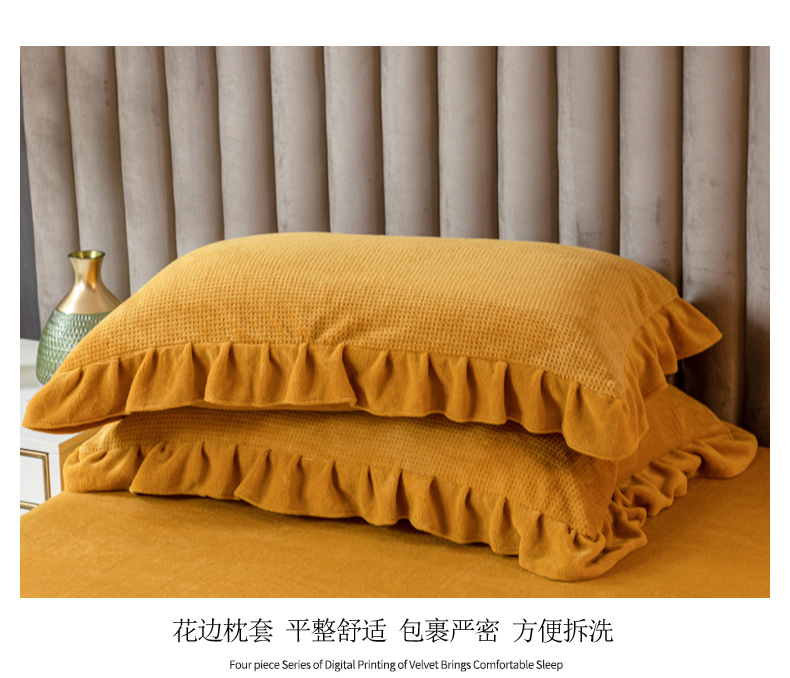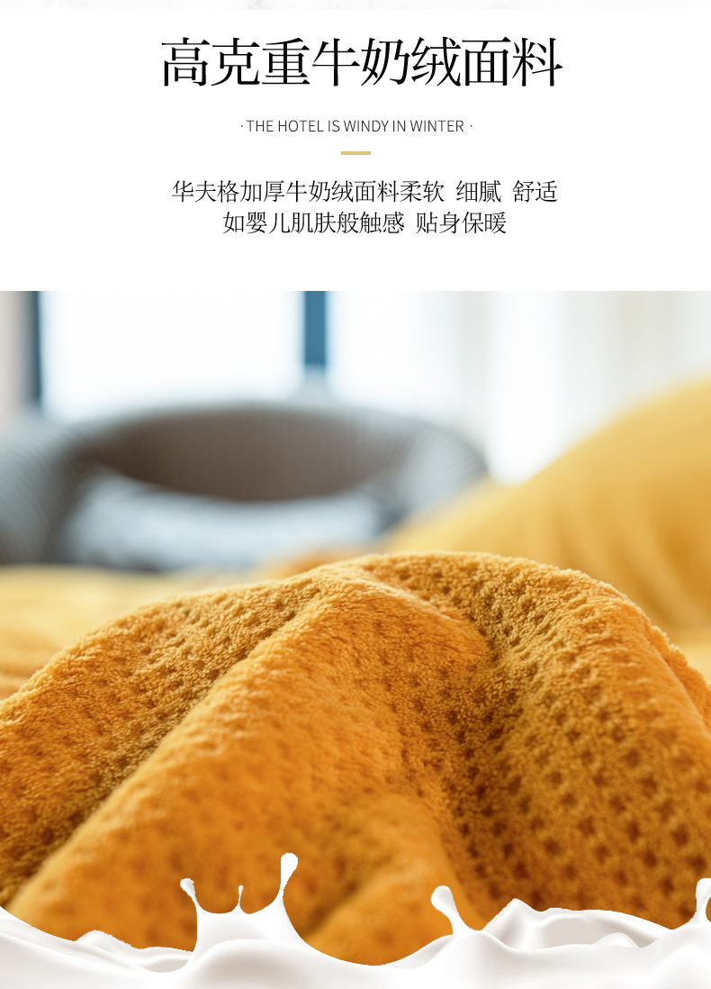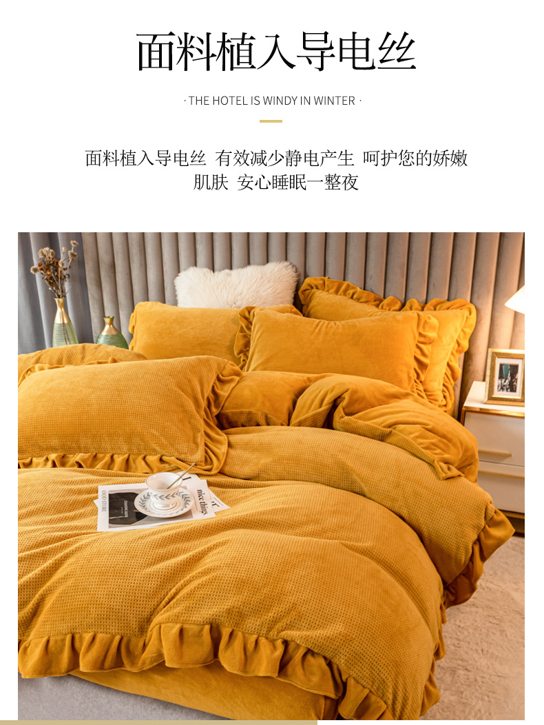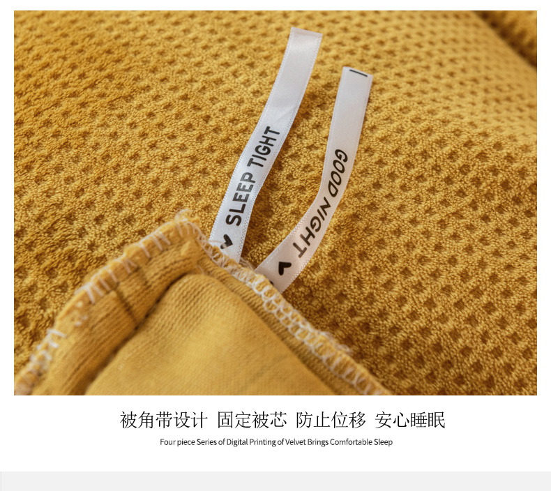 当前位置: 91家纺网 > 商品网购 > 床品套件 > 四件套 > 牛奶绒四件套 > 印季家纺 2025新款华夫格牛奶绒花边四件套 姜黄