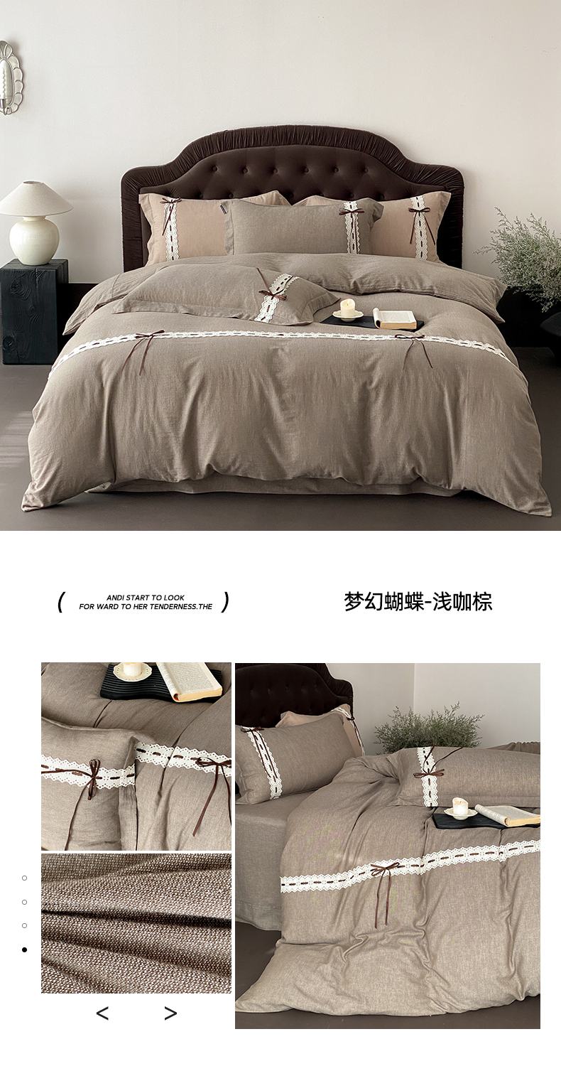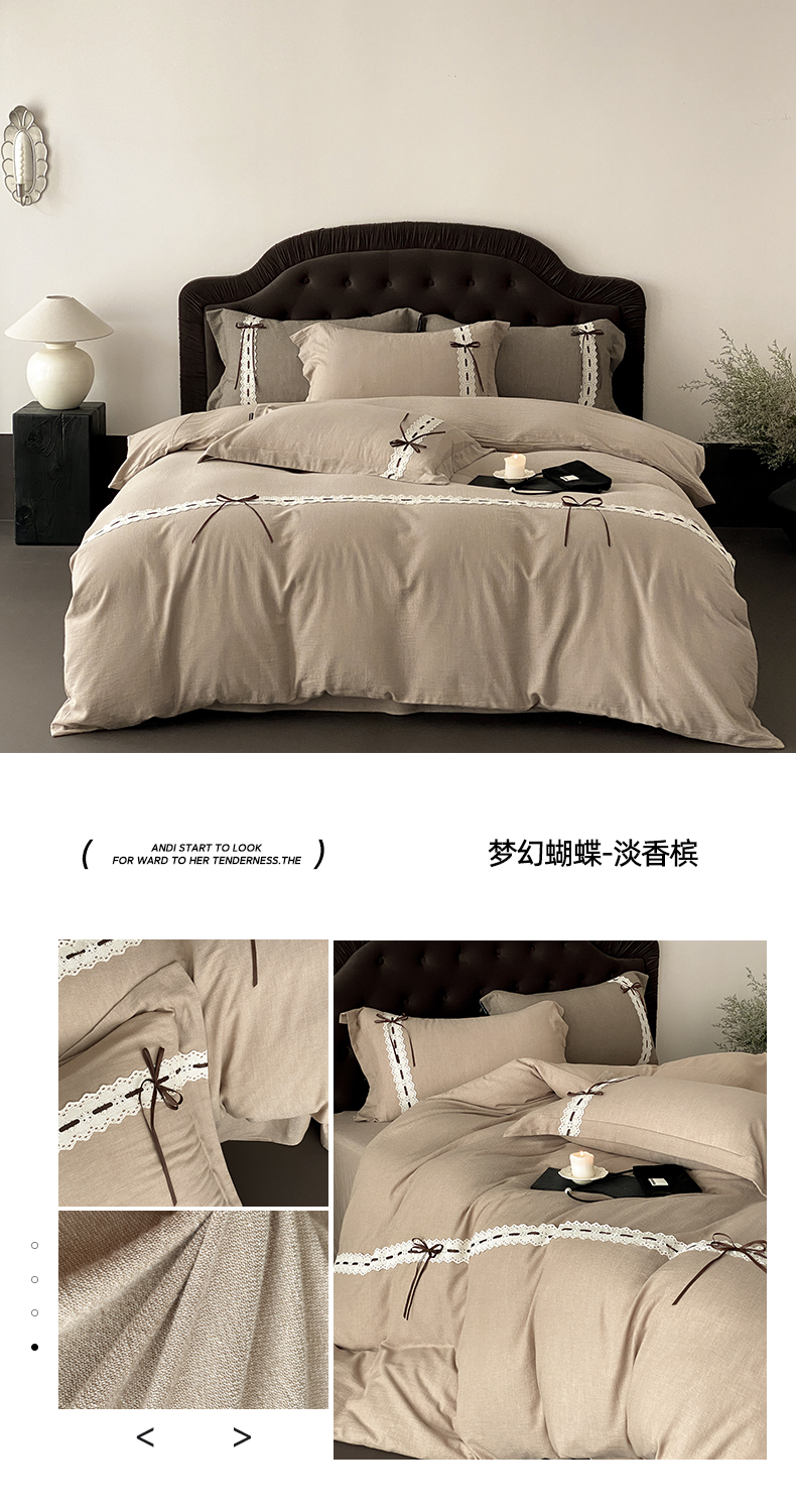 商品名称:(总)祺瑞佳家纺 2025新款侘寂风100%双面色织法式四件套全棉四季款床单床笠-梦幻蝴蝶(标准-券后不得低于268元! 大号-券后不得低于288元!)