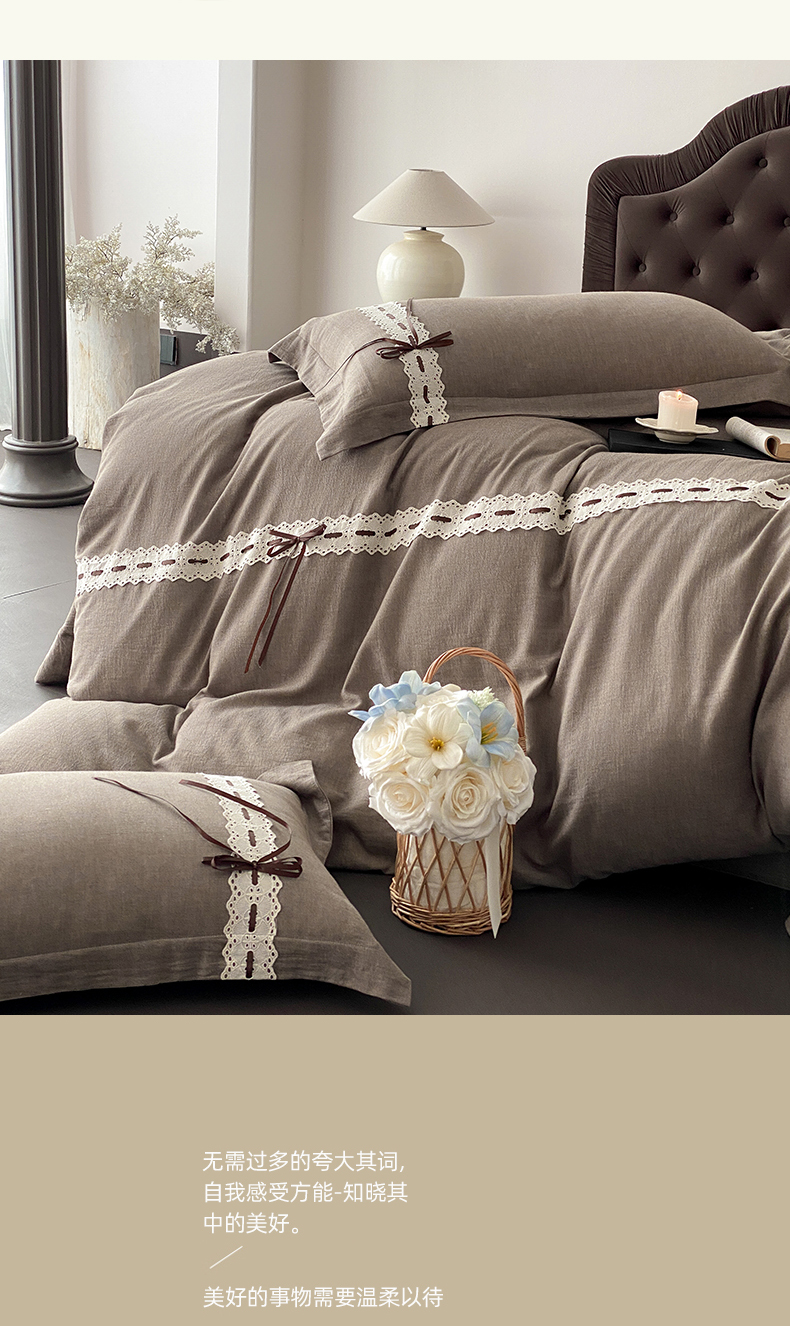 (总)祺瑞佳家纺 2026新款100%双面纯棉法式刺绣花四件套全棉四季款床单床笠-恬蜜光年 场景二,恬蜜光年-粉,恬蜜光年-灰