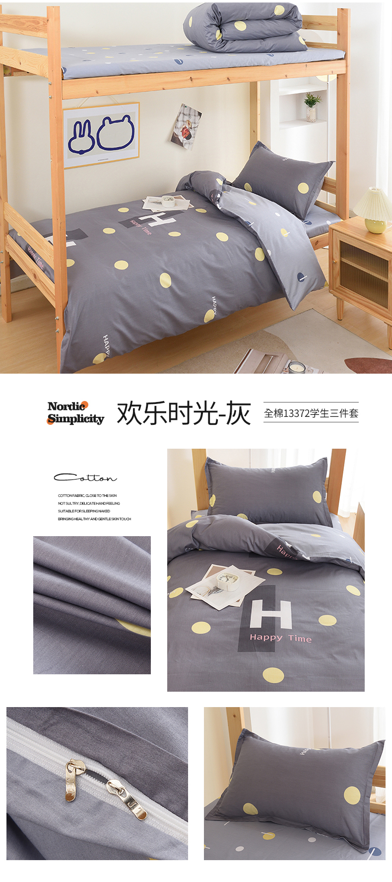 商品名称:朵希曼 2026新款全棉印花学生三件套系列 几何空间