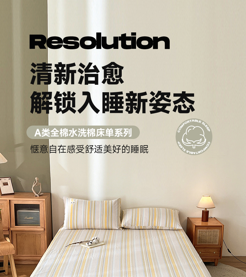 21度C 2026新款A类全棉水洗棉母婴级床单 沐妍黄