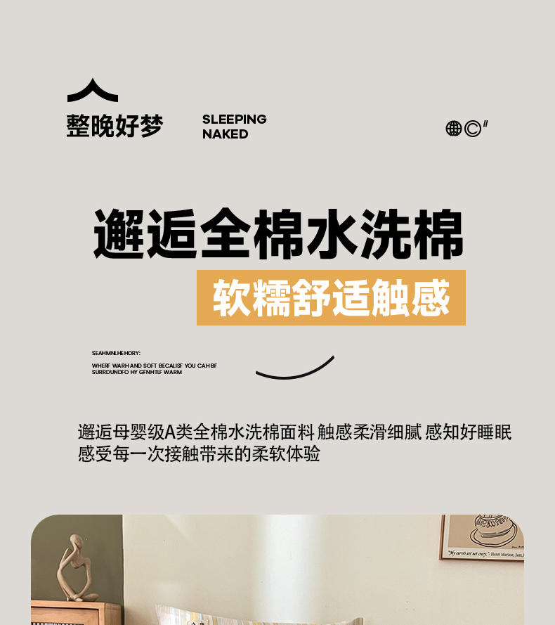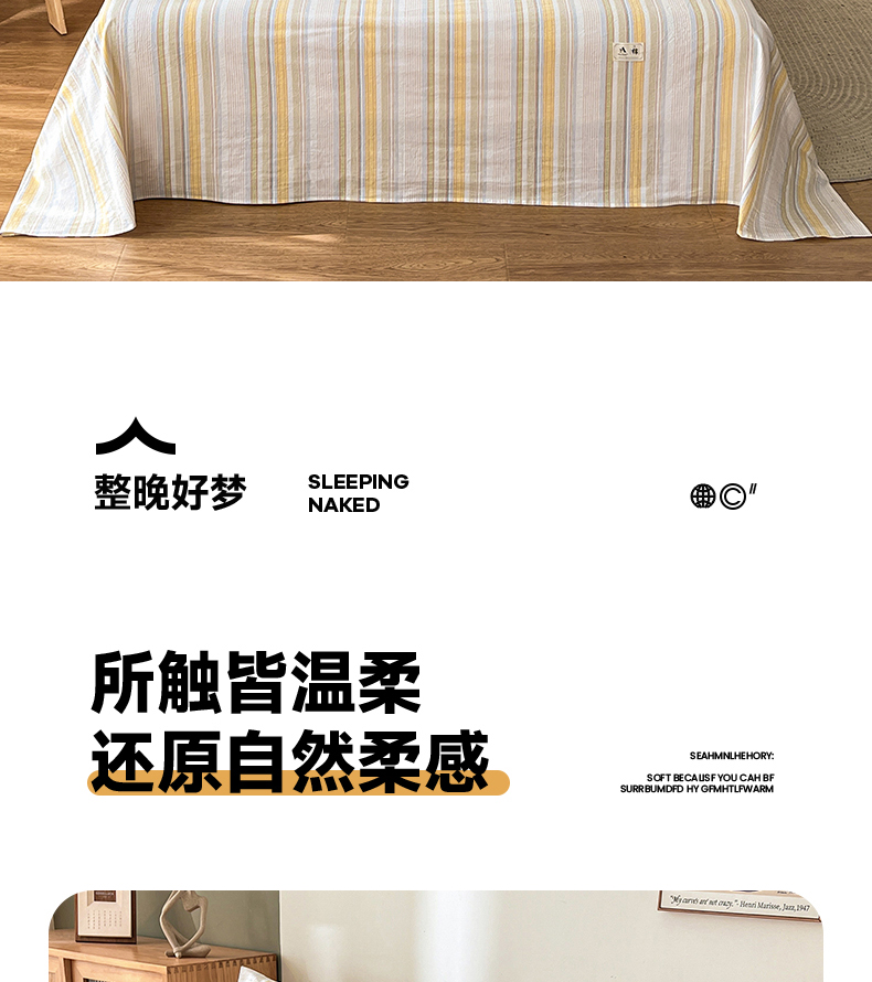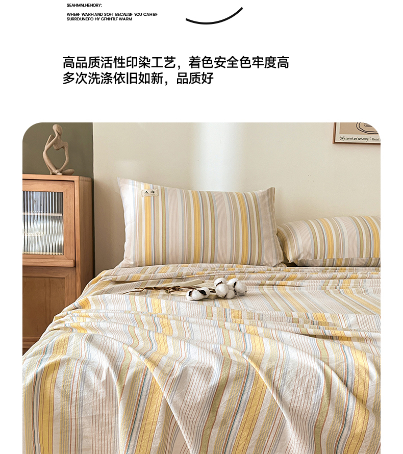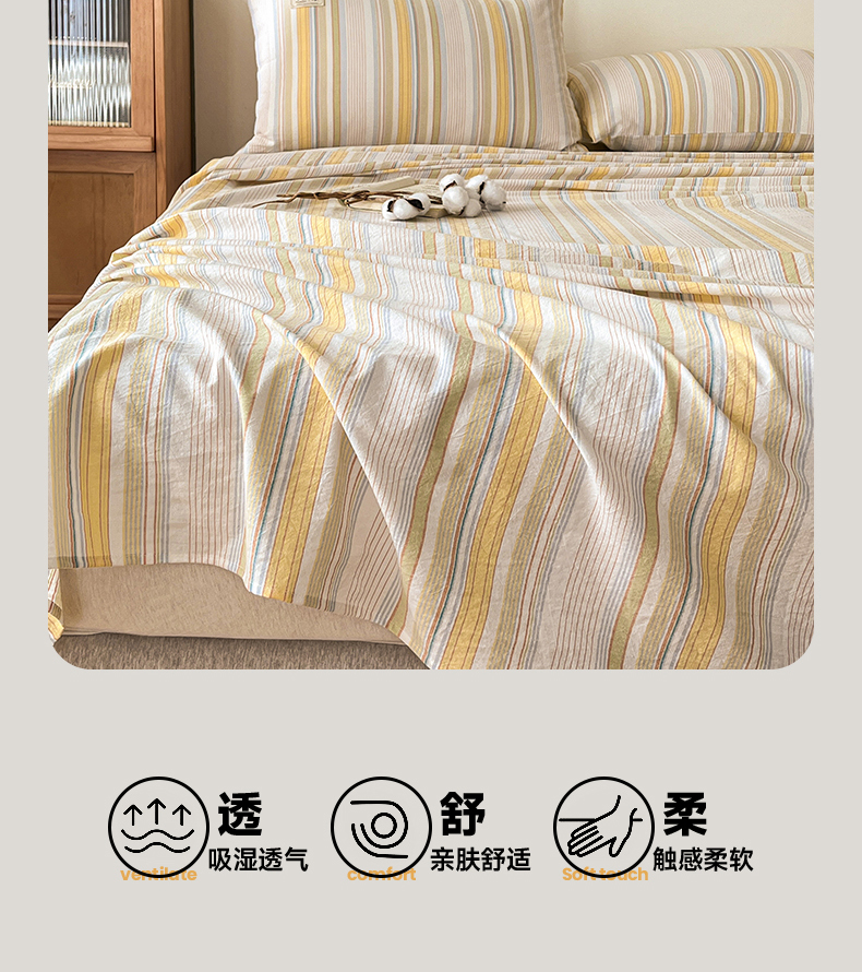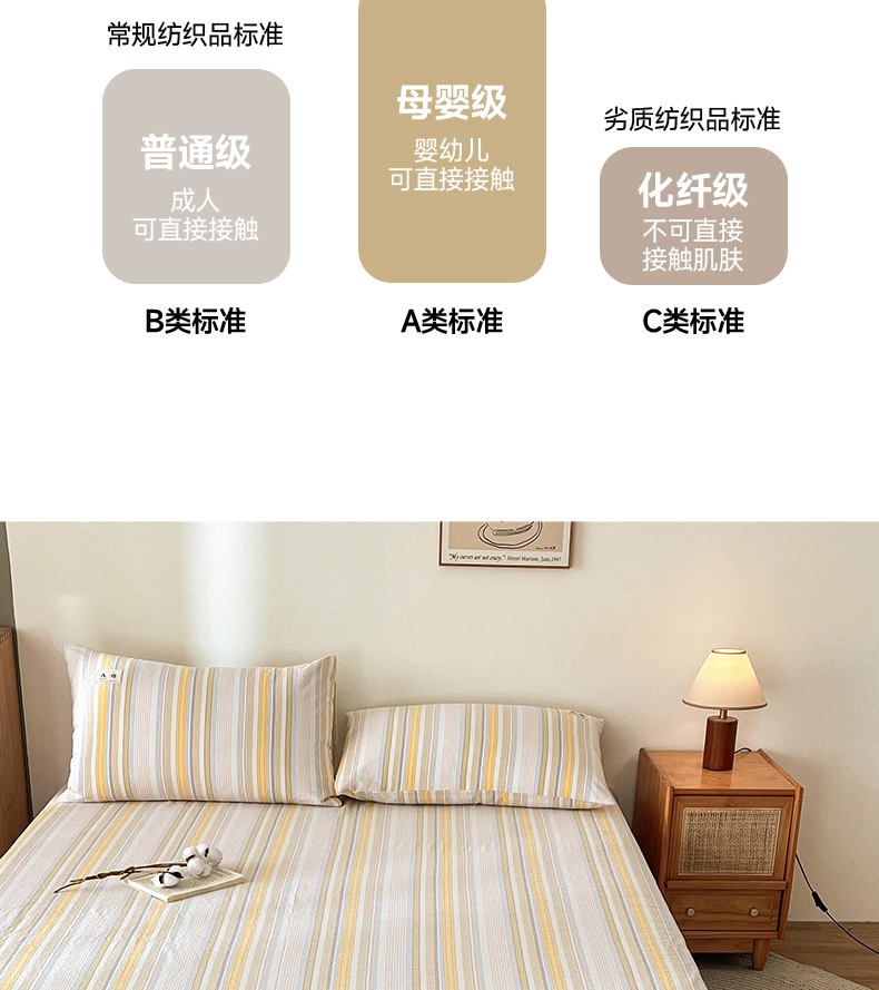 • 91家纺网 家纺一手货源 找家纺 21度C 2026新款A类全棉水洗棉母婴级床单 沐妍黄