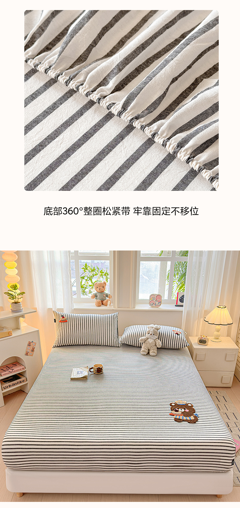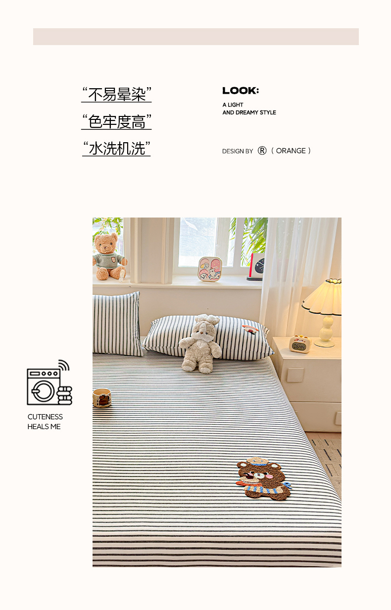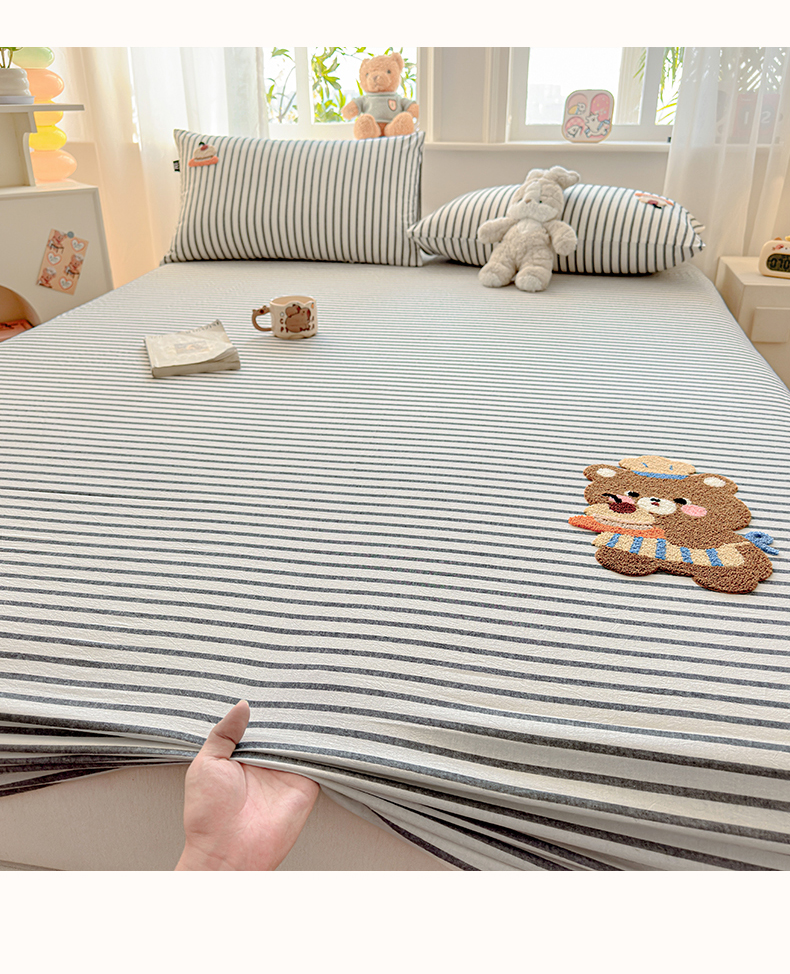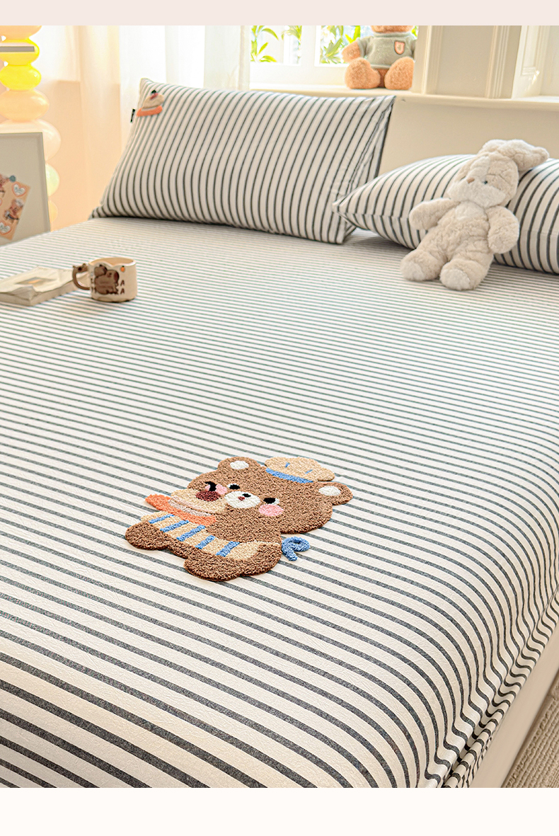 乐美家纺 2026新款全棉纯棉水洗棉毛巾绣单品床笠单件床笠 舒芙类小熊