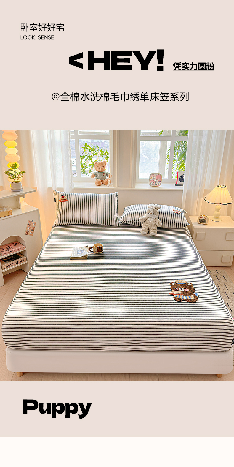 (总)乐美家纺 2025新款A类高克重贴布绣牛奶绒床笠三件套,快乐小狗,可爱狮,萌萌星,面包熊,蘑菇熊,南瓜小猪,太阳狮,桃可爱,星星兔,早安小狮子